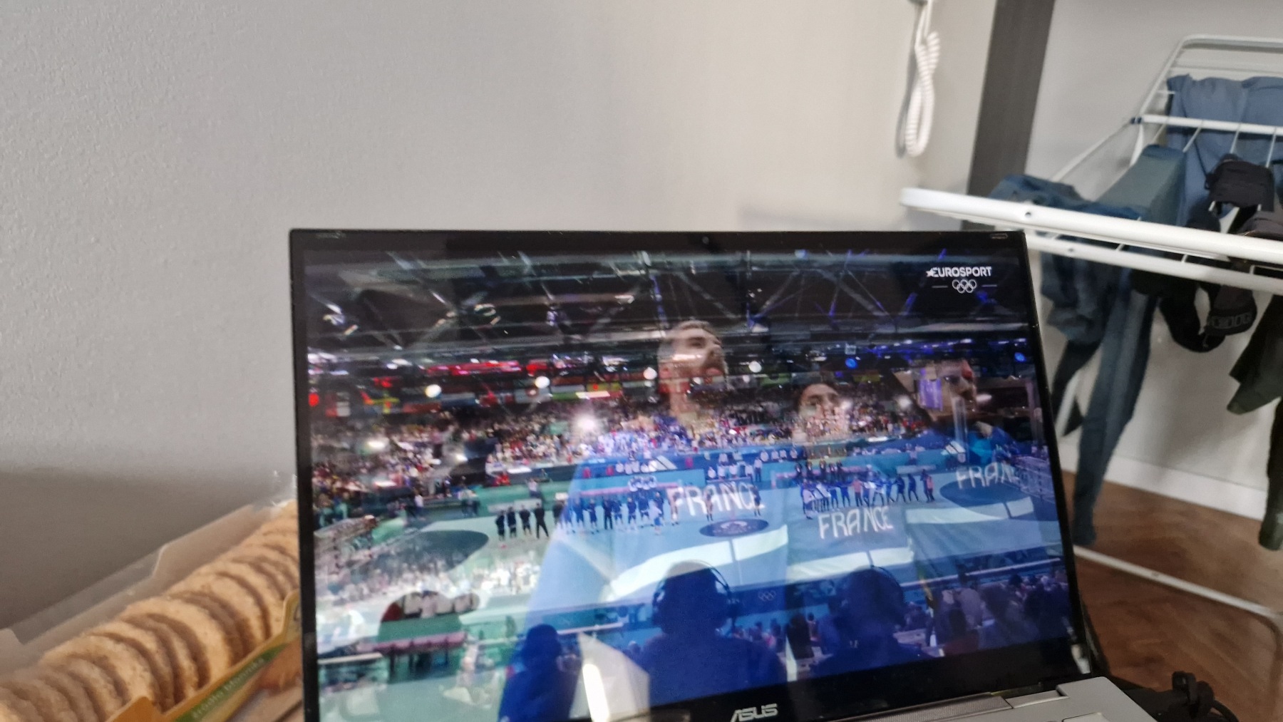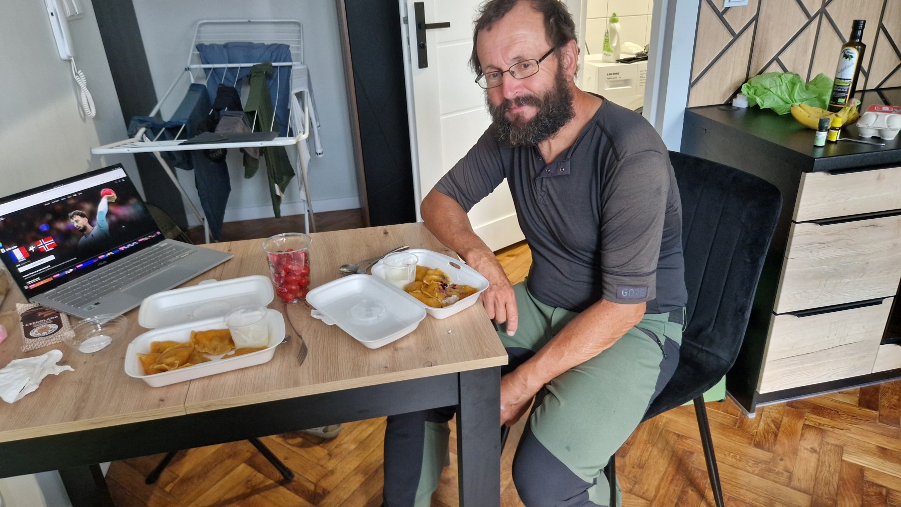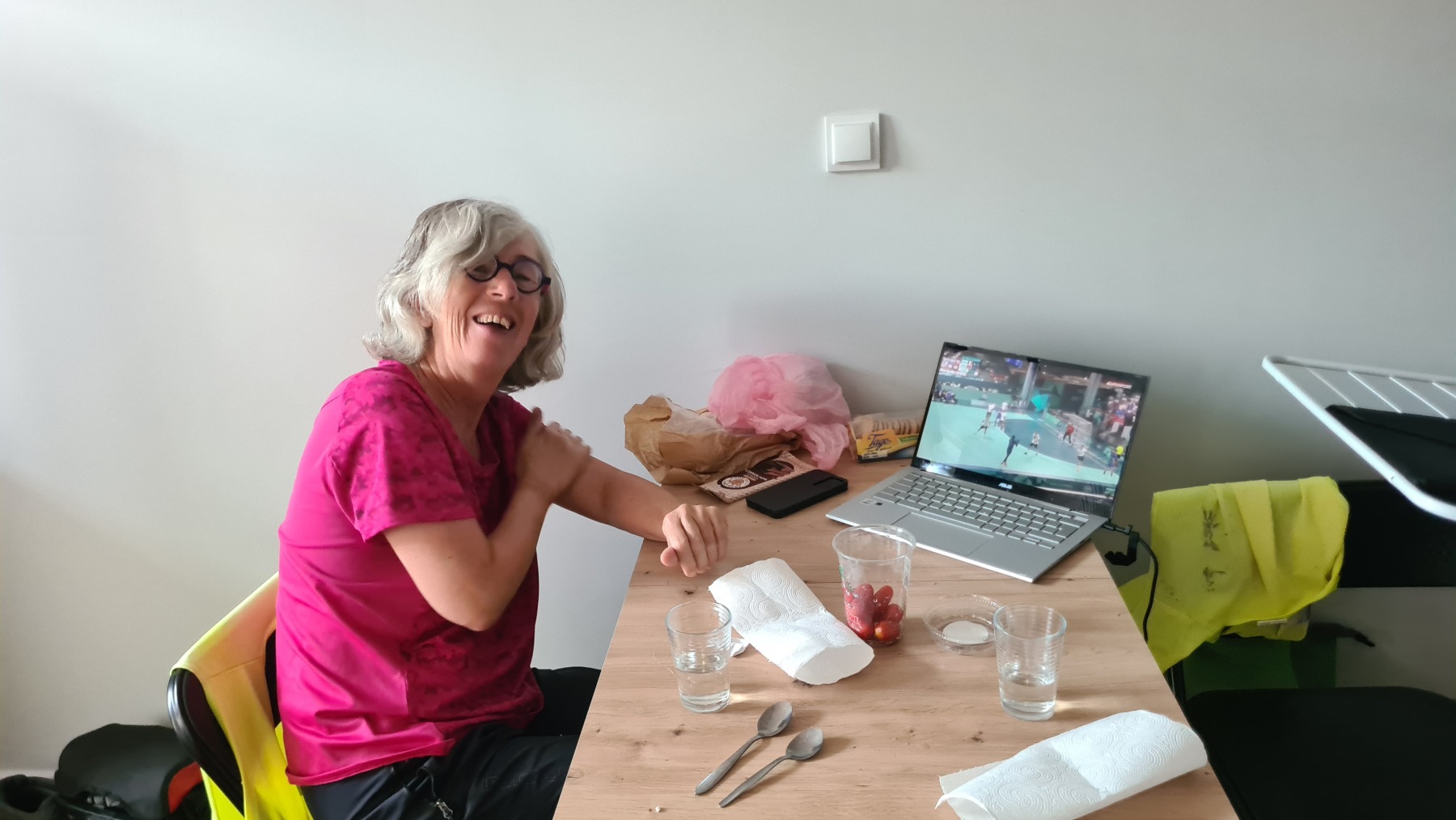 Hier soir nous avons regardé le deuxième match de l’équipe masculine de handball en dinant avec d’excellent pierogi aux myrtilles achetés dans un petit restaurant.