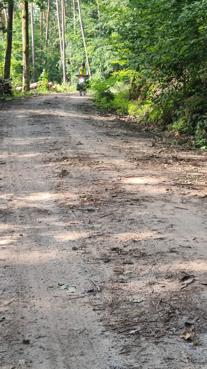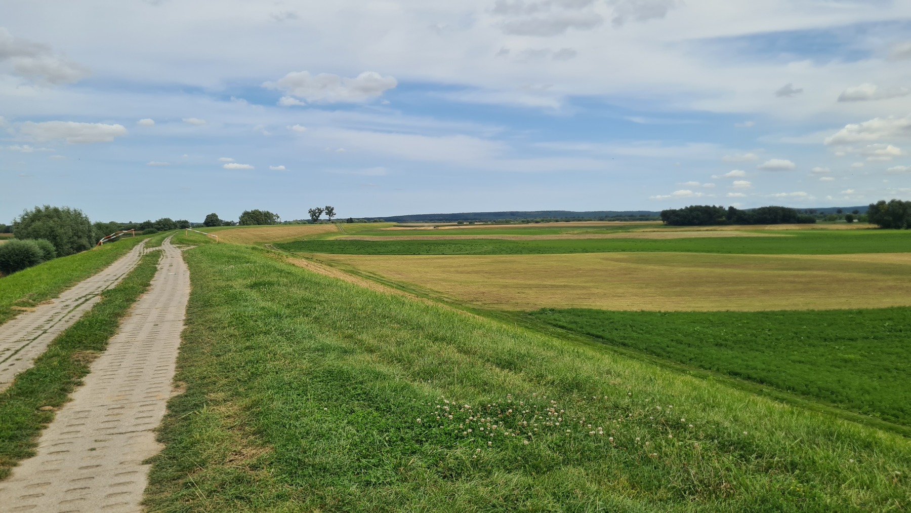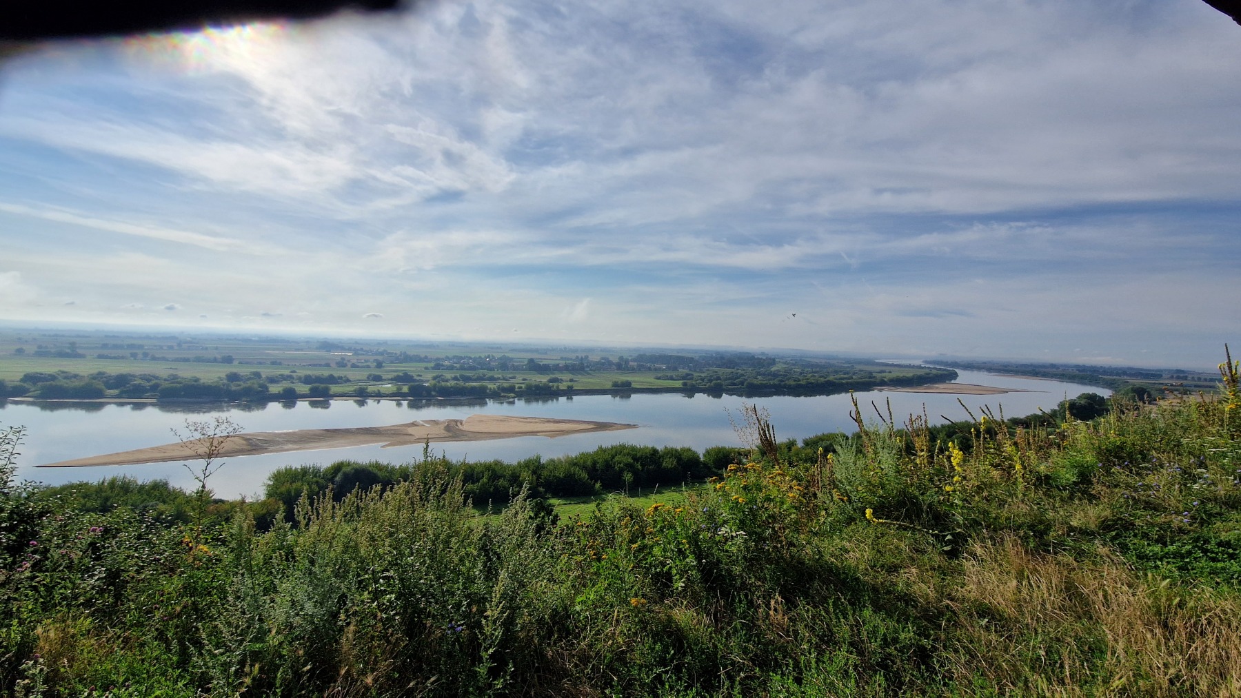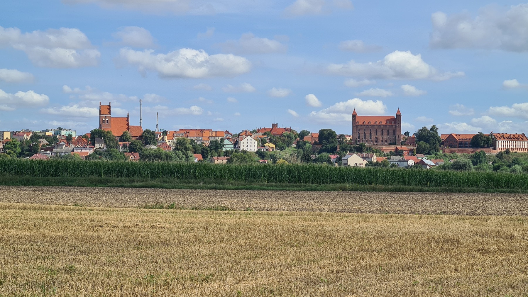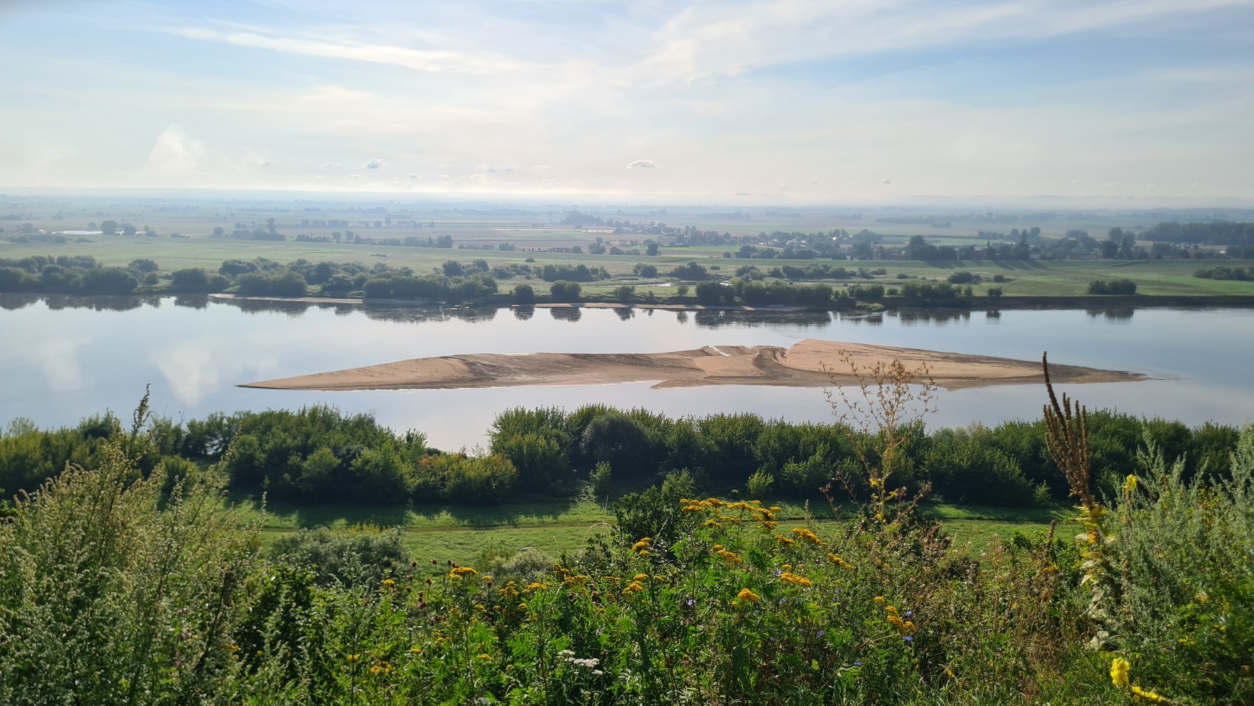 Ce matin nous avons commencé par aller voir le point de vue sur la Vistule qui nous avait été conseillée hier. Les 10 premiers kilomètres de l’étape sur Eurovelo 9 a été bien pénible, sur des pistes mêlant graviers, cailloux et sable. La fin de la galère s’est matérialisée, au beau milieu de la forêt, par une balise Eurovélo 9, avec sa couronne d’étoiles européenne, la première depuis la frontière polonaise et la piste caillouteuse s’est transformée en une vraie piste cyclable goudronnée : nous venions d’atteindre la voïvodie de Poméranie qui semble beaucoup plus soucieuse d’ Eurovelo 9 que la voïvodie de Couïavie-Poméranie que nous venions de quitter.