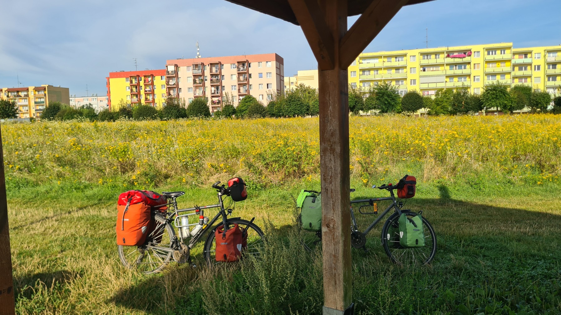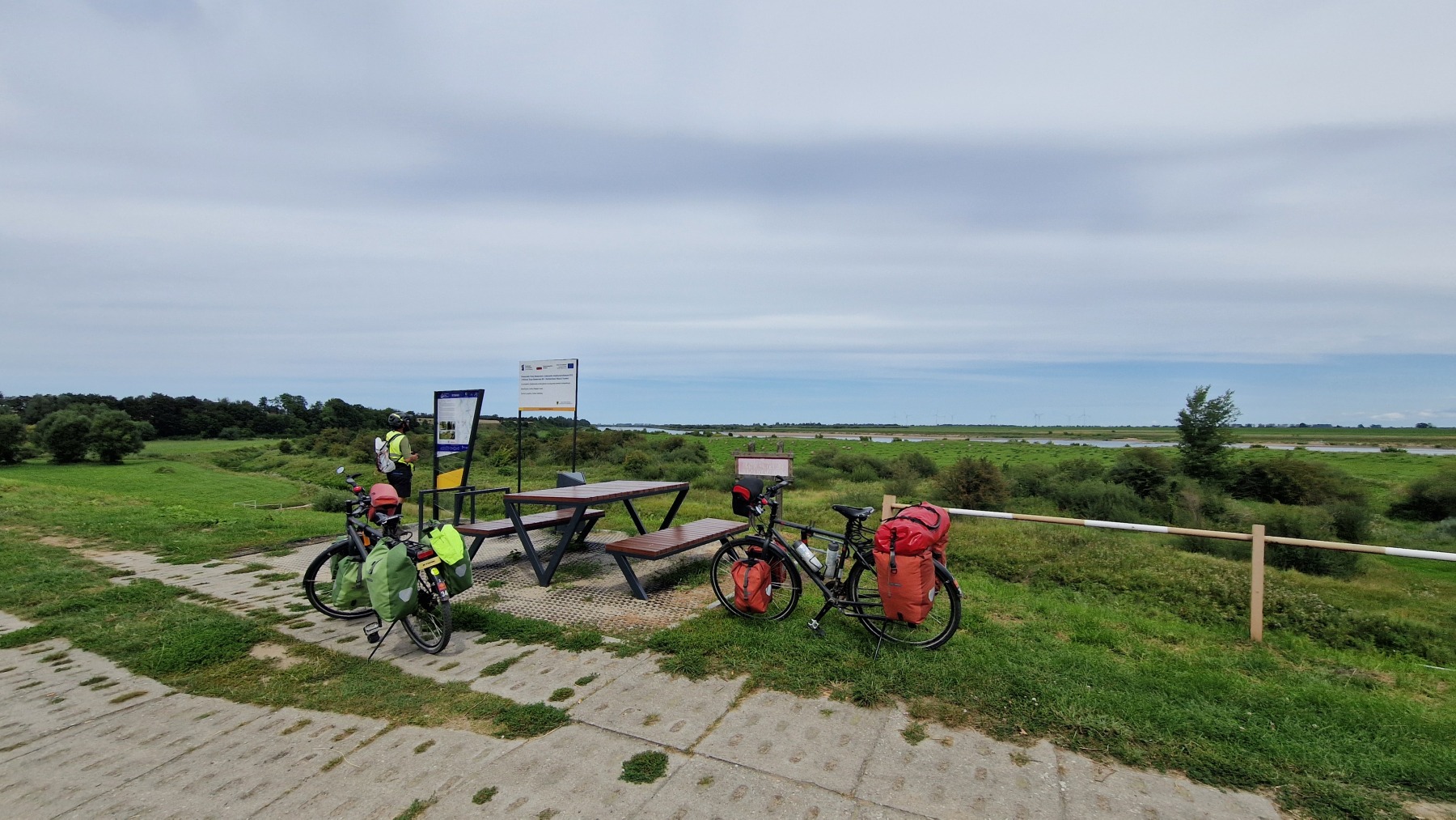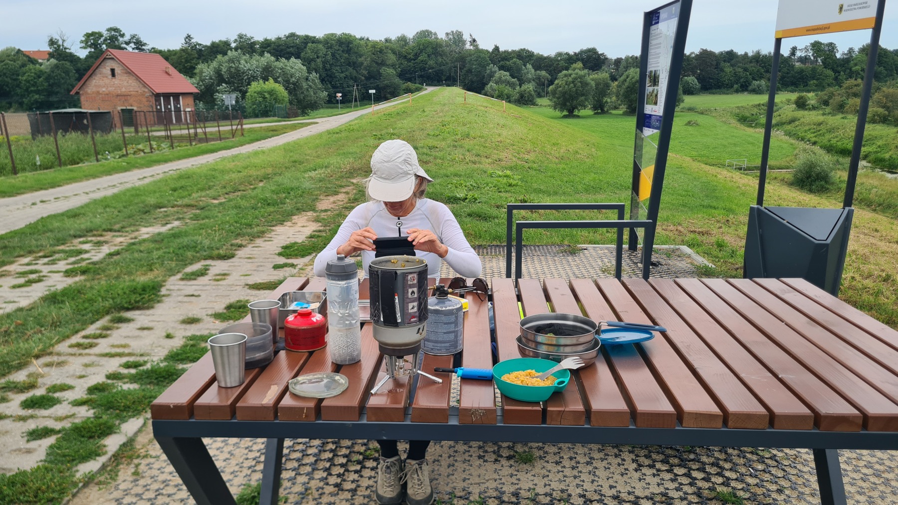 La suite du parcours a été beaucoup plus agréable même si les paysages sont un peu monotones. Nous avons même pu picniquer sur une aire de repos Eurovelo 9 !