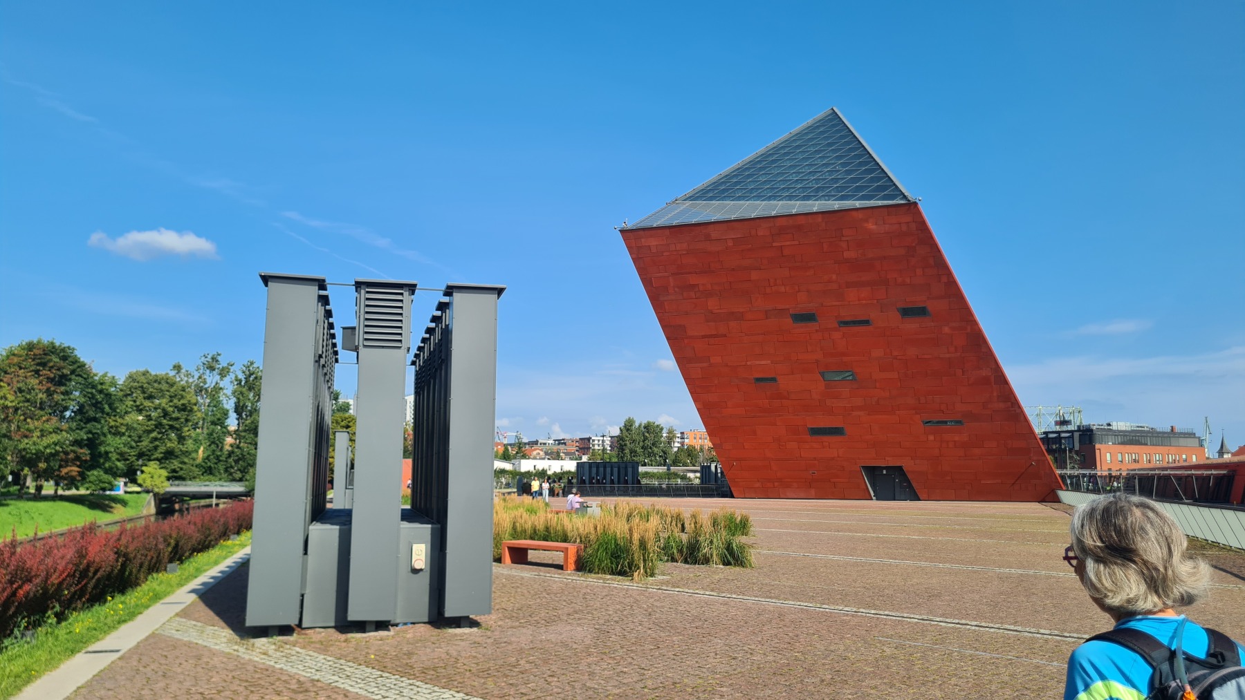 Ce matin nous sommes allés au musée de la Seconde Guerre mondiale de Gdańsk. Le nombre de visiteurs étant limité, nous avions réservé des billets à 10h00 pour l’ouverture du musée et le musée est si prenant que nous n’en sommes sortis qu’après 14h00. Ce qui m’a le plus frappé est l’exhaustivité avec laquelle le musée cherche à traiter la deuxième guerre mondiale dans son ensemble. Loin de se focaliser sur Gdańsk il cherche au contraire à donner une vision globale de cette guerre en abordant les différents sujets sur l’ensemble du globe (même si la guerre contre le Japon est traitée de manière moins détaillée). Il compare par exemple les manières dont les Allemands ont occupé les différents pays européens ou celle dont les mouvements de résistance et les soulèvements se sont organisés.