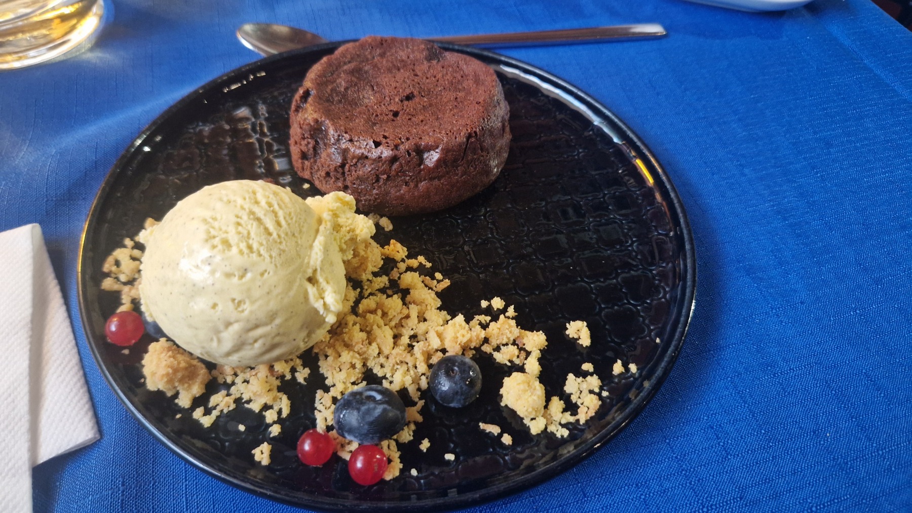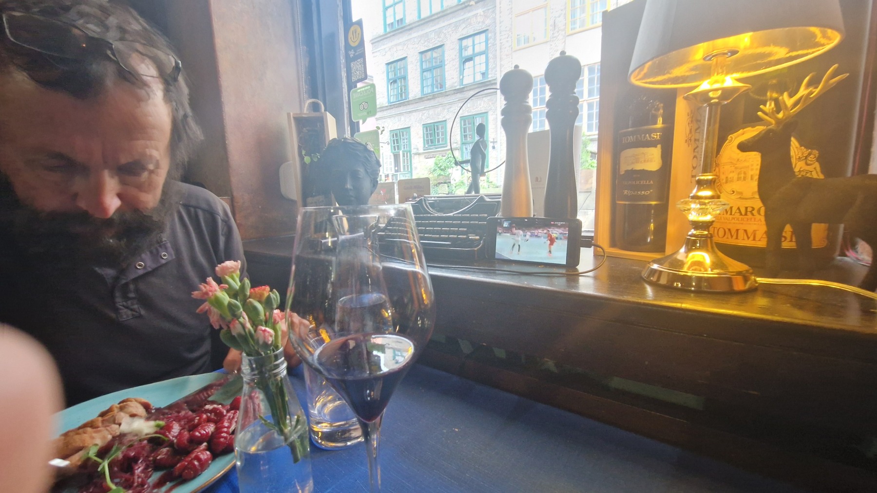 Nous avons ensuite cherché un restaurant et avons pu manger nos entrées en terrasse avant que la pluie ne nous pousse à terminer le repas à l’intérieur. Il était alors l’heure du cinquième match de l’équipe masculine de handball dont nous avons regardé la première période sur mon téléphone et la seconde dans notre appartement sur grand écran.