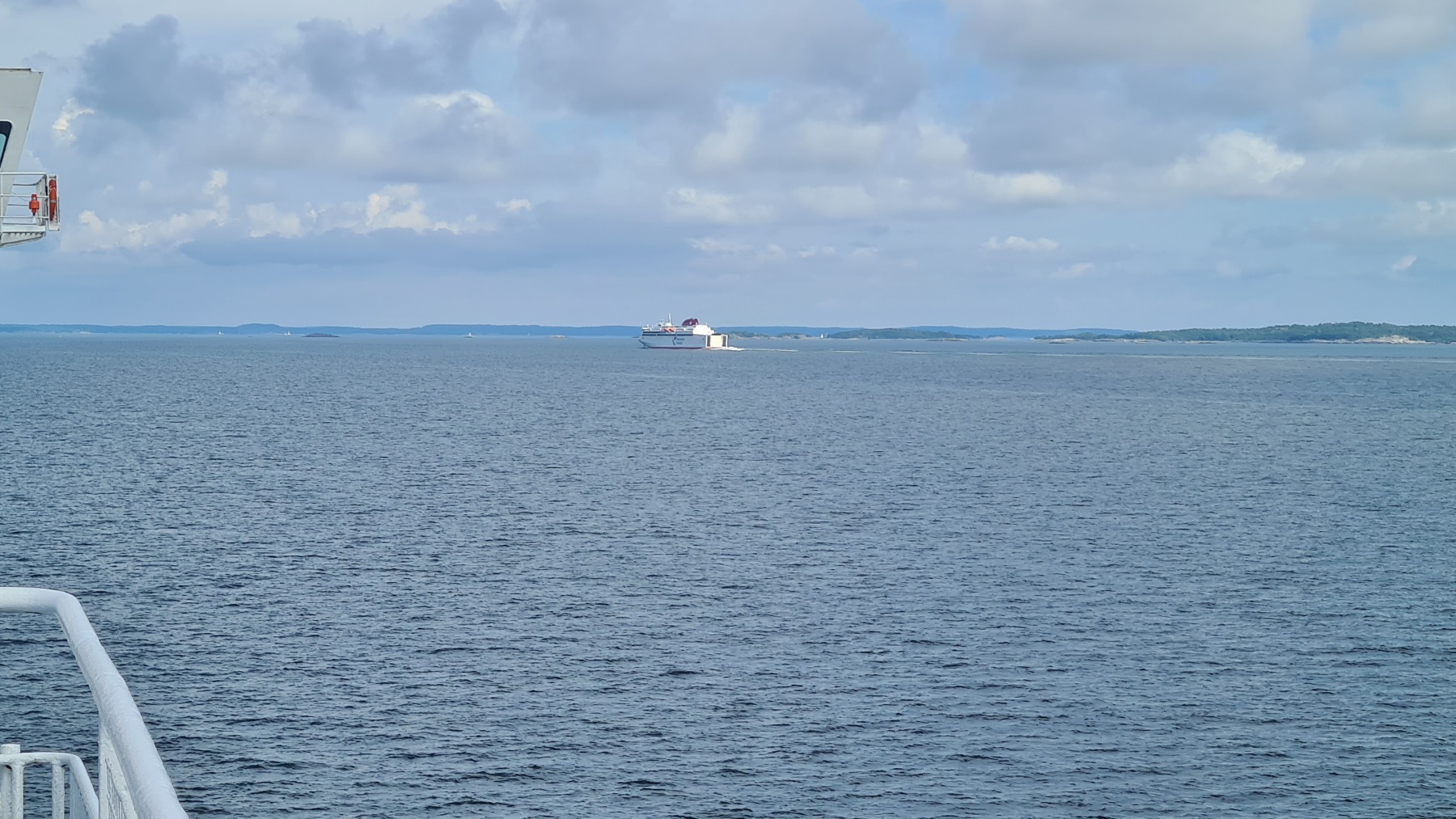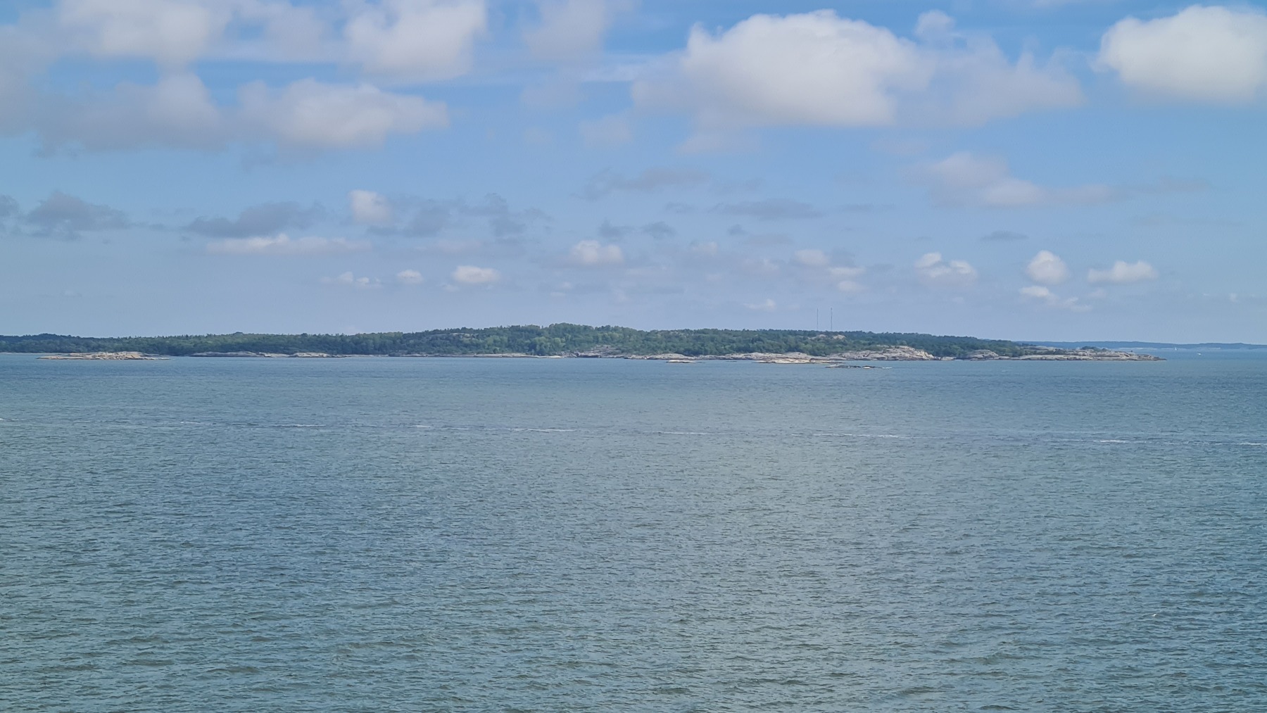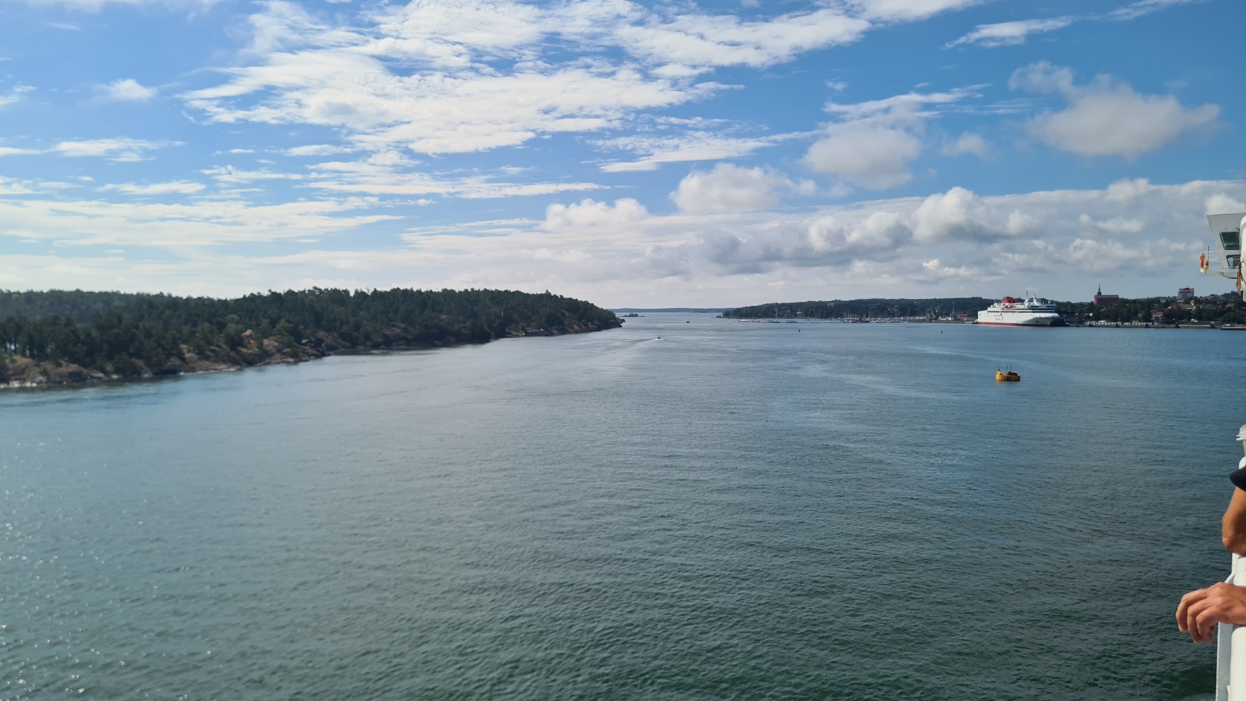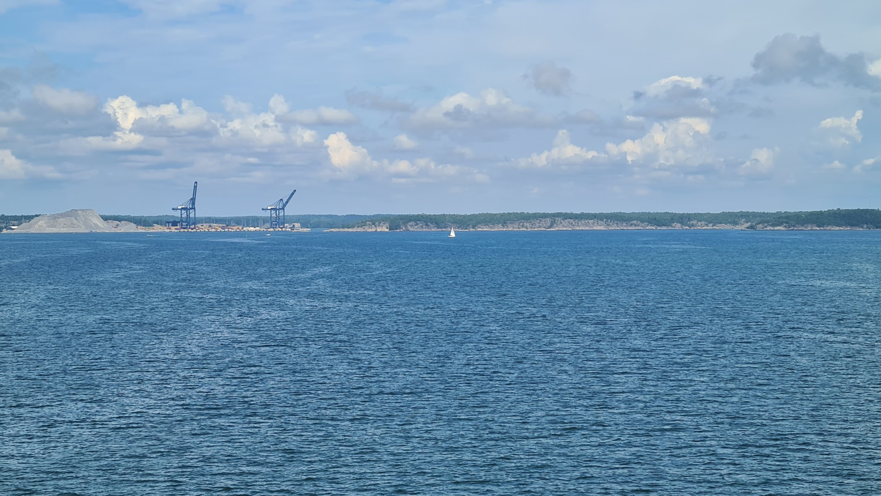 Quand je me suis levé, nous avions déjà dépassé l’île de Gotland. Gisèle m’a rejoint sur le pont et nous sommes allés prendre notre petit déjeuner à la cafétéria. Nous sommes remontés sur le pont pour guetter l’apparition de la côte suédoise.
