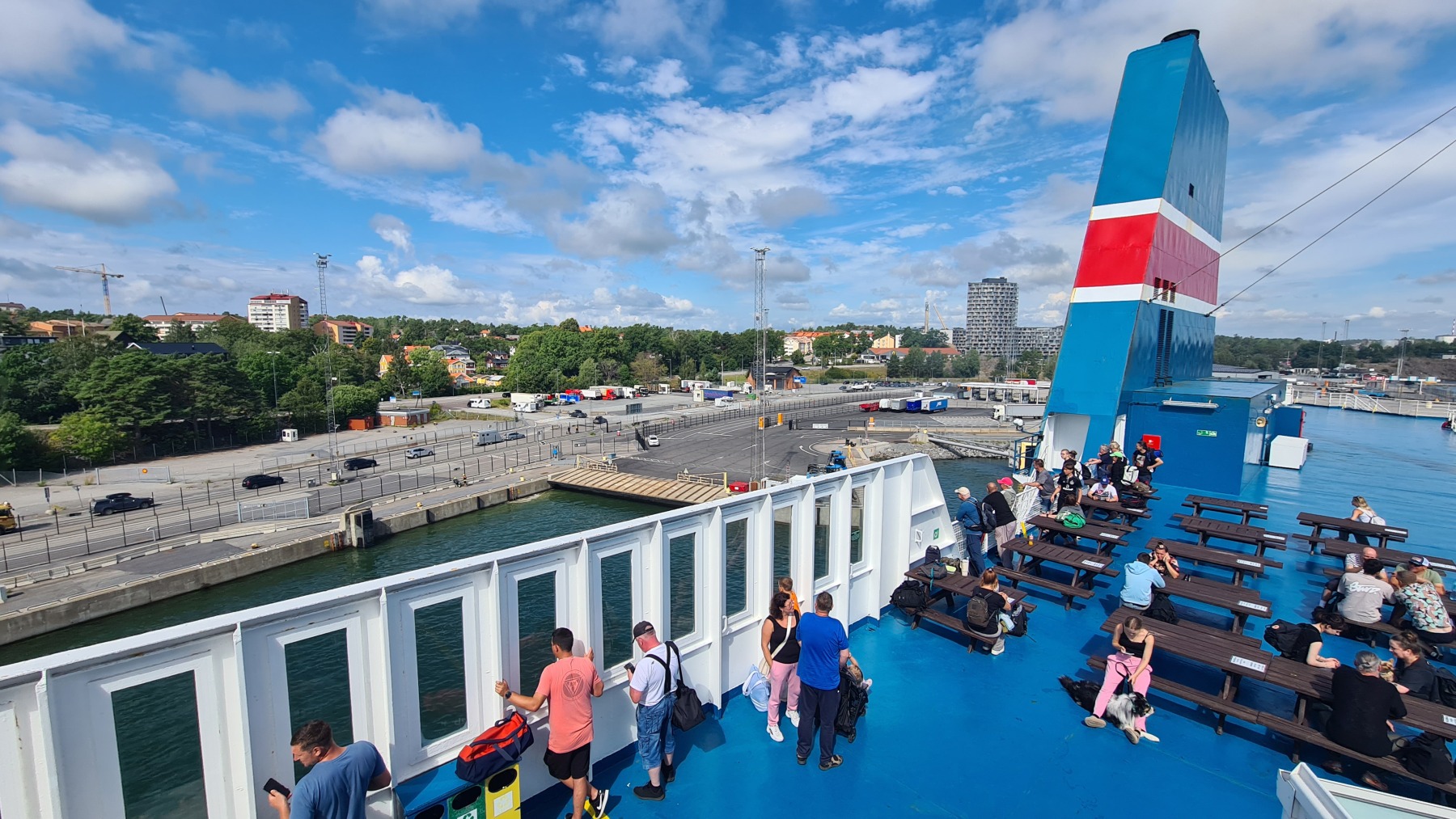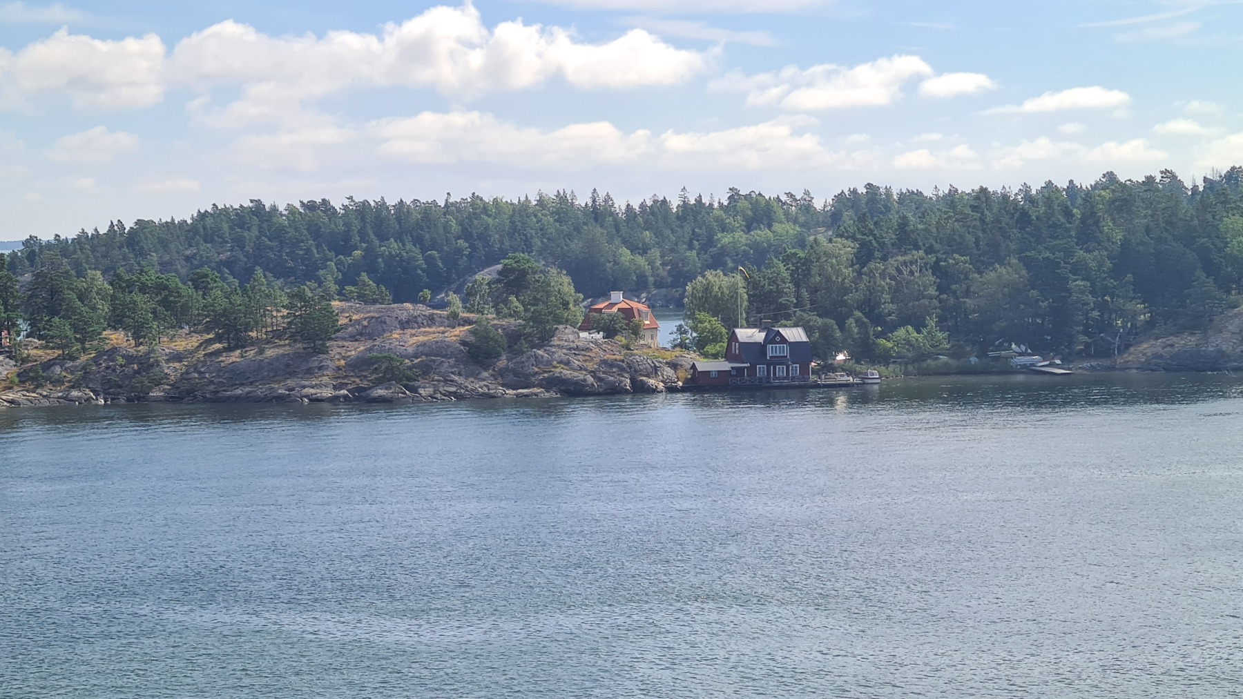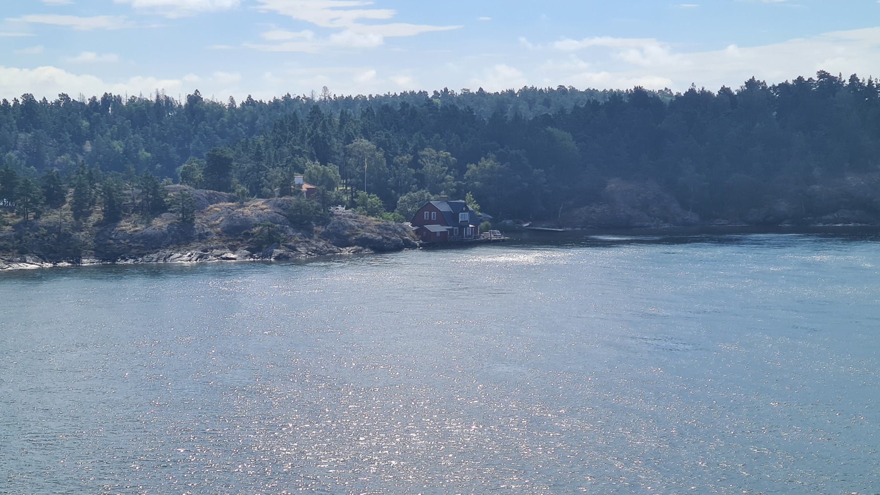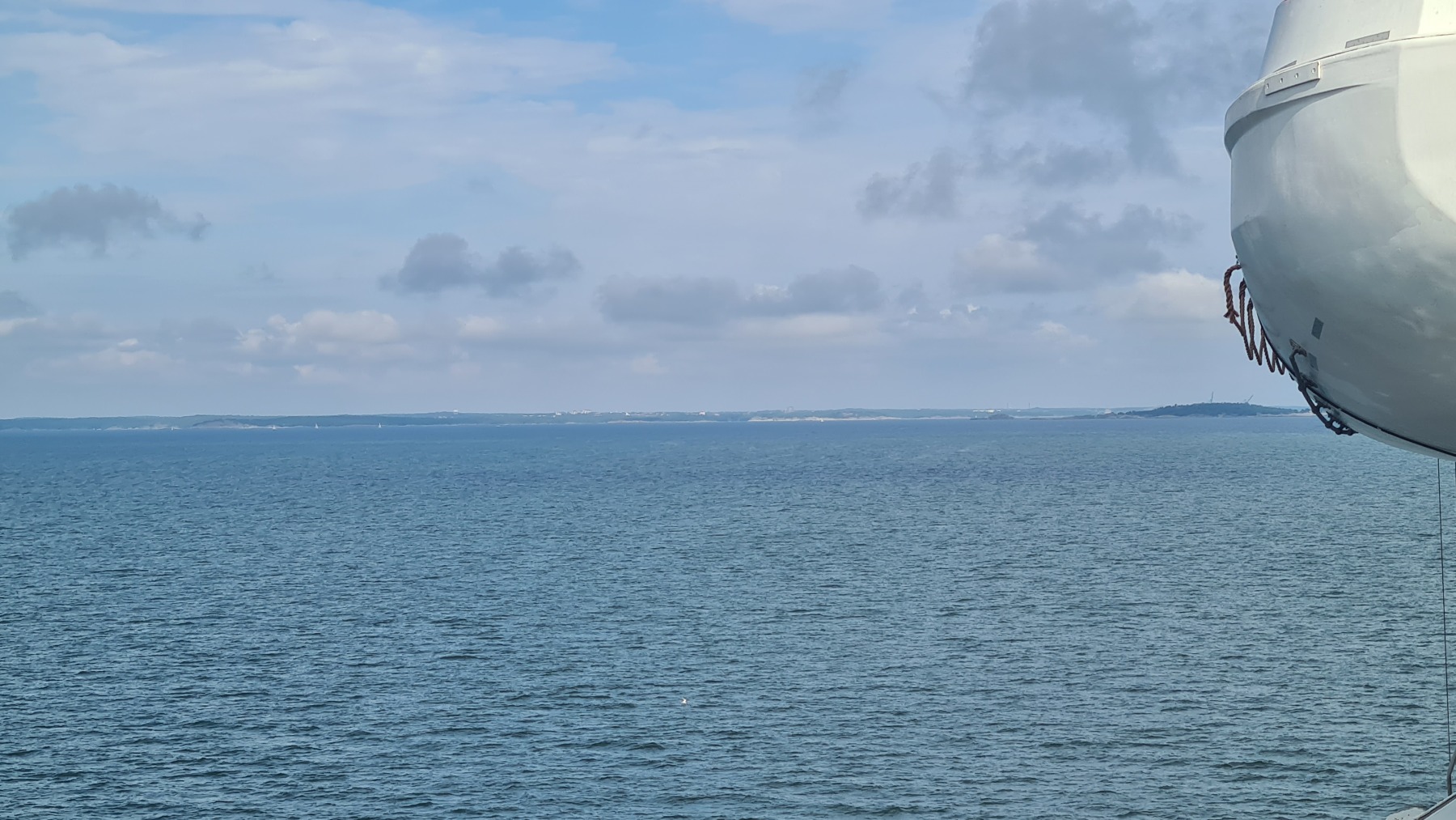 Quand je me suis levé, nous avions déjà dépassé l’île de Gotland. Gisèle m’a rejoint sur le pont et nous sommes allés prendre notre petit déjeuner à la cafétéria. Nous sommes remontés sur le pont pour guetter l’apparition de la côte suédoise.