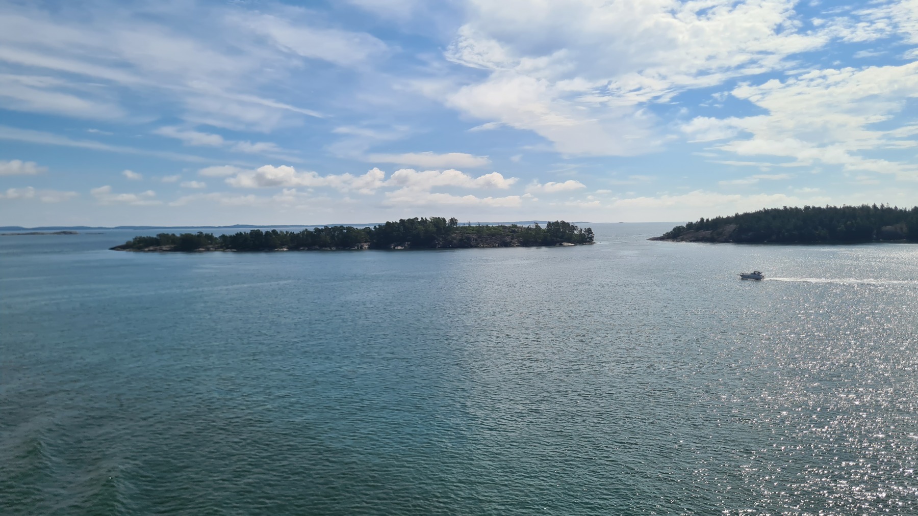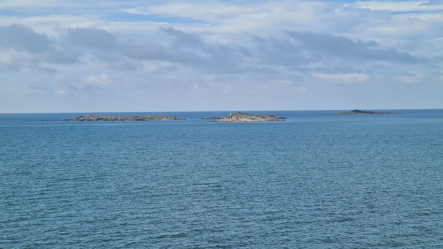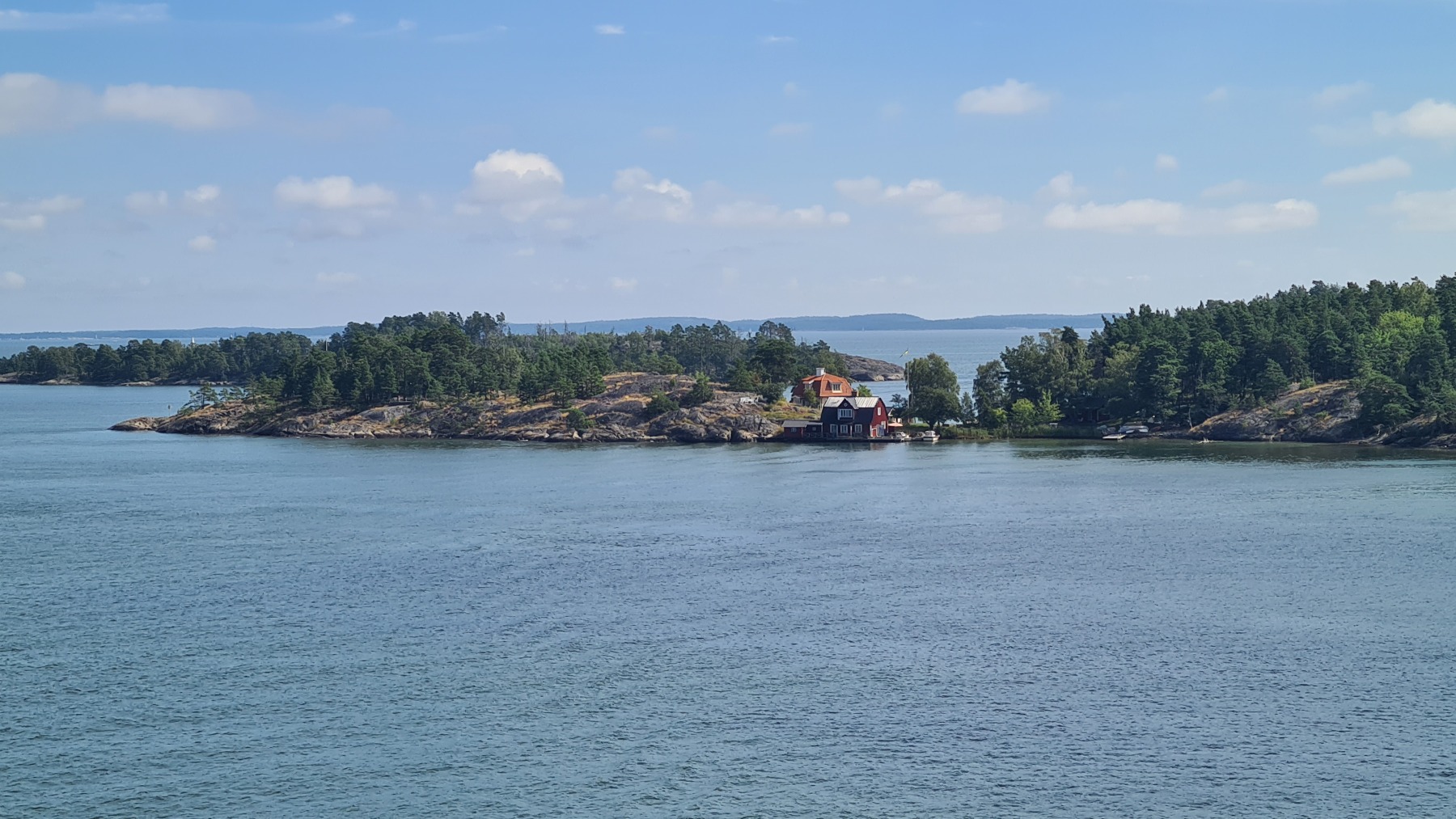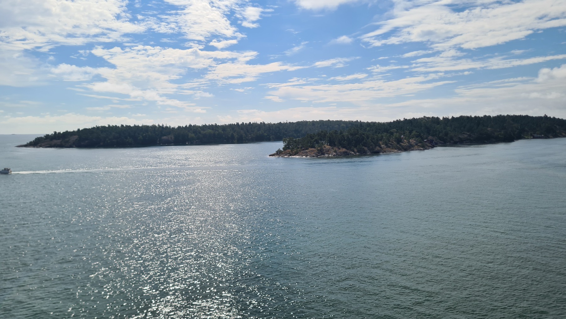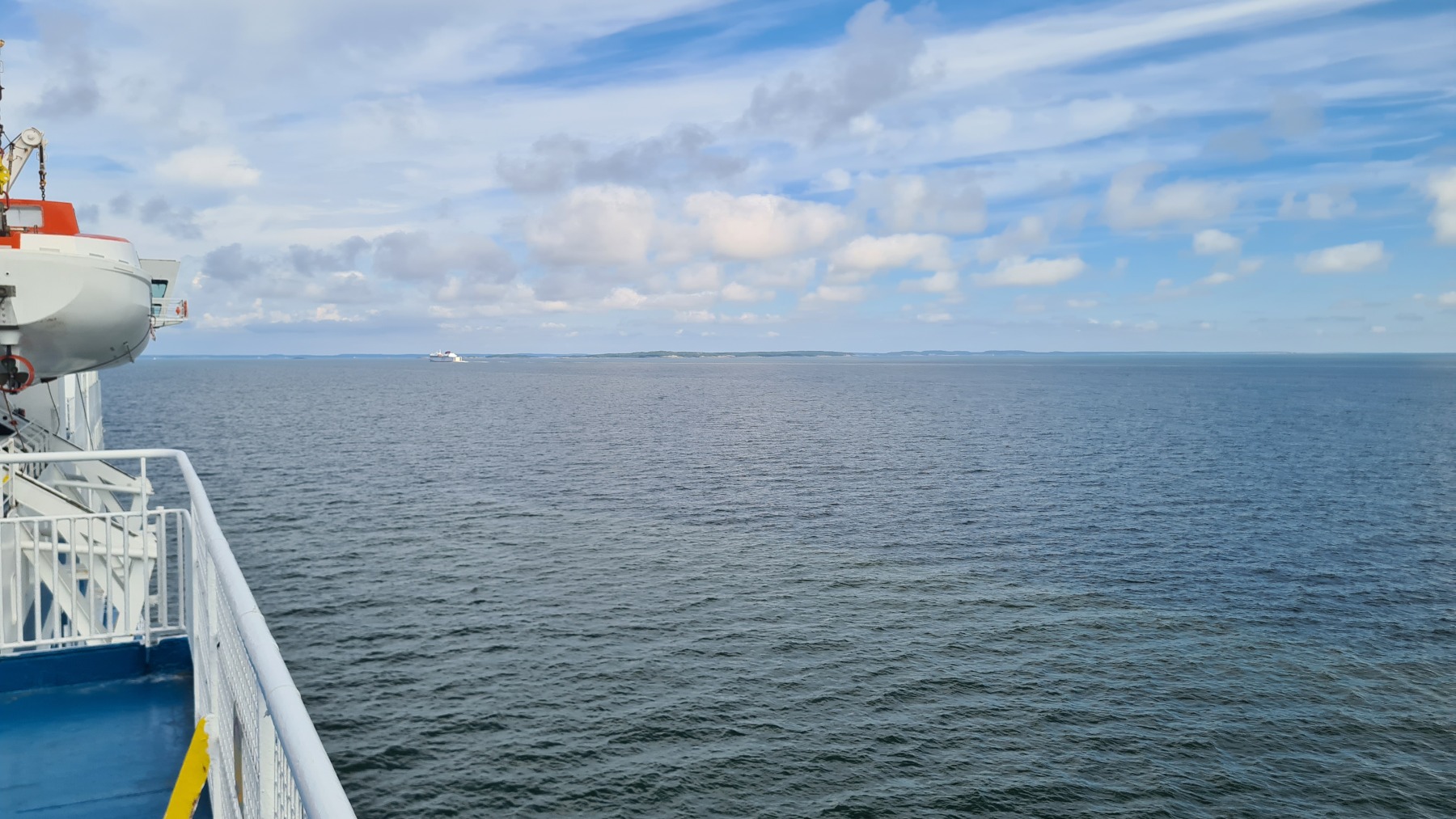Quand je me suis levé, nous avions déjà dépassé l’île de Gotland. Gisèle m’a rejoint sur le pont et nous sommes allés prendre notre petit déjeuner à la cafétéria. Nous sommes remontés sur le pont pour guetter l’apparition de la côte suédoise.