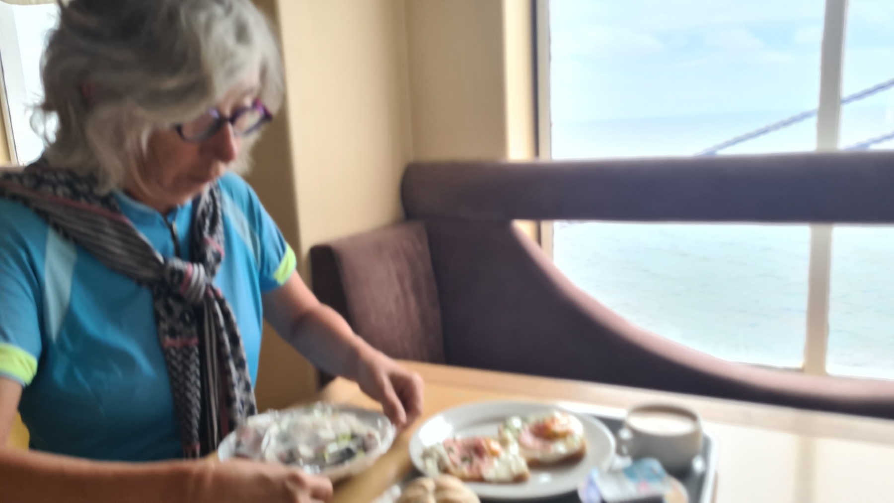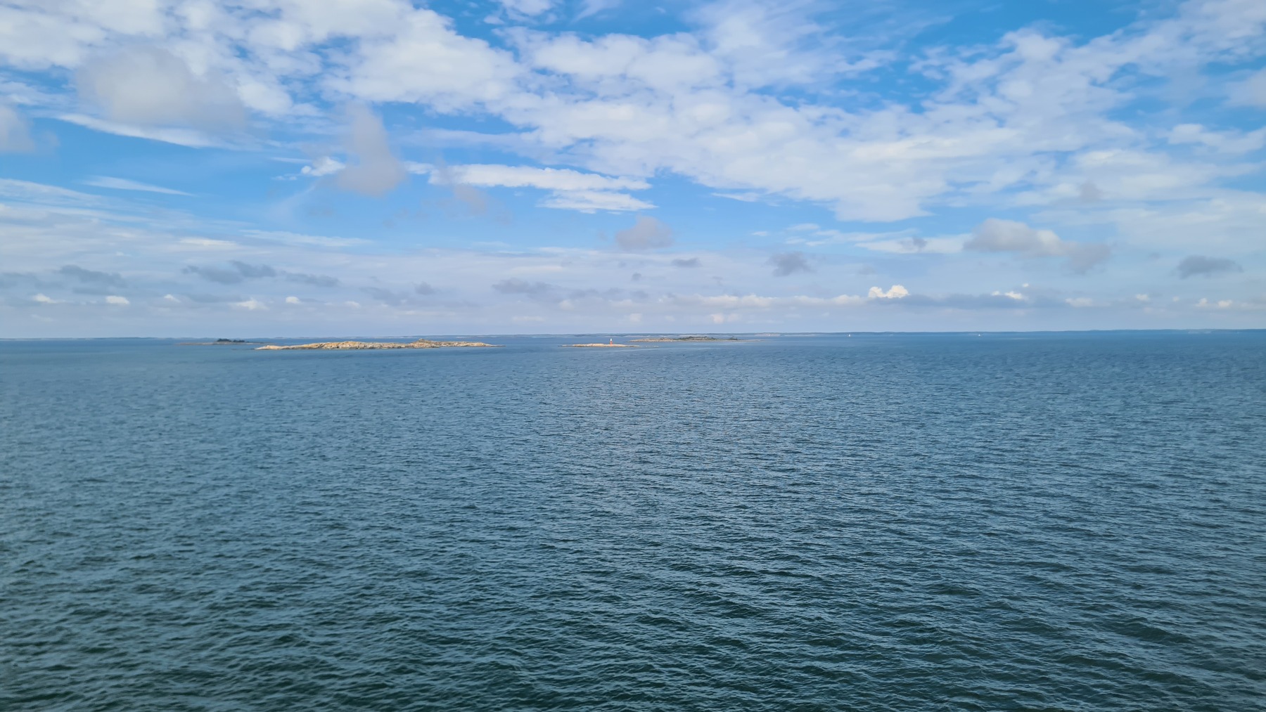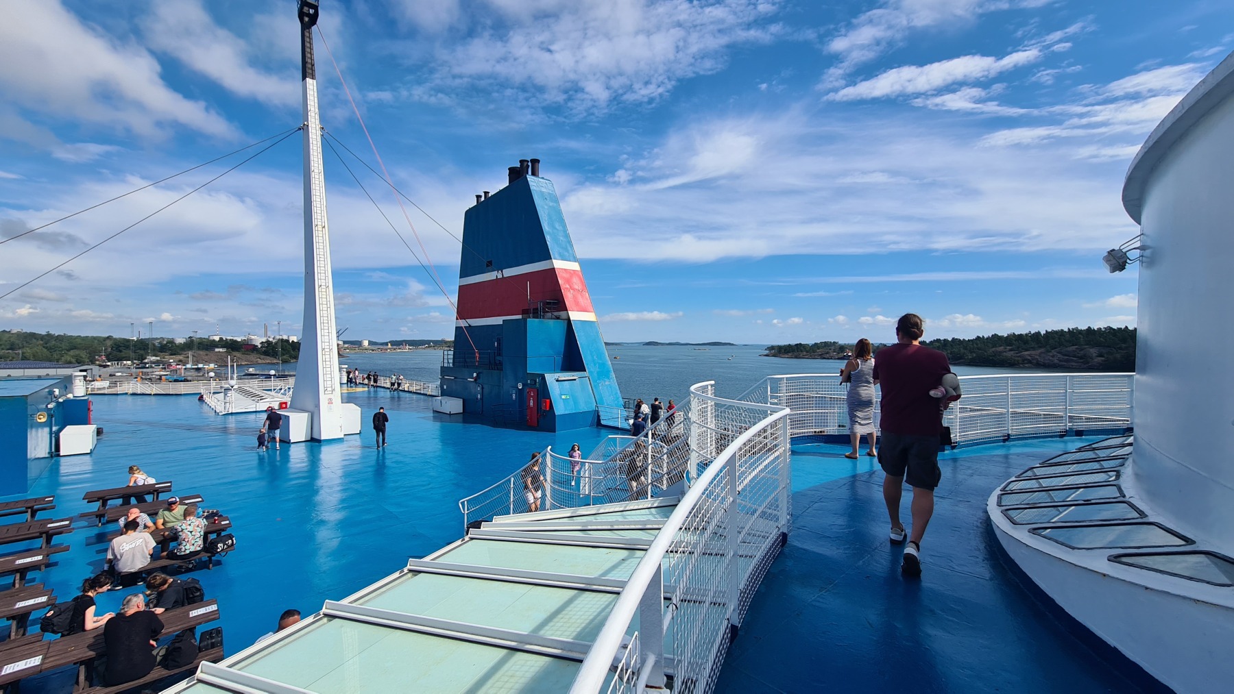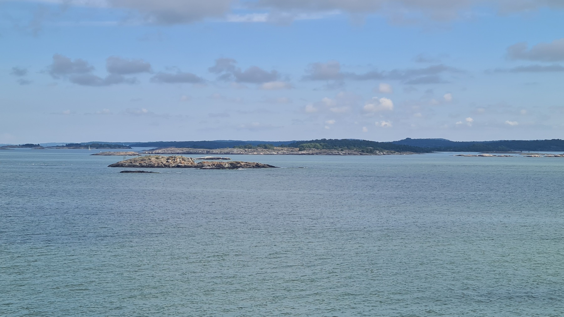 Quand je me suis levé, nous avions déjà dépassé l’île de Gotland. Gisèle m’a rejoint sur le pont et nous sommes allés prendre notre petit déjeuner à la cafétéria. Nous sommes remontés sur le pont pour guetter l’apparition de la côte suédoise.