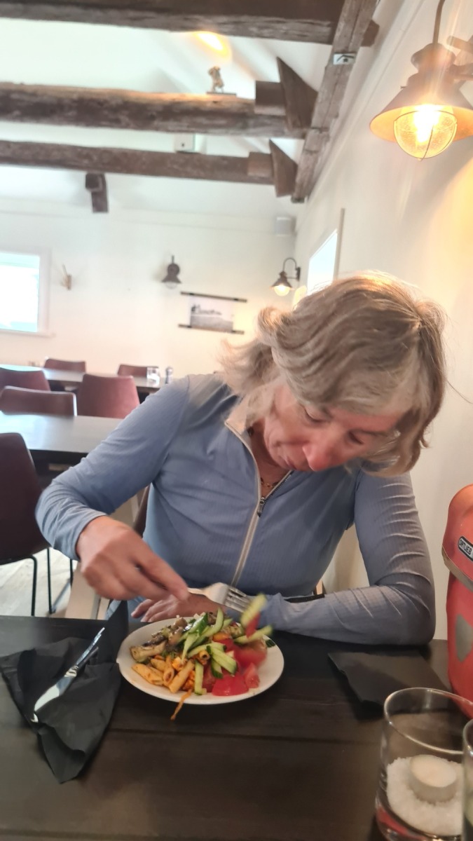 Autres incontournables de ces premières étapes suédoises : les restaurants avec buffets. Lors de la première étape nous avions trouvé un buffet dans un magasin de jardinage et hier comme aujourd’hui, les restaurants nous ont proposé des menus avec un choix de plat chaud, un buffet de salades, de l’eau et un café filtre, le tout pour un prix très modique (moins de 25 € à deux ce midi).