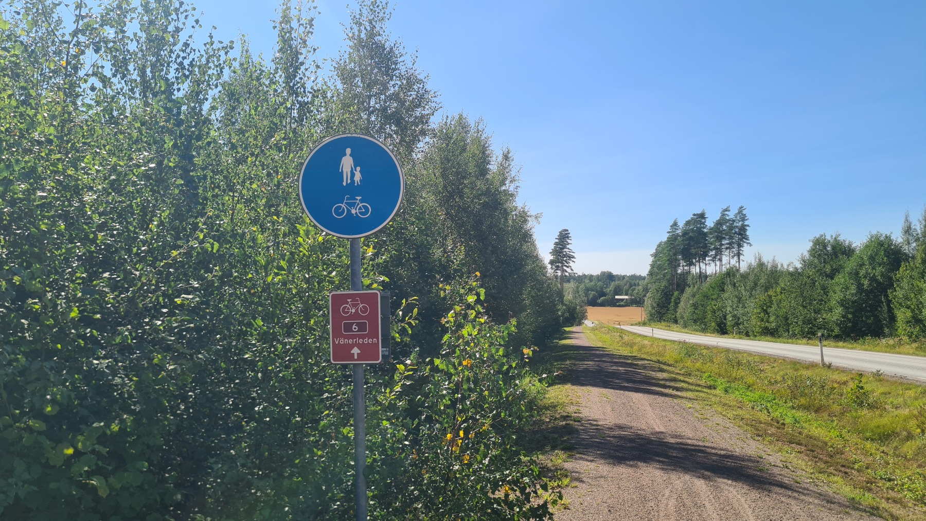 Nous avons fait notre première étape sur Eurovelo 7 sans en voir aucune balise. Suivant la terminologie Eurovelo, cette section est en effet « planifiée » mais non « développée ». La Suède est suffisamment bien équipée en itinéraires cyclables pour que ce ne soit pas vraiment un problème mais cela nous a tout de même surpris.