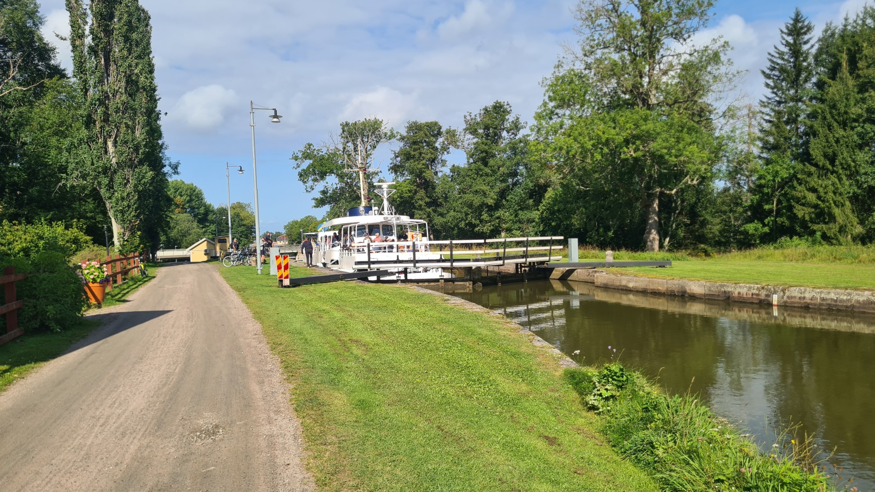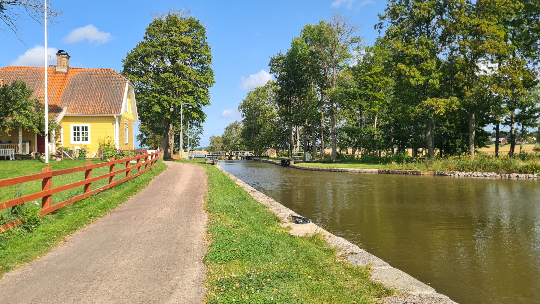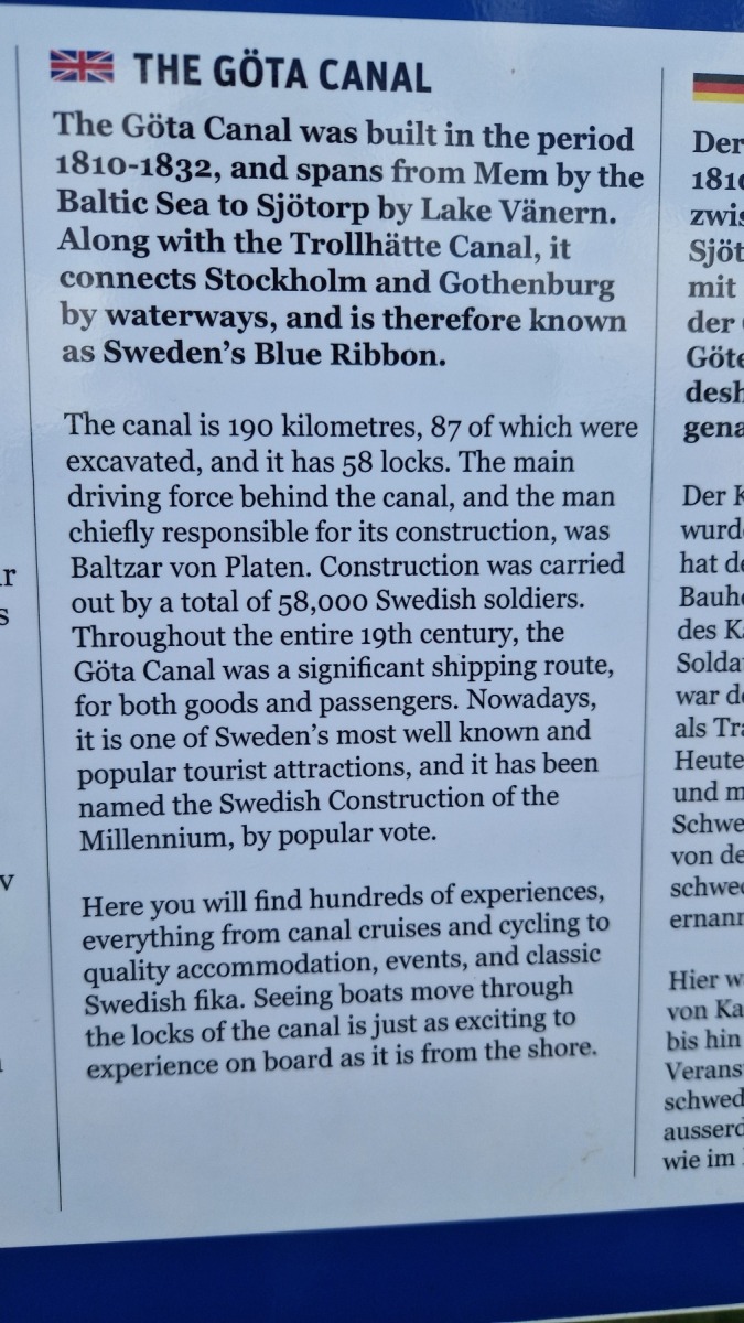 Aujourd’hui Eurovelo 7 nous a fait suivre deux des plus célèbres parcours cyclables suédois : le Vänerleden (tour du lac Vänern) que nous suivrons encore pendant deux jours qui lui même emprunte sur une quinzaine de kilomètres la Göta kanalleden qui est pour les Suédois l’équivalent de nos itinéraires le long du canal du Midi ou du canal de Nantes à Brest.
