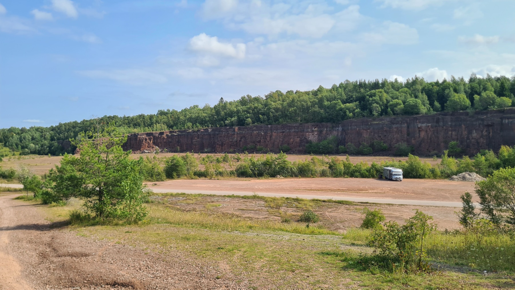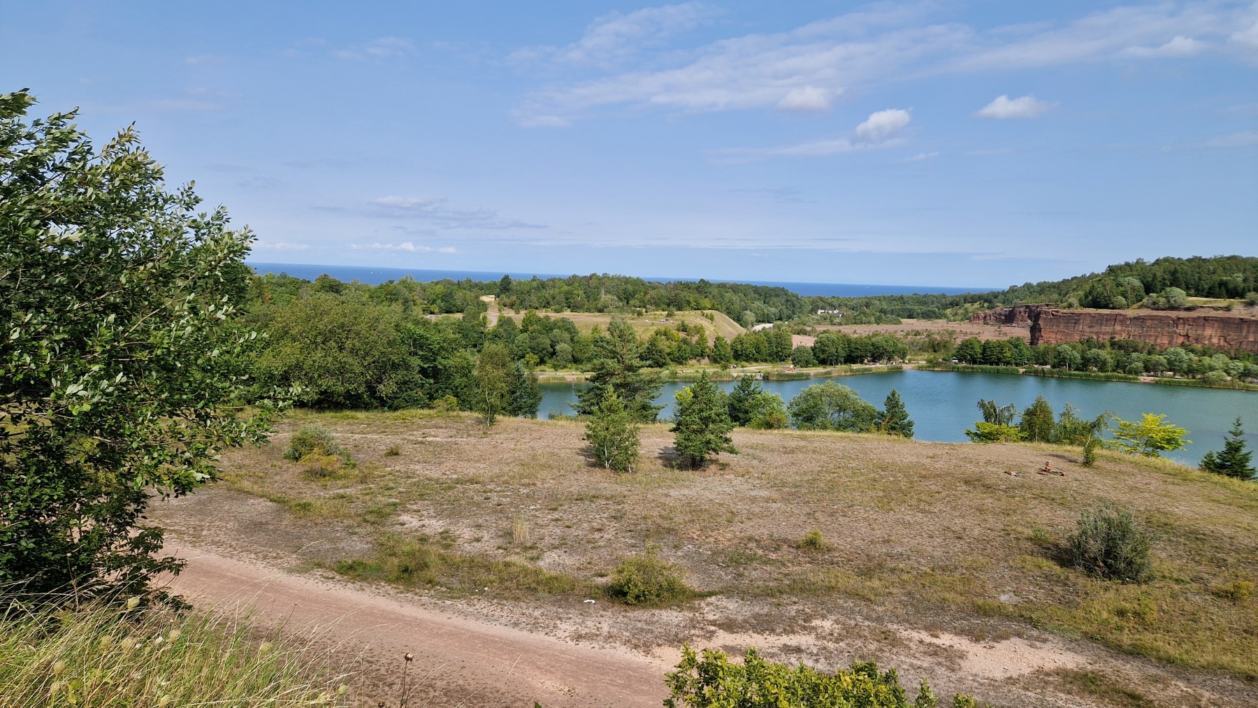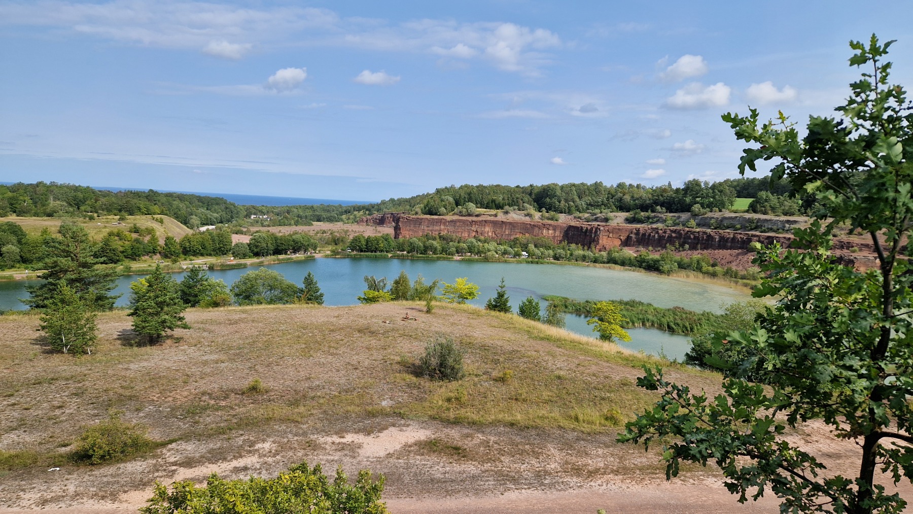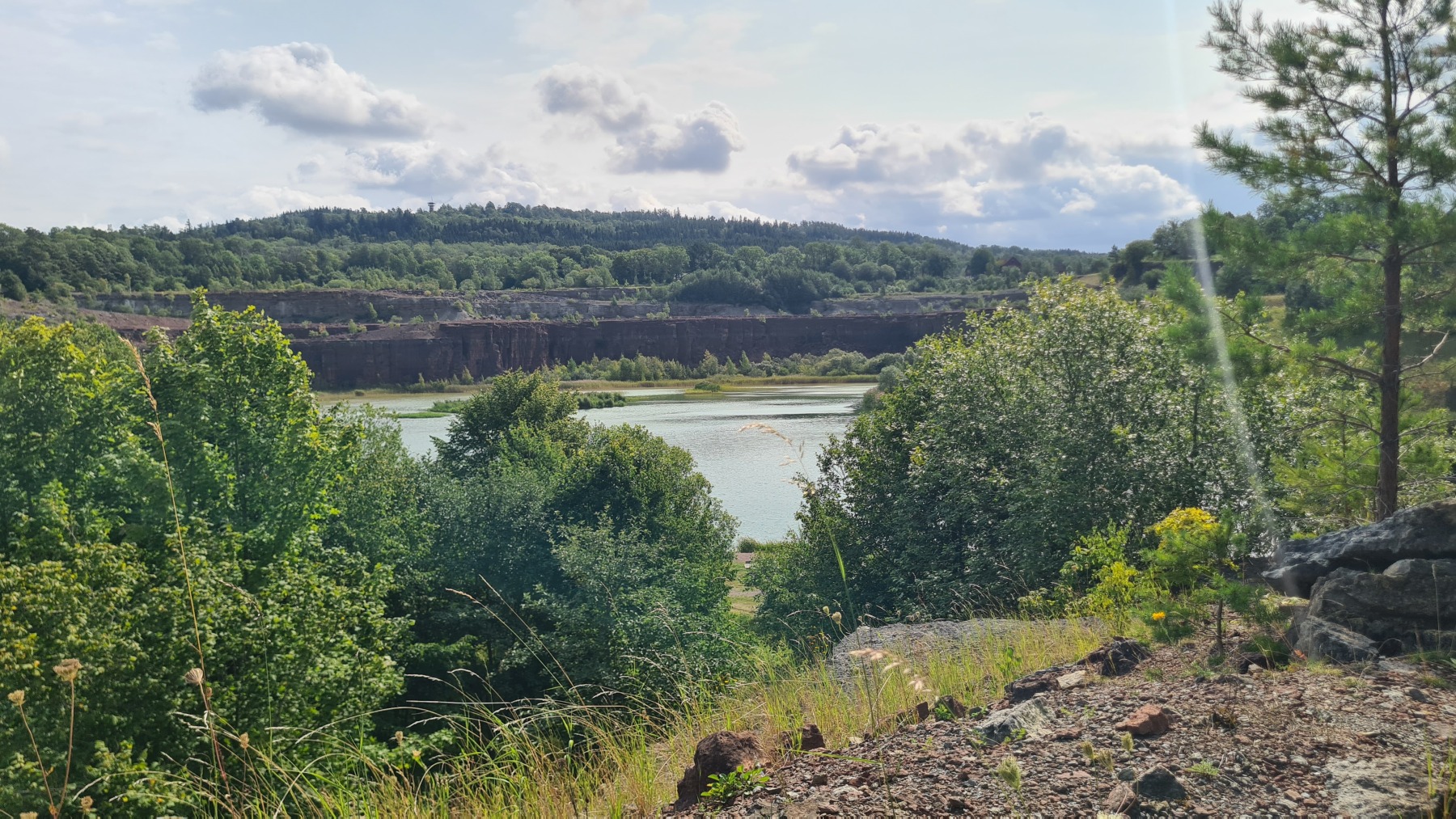 Aujourd’hui nous avons poursuivi sur la Vänerleden (tour du lac Vänern) mais bien que nous n’ayons jamais été bien loin du lac nous ne l’avons pas vu bien souvent : le terrain est plutôt plat et les arbres parviennent facilement à la cacher. La principale exception a été la montée dans d’anciennes carrières au sud d’Hällekis d’où nous avons eu de très belles vues sur la carrière et son étang et sur le lac.