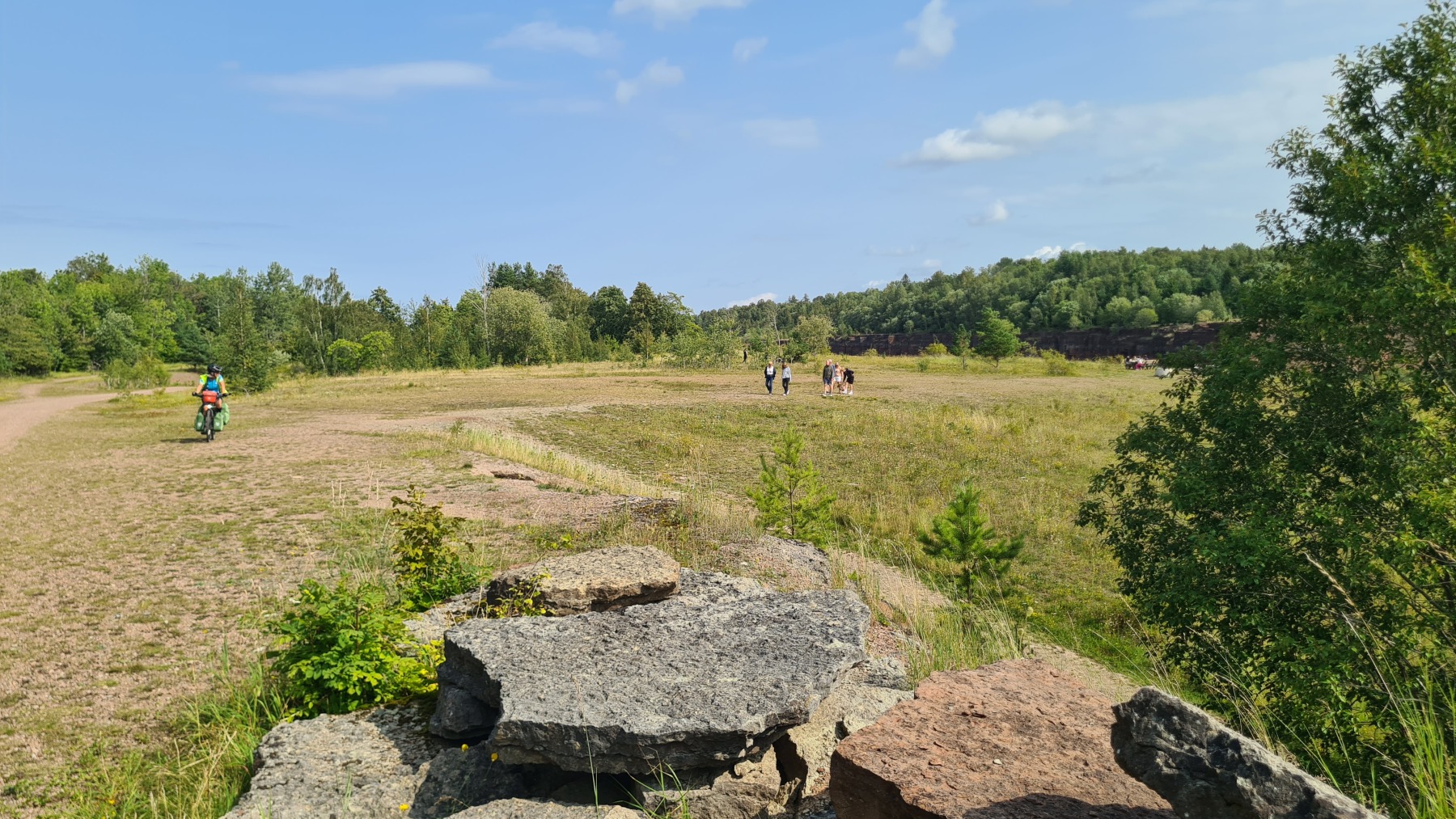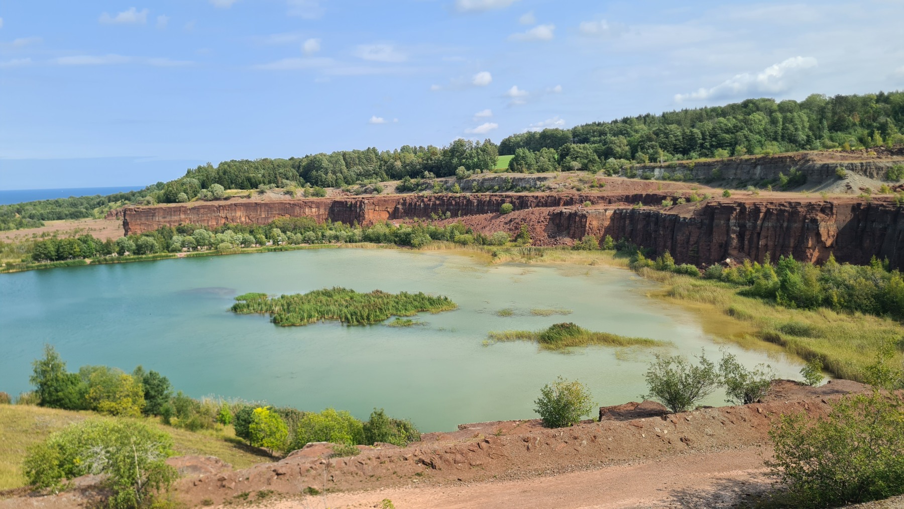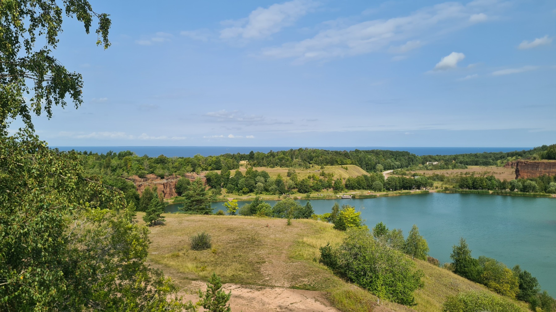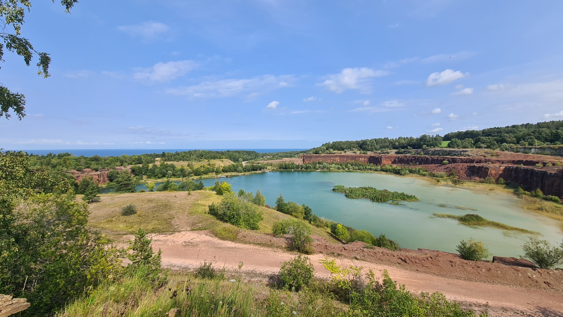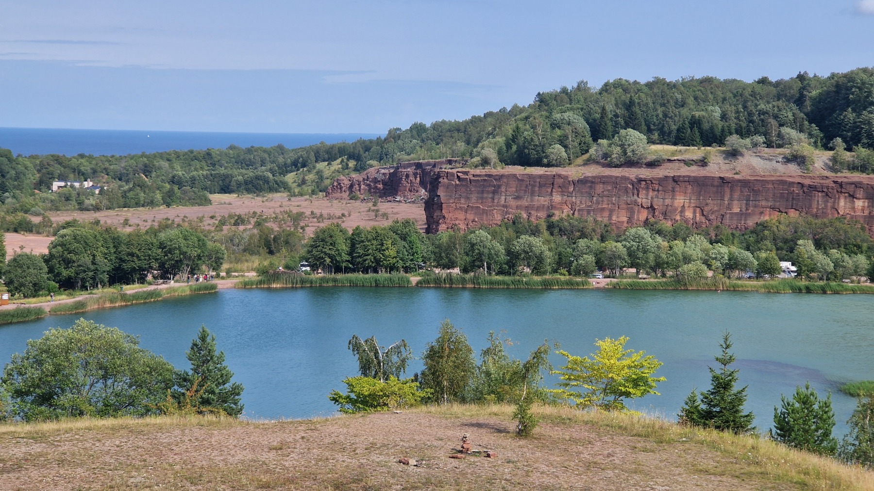 Aujourd’hui nous avons poursuivi sur la Vänerleden (tour du lac Vänern) mais bien que nous n’ayons jamais été bien loin du lac nous ne l’avons pas vu bien souvent : le terrain est plutôt plat et les arbres parviennent facilement à la cacher. La principale exception a été la montée dans d’anciennes carrières au sud d’Hällekis d’où nous avons eu de très belles vues sur la carrière et son étang et sur le lac.