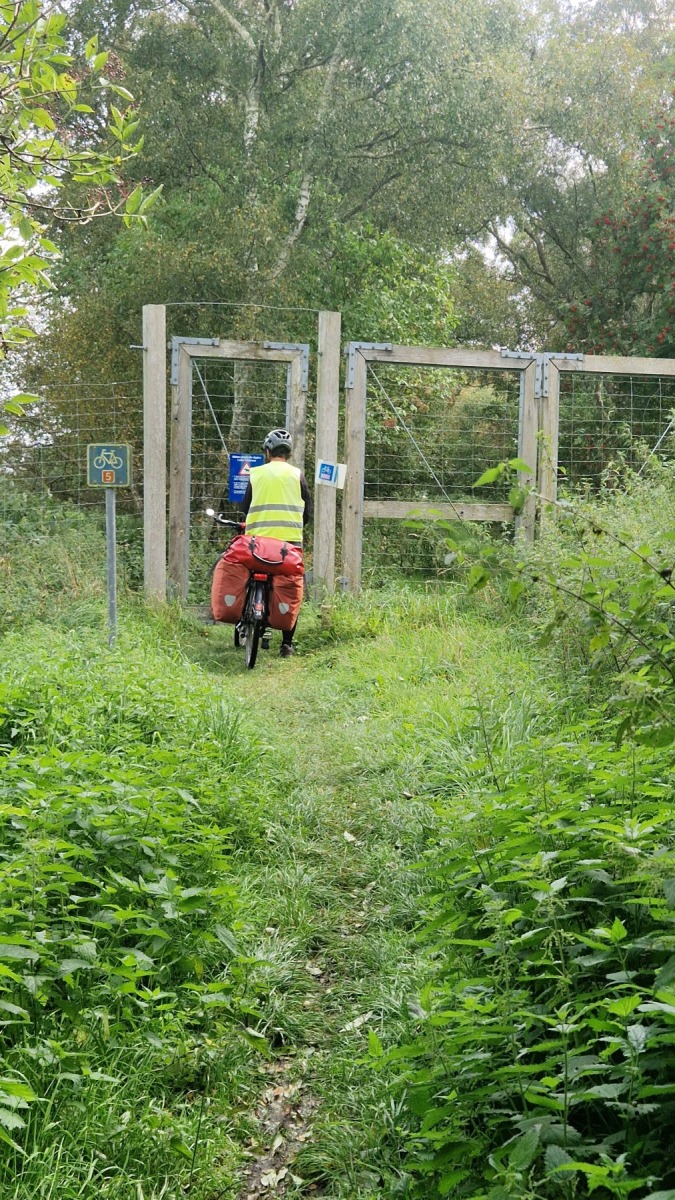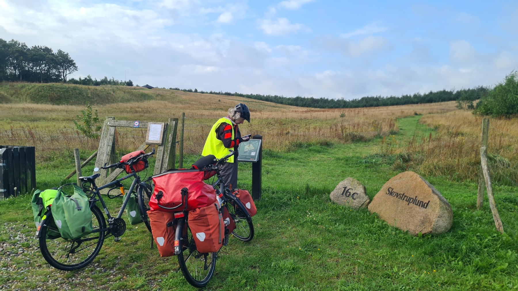 Pour continuer vers le Sud depuis Aalborg la solution la plus évidente était de suivre Eurovelo 3 qui traverse la ville. Nous aurions également pu revenir sur la côte pour rejoindre Eurovelo 12 mais nous avons choisi de rejoindre la « Route 32 » qui fait le tour du fjord Mariager et est réputée être une des plus belles balades en vélo au Danemark. Et comme si ça ne suffisait pas nous avons rallongé l’étape pour passer dans une réserve naturelle en suivant une randonnée que Gisèle a déniché sur komoot.