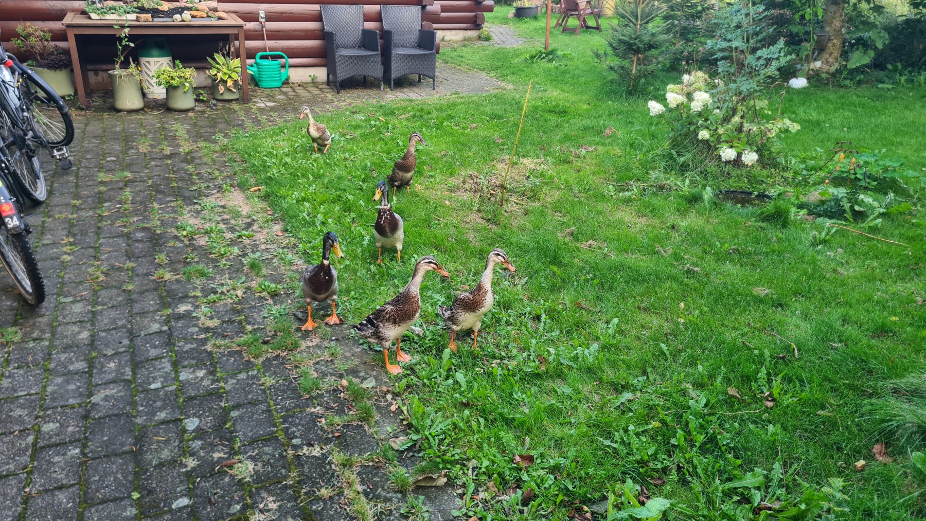 Hier soir notre hôte airbnb nous a amené des tomates de son jardin et m’a invité à aller cueillir des concombres dans sa serre. Elle nous a aussi présenté ses canards coureurs indiens. Ce matin en discutant de notre itinéraire elle nous a conseillé de passer par un ferry à cable à un endroit qui n’est pas très compatible avec celui ou nous devions dormir ce soir.