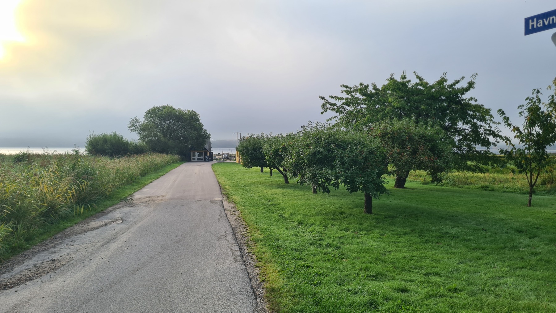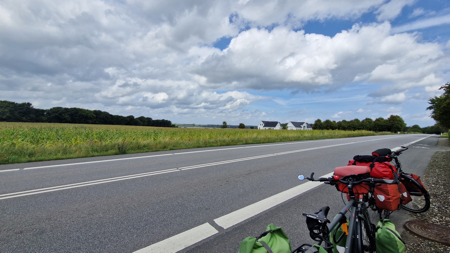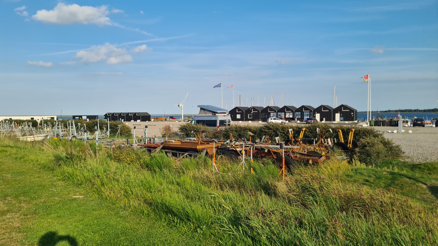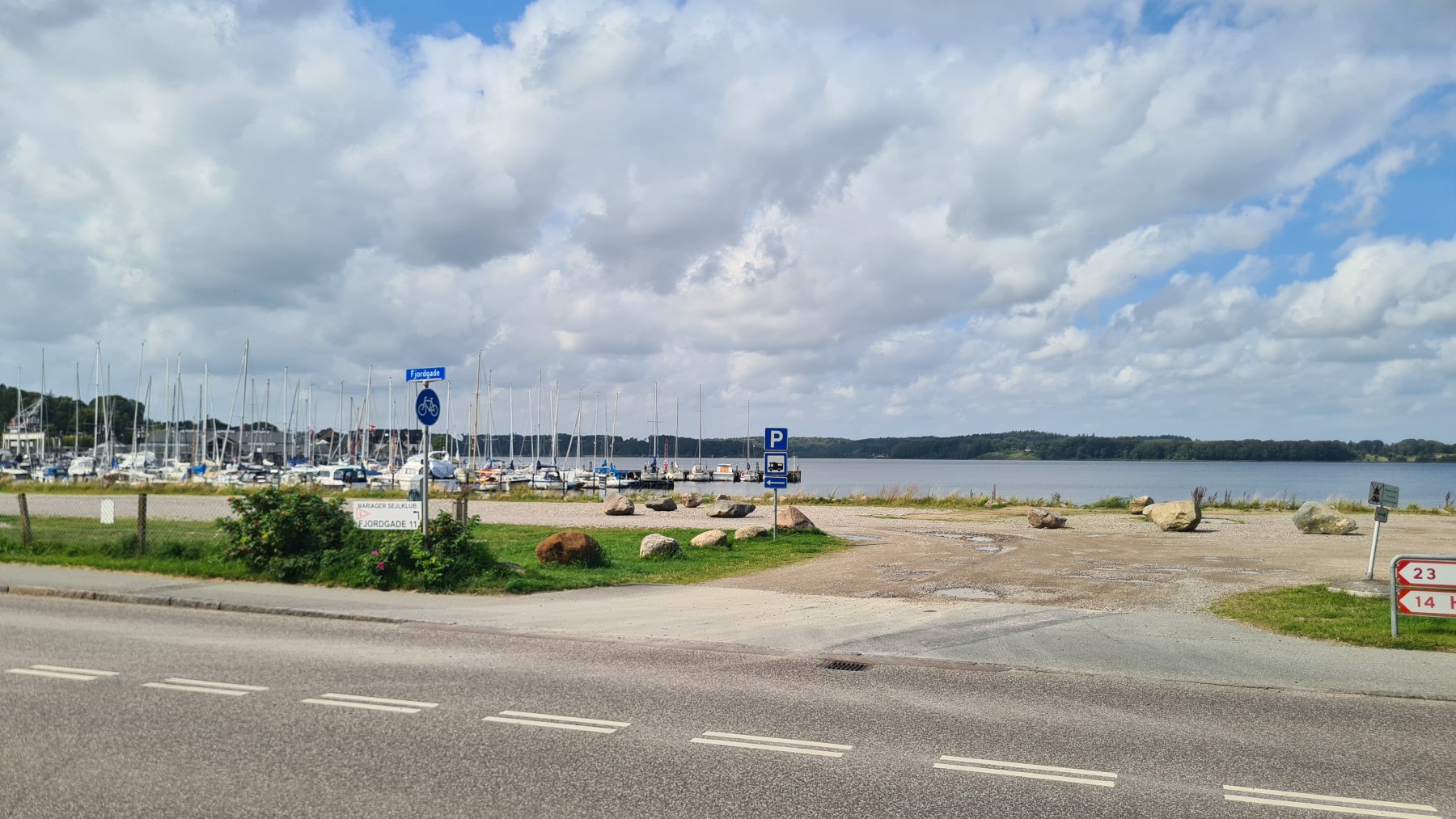 Nous sommes repartis et nous nous sommes installés un peu plus loin en bord du fjord pour chercher un autre hébergement et avons réservé un appartement à quelques mètres du ferry à cable d’Udbyhøj qui nous avait été conseillé ce matin. Nous avons modifié notre itinéraire en conséquence et avons bifurqué sur Eurovelo 12 après avoir quitté la route 32.