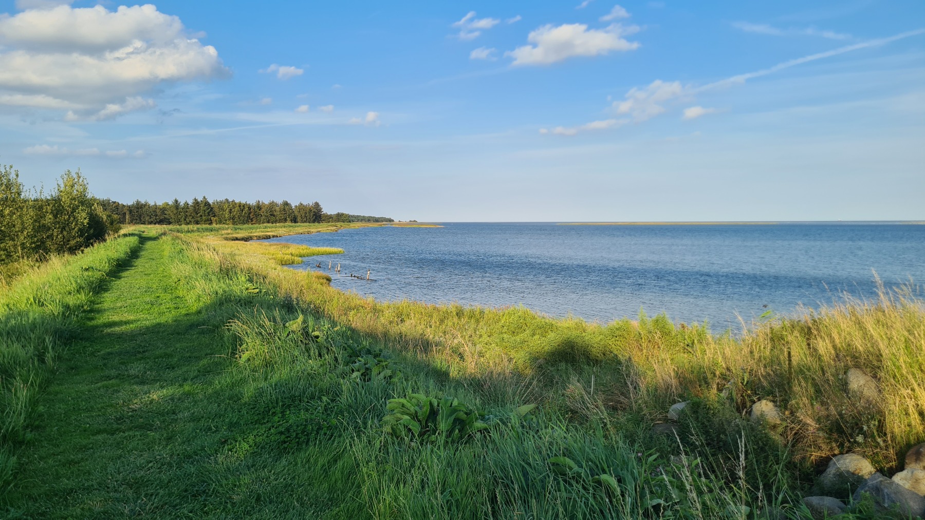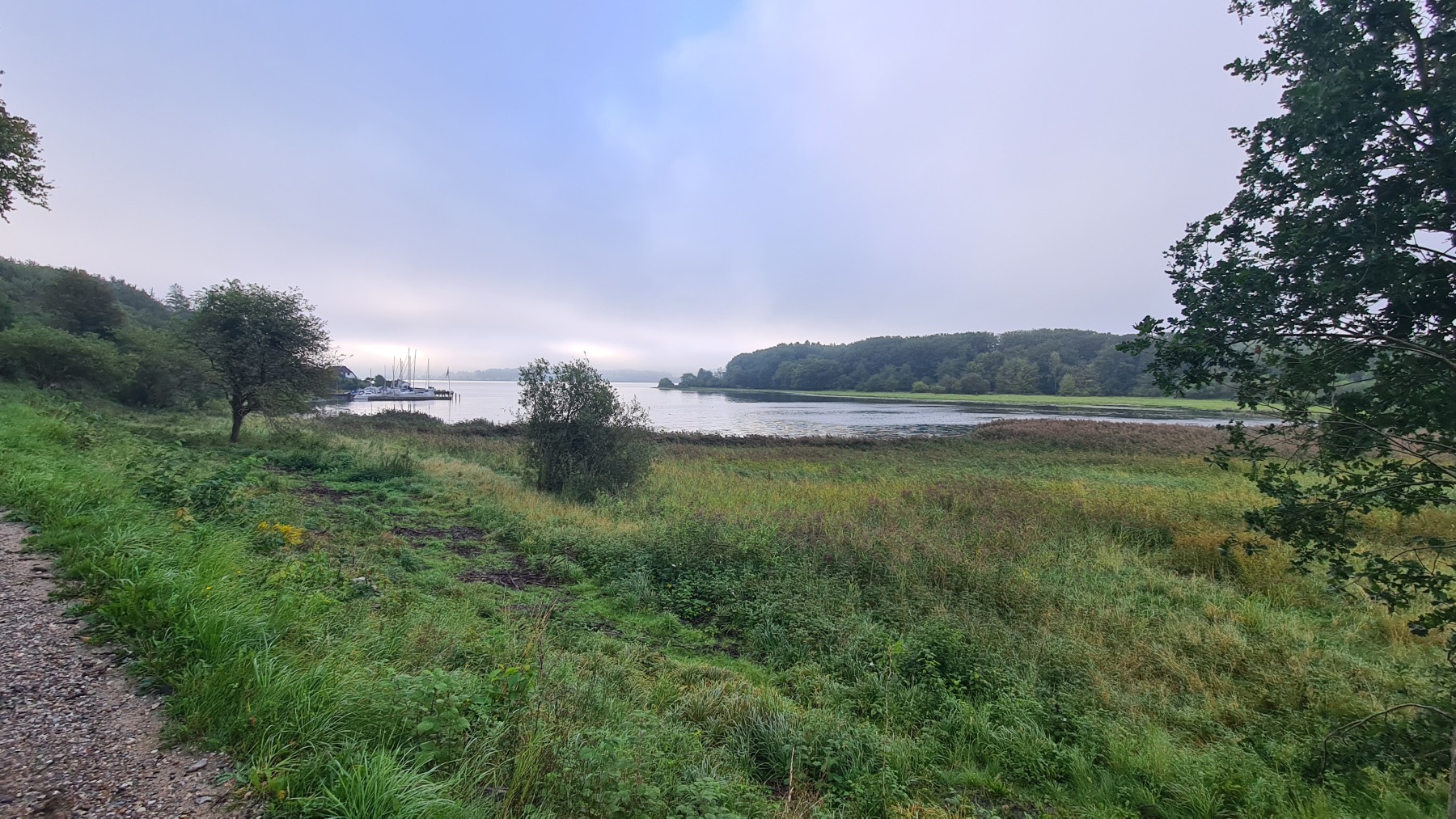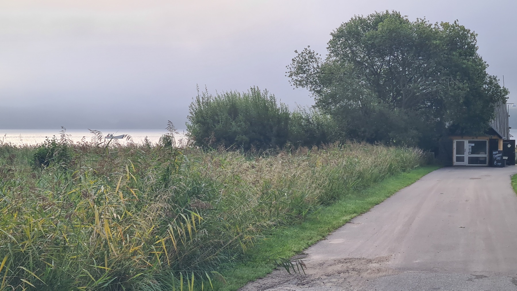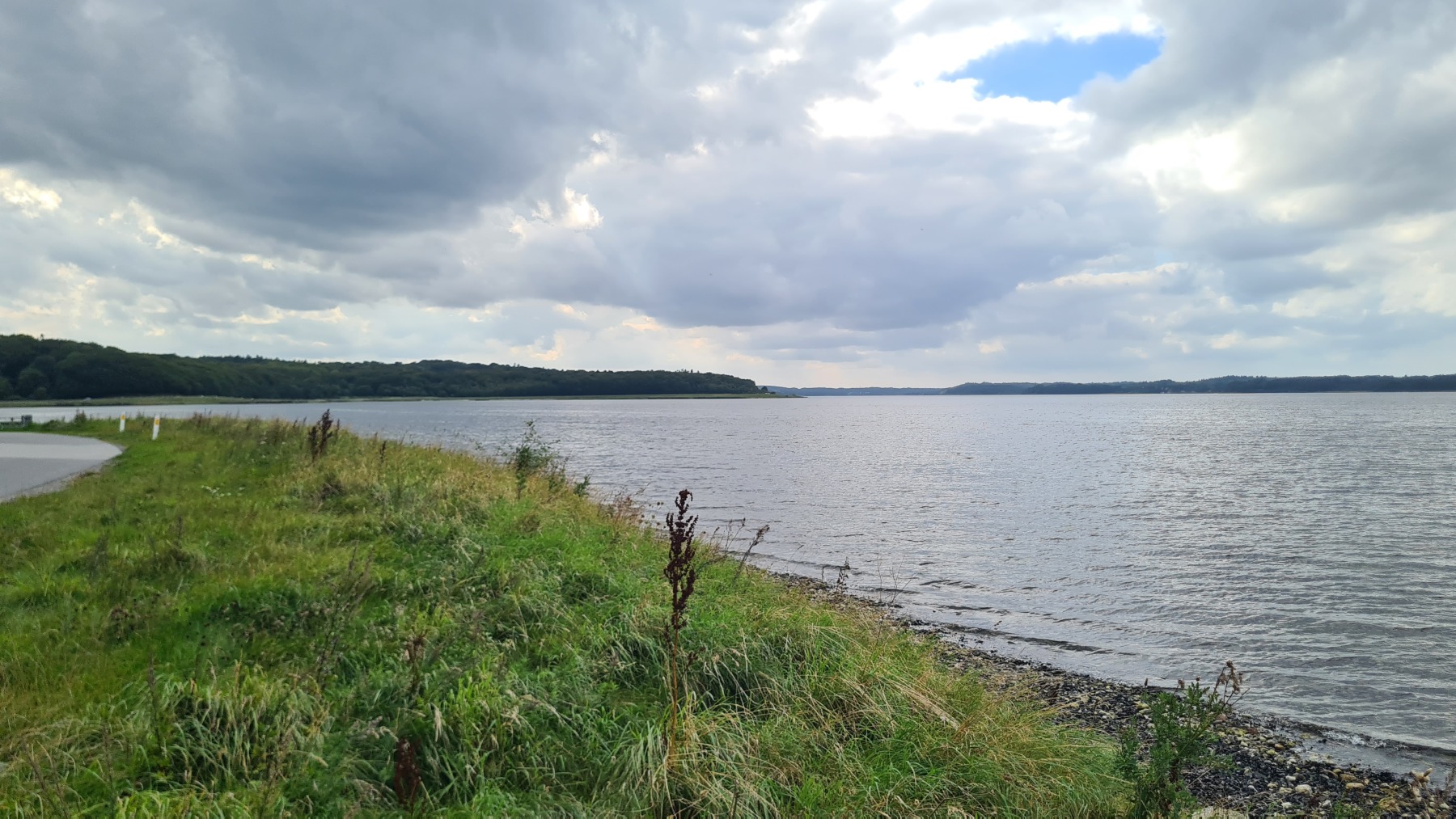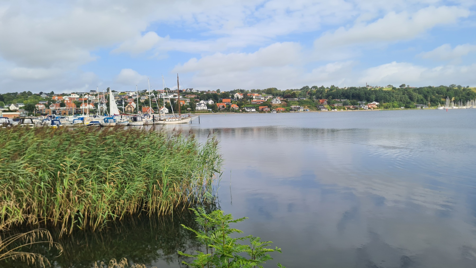 Nous sommes repartis et nous nous sommes installés un peu plus loin en bord du fjord pour chercher un autre hébergement et avons réservé un appartement à quelques mètres du ferry à cable d’Udbyhøj qui nous avait été conseillé ce matin. Nous avons modifié notre itinéraire en conséquence et avons bifurqué sur Eurovelo 12 après avoir quitté la route 32.