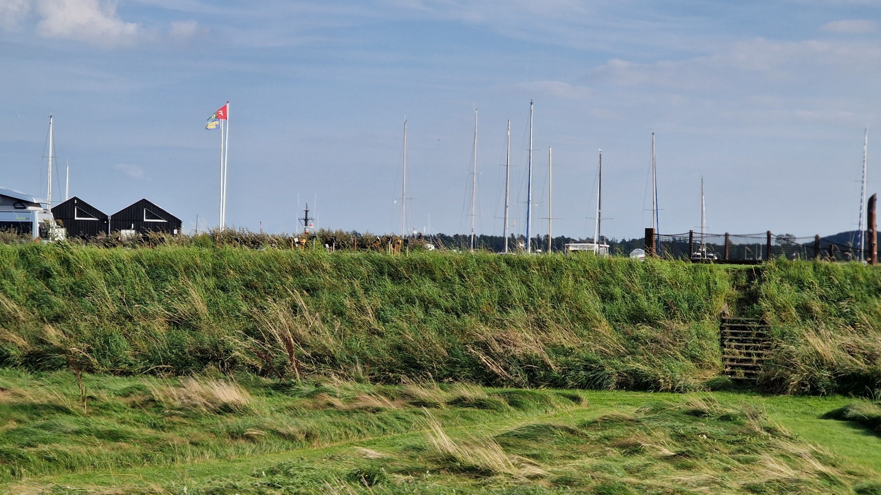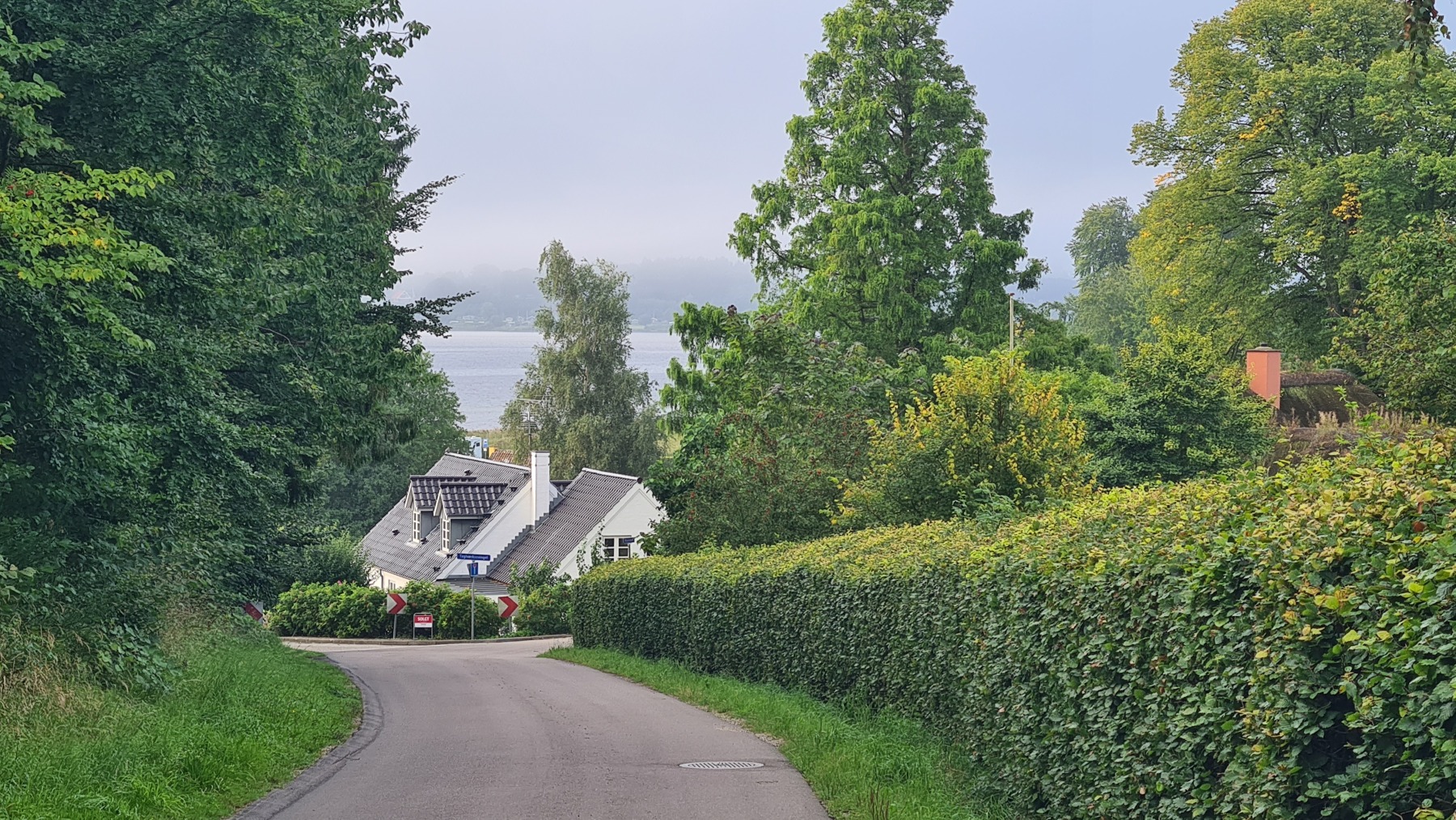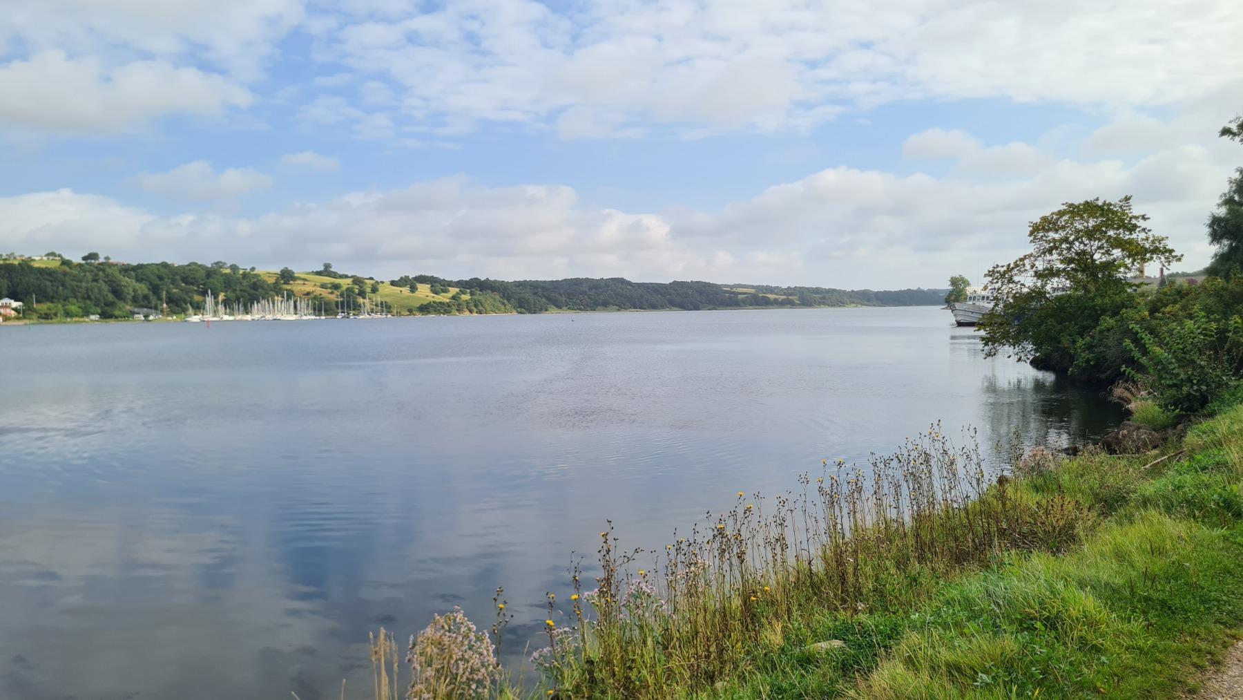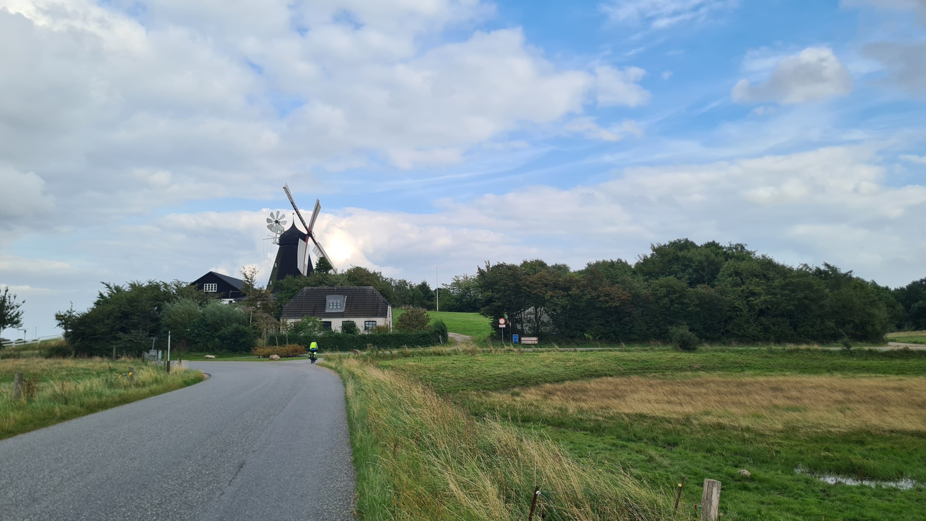 Nous sommes repartis et nous nous sommes installés un peu plus loin en bord du fjord pour chercher un autre hébergement et avons réservé un appartement à quelques mètres du ferry à cable d’Udbyhøj qui nous avait été conseillé ce matin. Nous avons modifié notre itinéraire en conséquence et avons bifurqué sur Eurovelo 12 après avoir quitté la route 32.