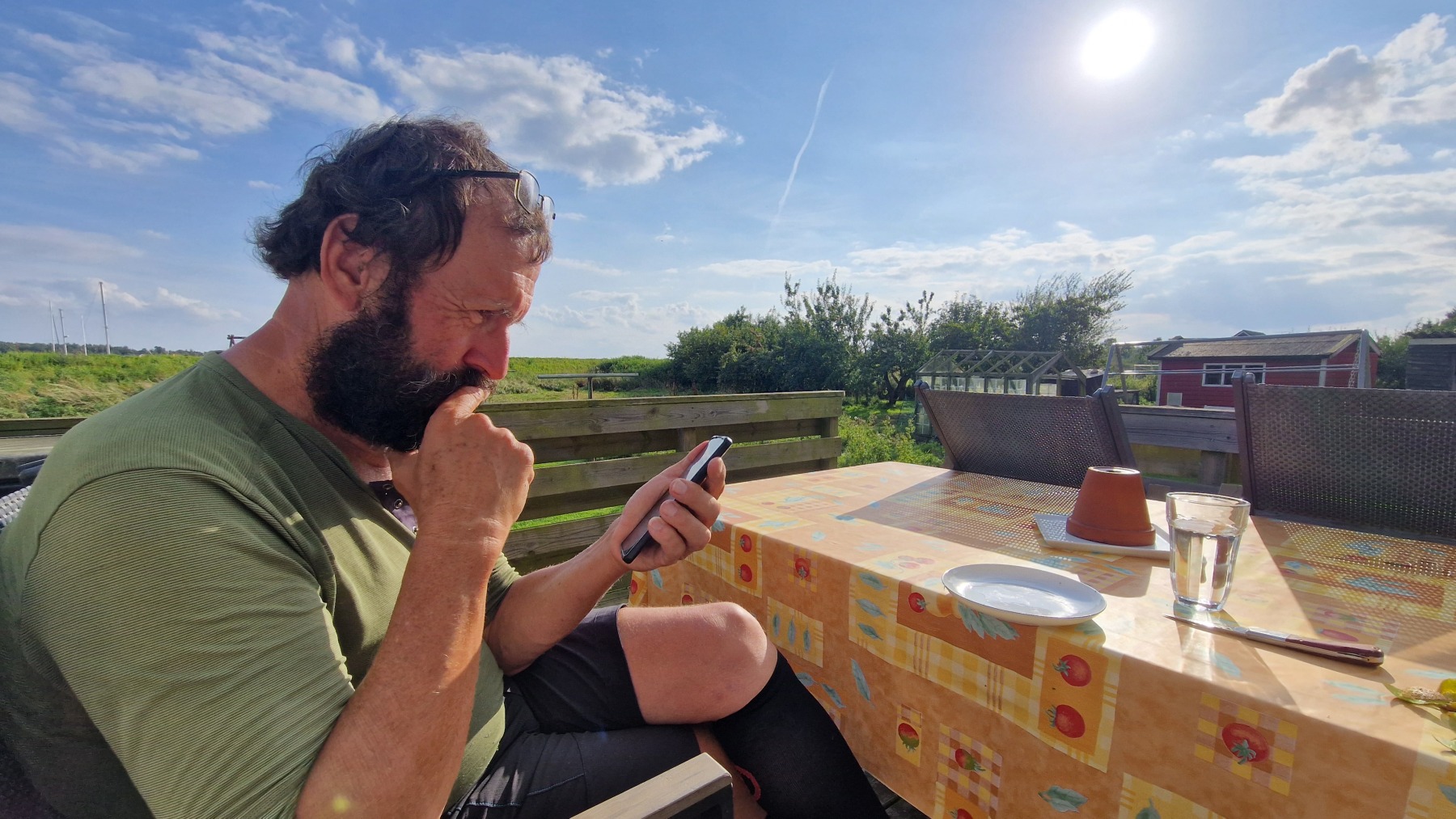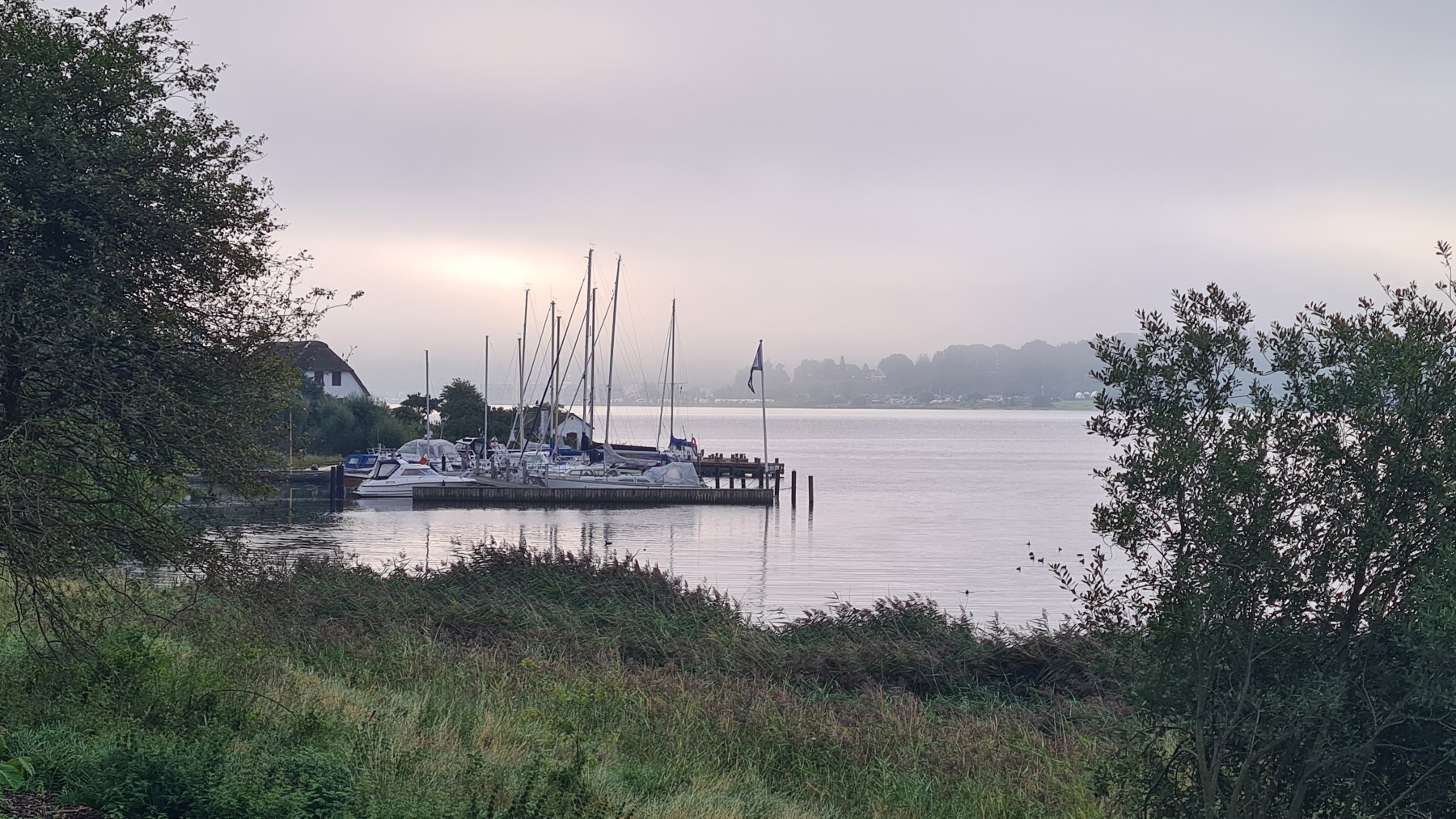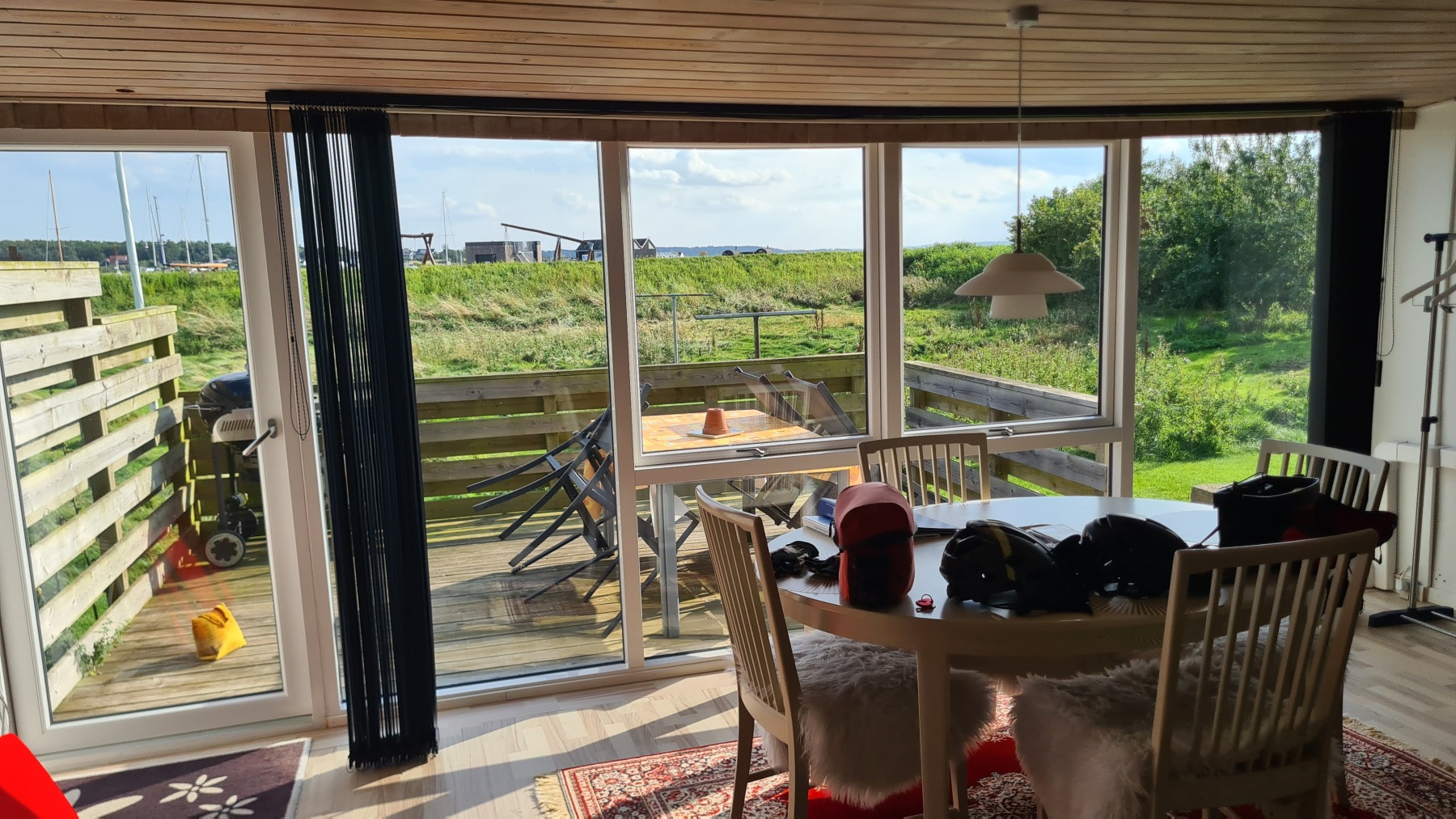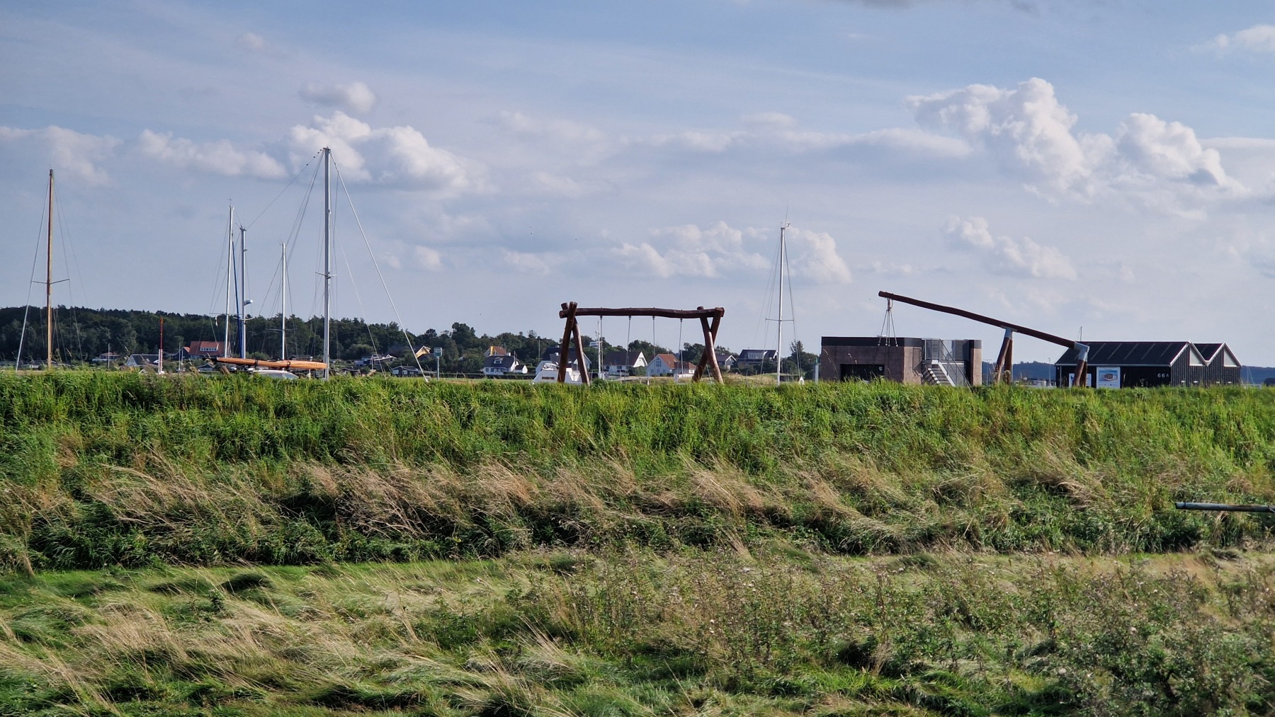 Nous sommes repartis et nous nous sommes installés un peu plus loin en bord du fjord pour chercher un autre hébergement et avons réservé un appartement à quelques mètres du ferry à cable d’Udbyhøj qui nous avait été conseillé ce matin. Nous avons modifié notre itinéraire en conséquence et avons bifurqué sur Eurovelo 12 après avoir quitté la route 32.