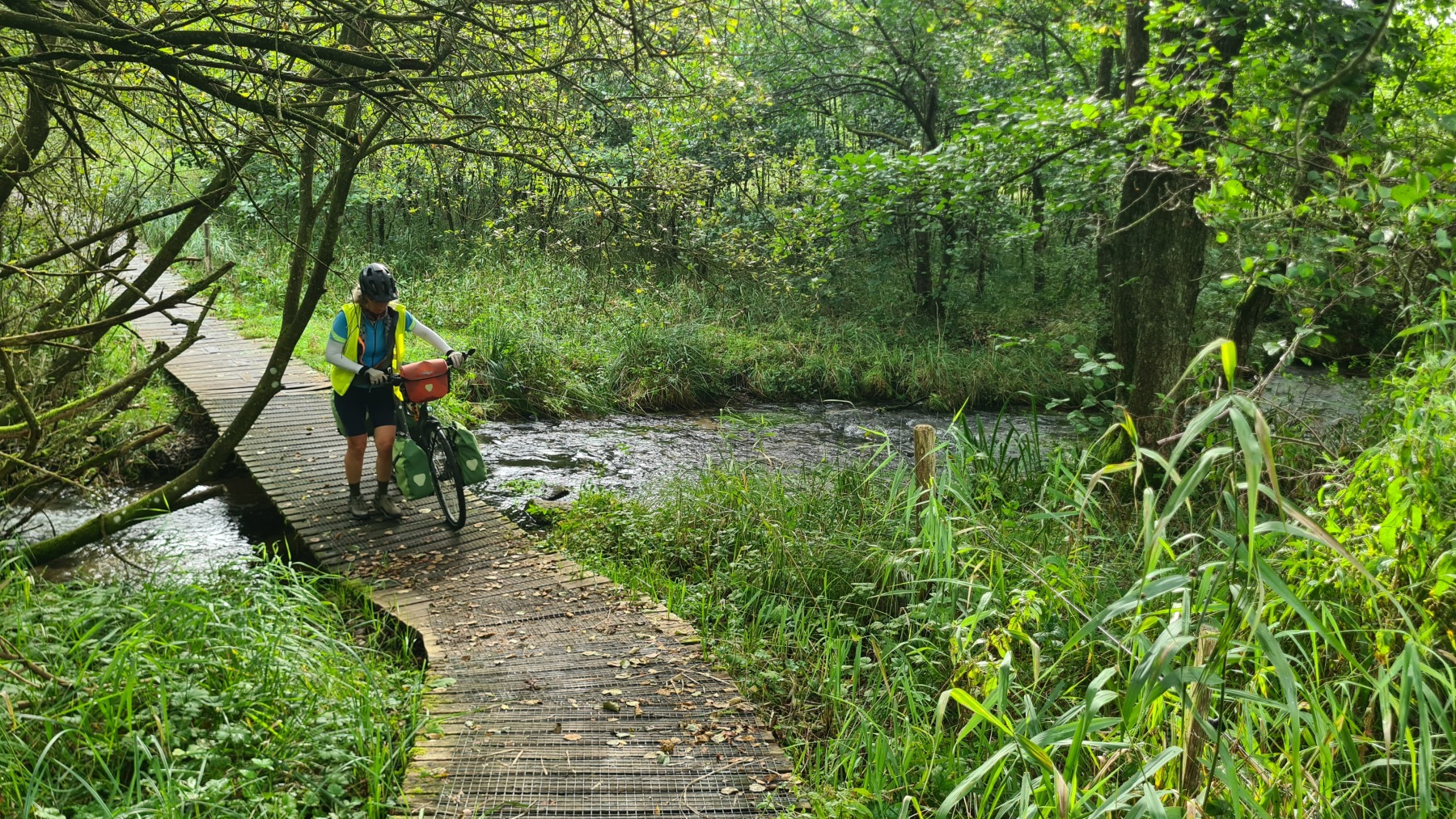 Aujourd’hui nous avons poursuivi notre tour du fjord Mariager sur la « Route 32« . Le parcours est vraiment très agréable mais même si la description du parcours annonce que « some of the route is gravel road, but most of it is tarmac road » nous ne nous attendions pas au passage par un sentier boueux et pentu que nous avons rencontré avant d’arriver au golfe d’Hobro.