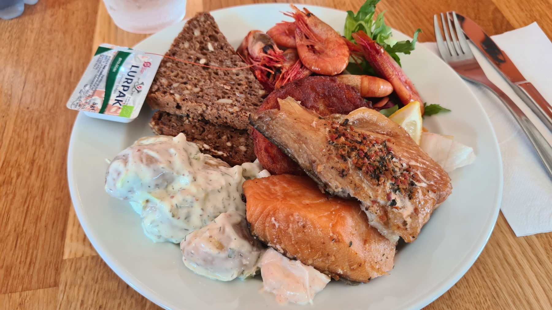 Nous avons ensuite filé vers les « Alpes de Fionie », des collines qui dominent la mer au dessus de Faaborg où nous avons fait une petite randonnée qui nous a permis de découvrir de très beaux points de vue. Après avoir parcouru les rues colorées de Faaborg nous avons déjeuné dans le café d’une fumerie de poissons et nous sommes repartis plein nord.