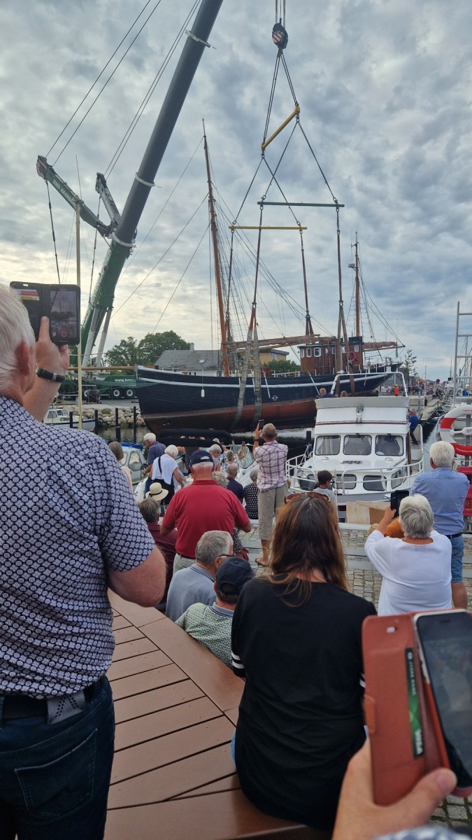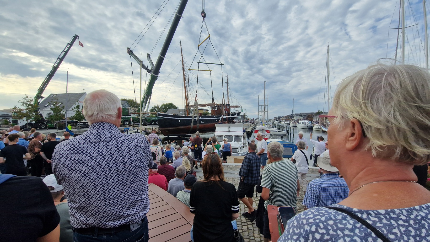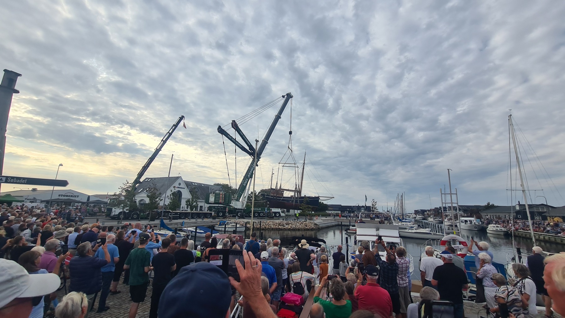 Nous avons trouvé Bogense en pleine effervescence : le Castor venait de prendre sa retraite et une grue était en train de le sortir de l’eau.