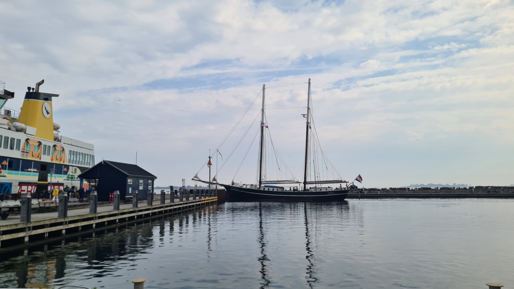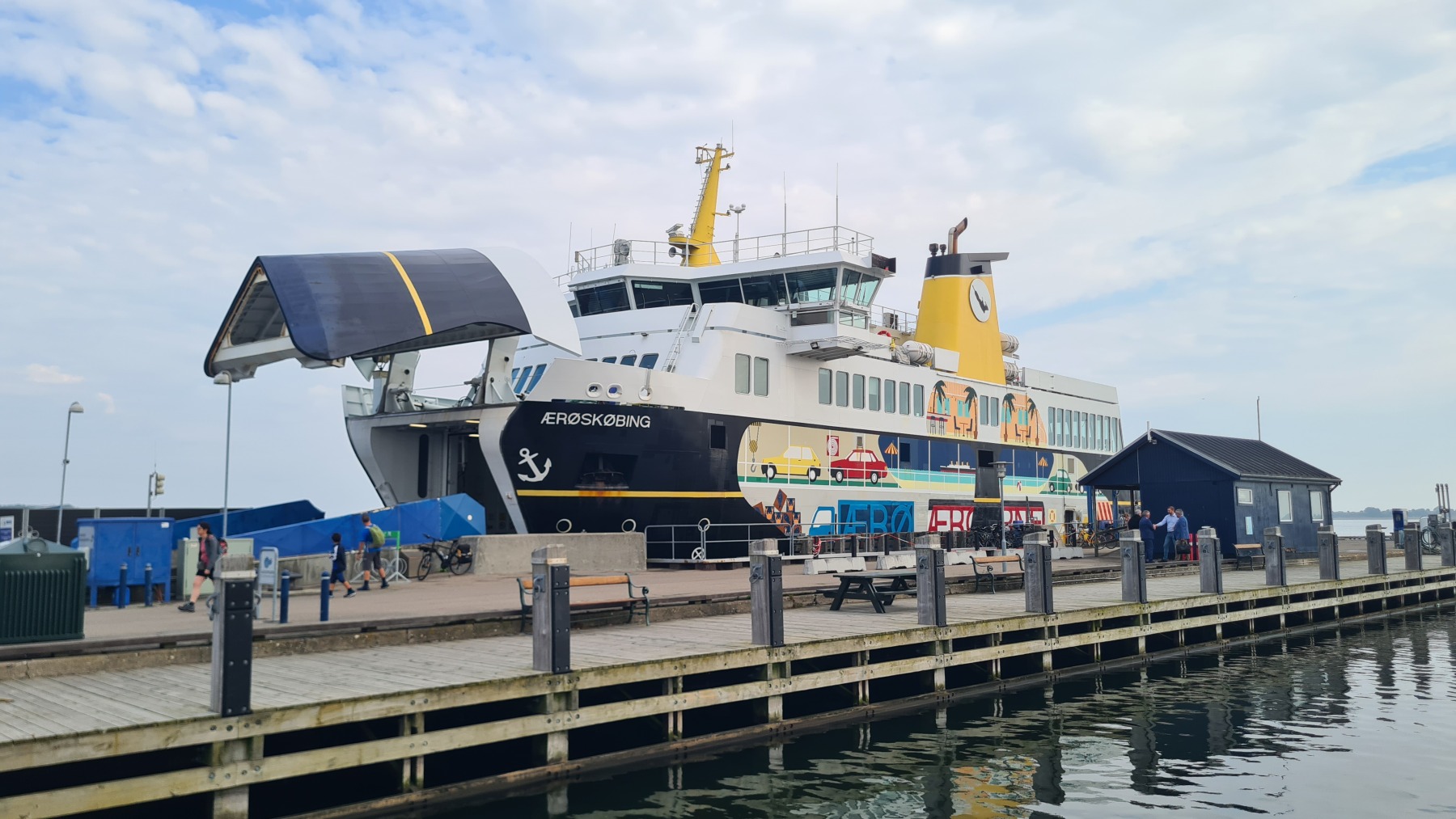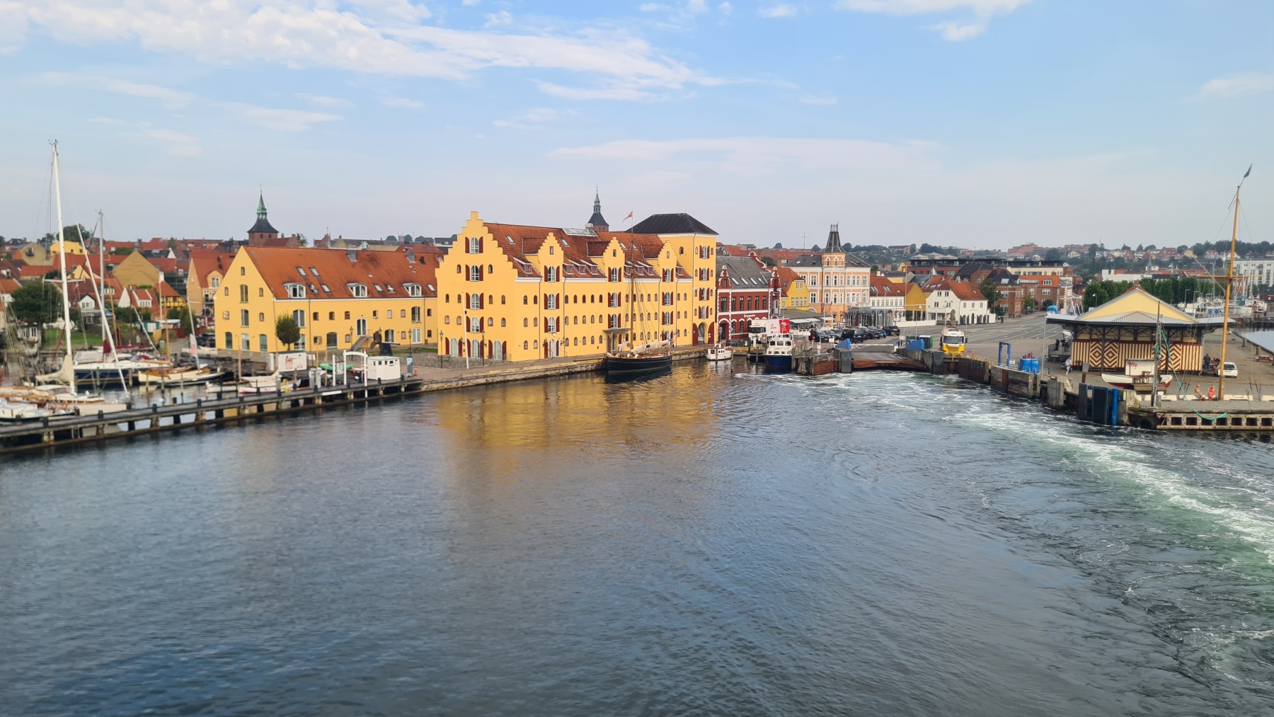 Ce matin nous sommes revenus sur nos pas pour prendre le ferry à Svendborg. Nous aurions sans doute pu prendre un hébergement plus proche du ferry mais quand je l’ai réservé je pensais venir directement de chez Pierre et Lena sans suivre la côte et passer par Svendborg et quand j’ai modifié notre itinéraire il était trop tard pour annuler…