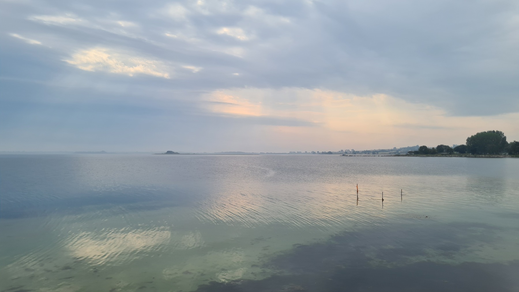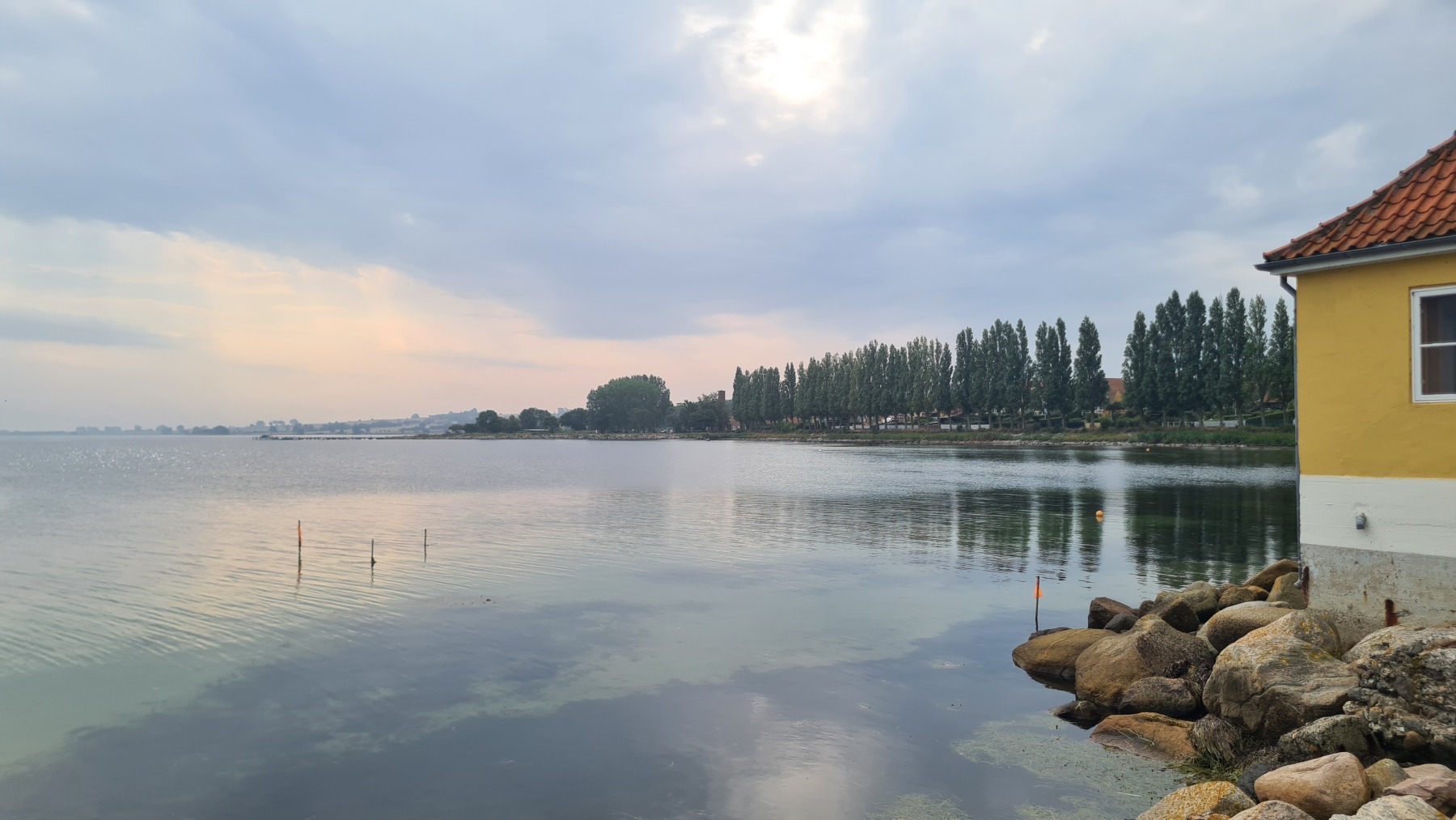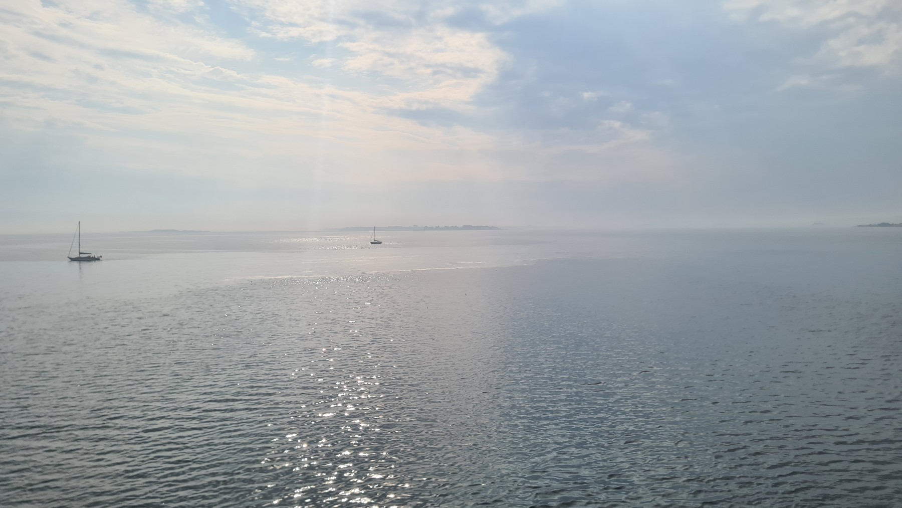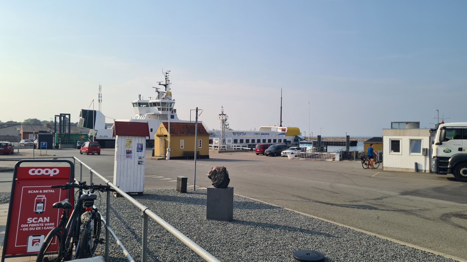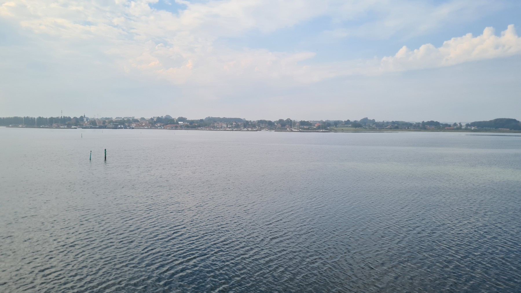 Le ferry nous a conduit sur l’île d’Ærø sur une mer d’huile et sous un soleil voilé.