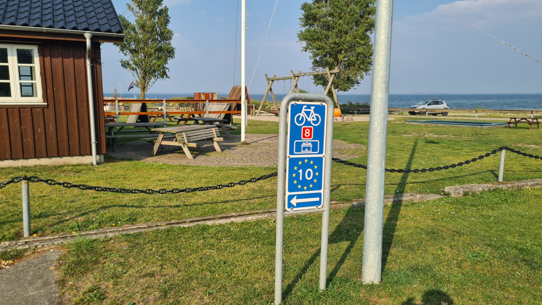 La traversée sur le ferry et celle de l’île sont sur le parcours d’Eurovelo 10, la « véloroute de la Baltique » que nous avions croisé à Gdansk. Sur l’île elle fait au plus court et rejoint directement le port de Søby en moins de 20 km. Nous voulions mieux profiter de l’île et avons opté pour un tour quasi complet.