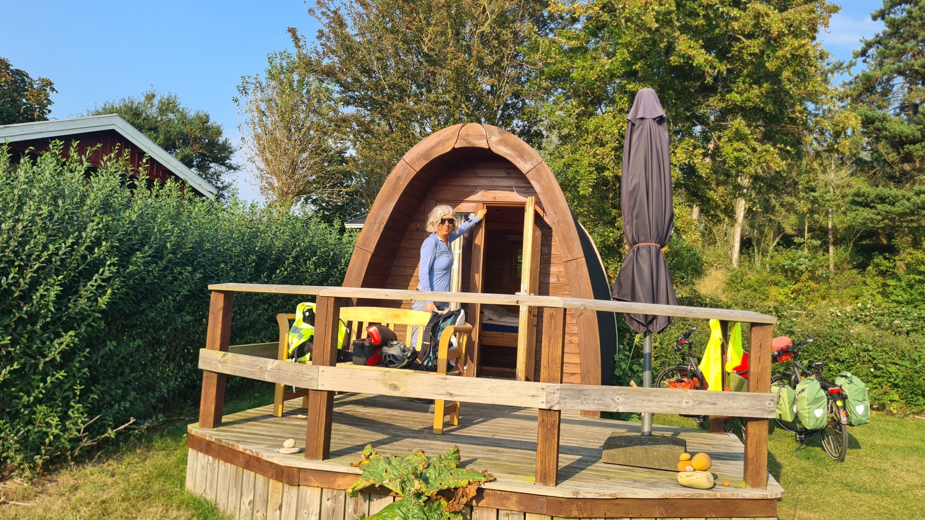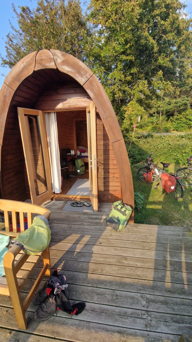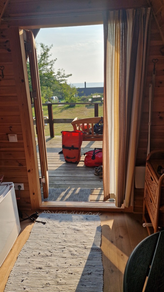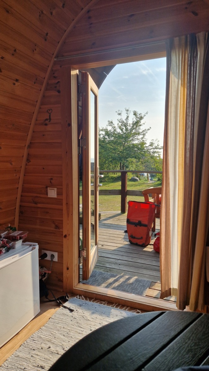 Ce soir nous dormons dans un « hobbit pod » au camping de Søby avec vue sur mer et accès direct à la plage où je me suis baigné en arrivant.