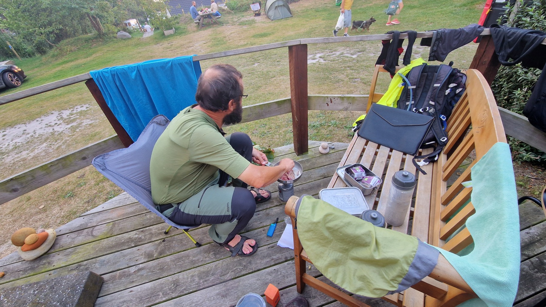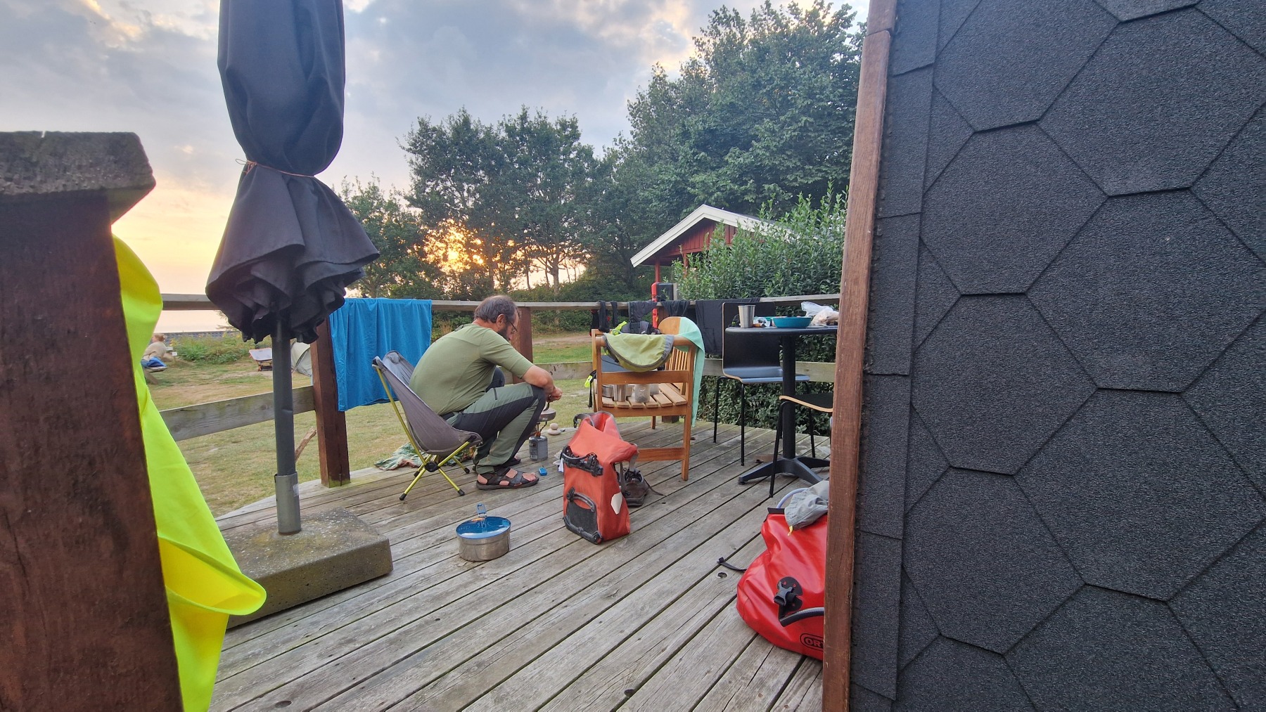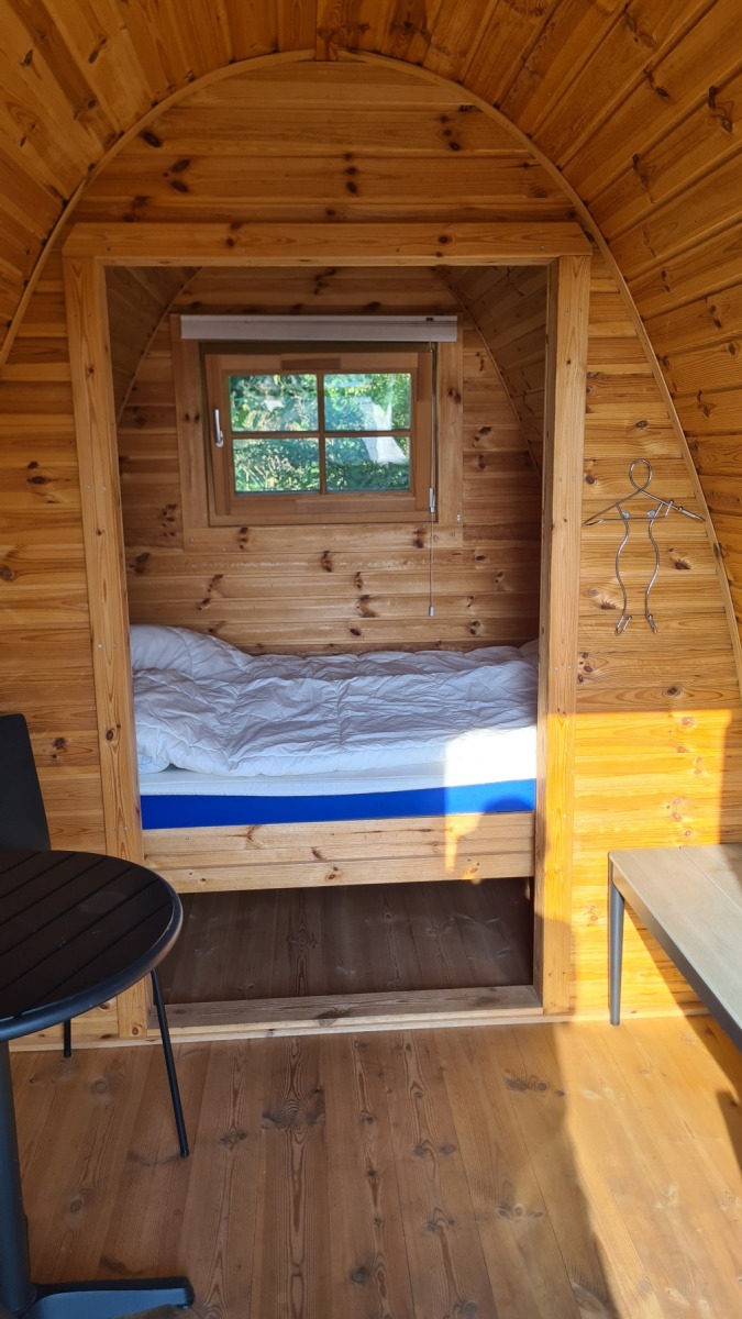 Ce soir nous dormons dans un « hobbit pod » au camping de Søby avec vue sur mer et accès direct à la plage où je me suis baigné en arrivant.