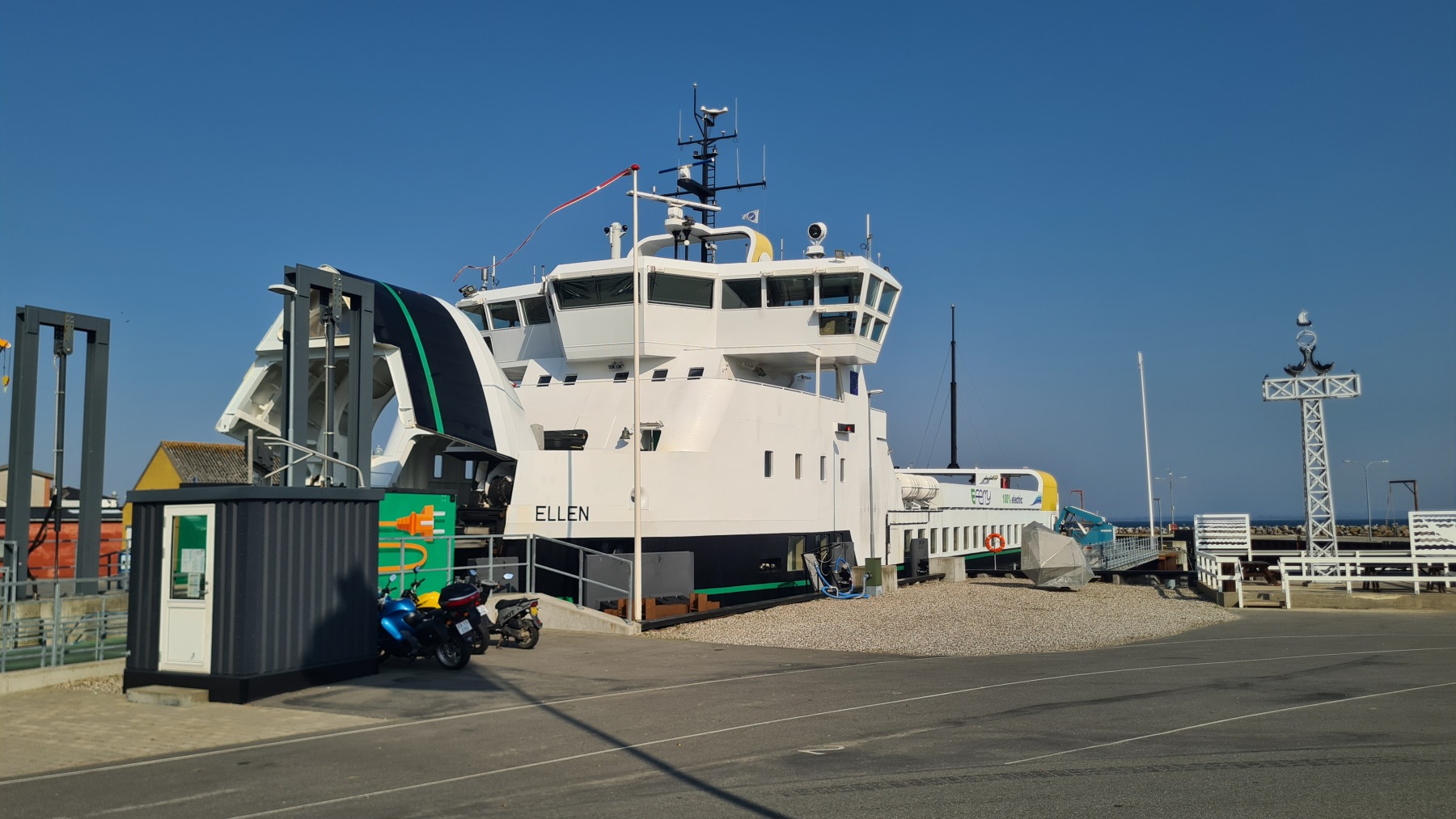 La traversée nous a ramené sur le continent que nous avions quitté pour nous rendre dans l’île de Fionie et nous avons débarqué au port de Fynshav. Le ferry, plus petit que celui de la veille, était « 100% électrique ».