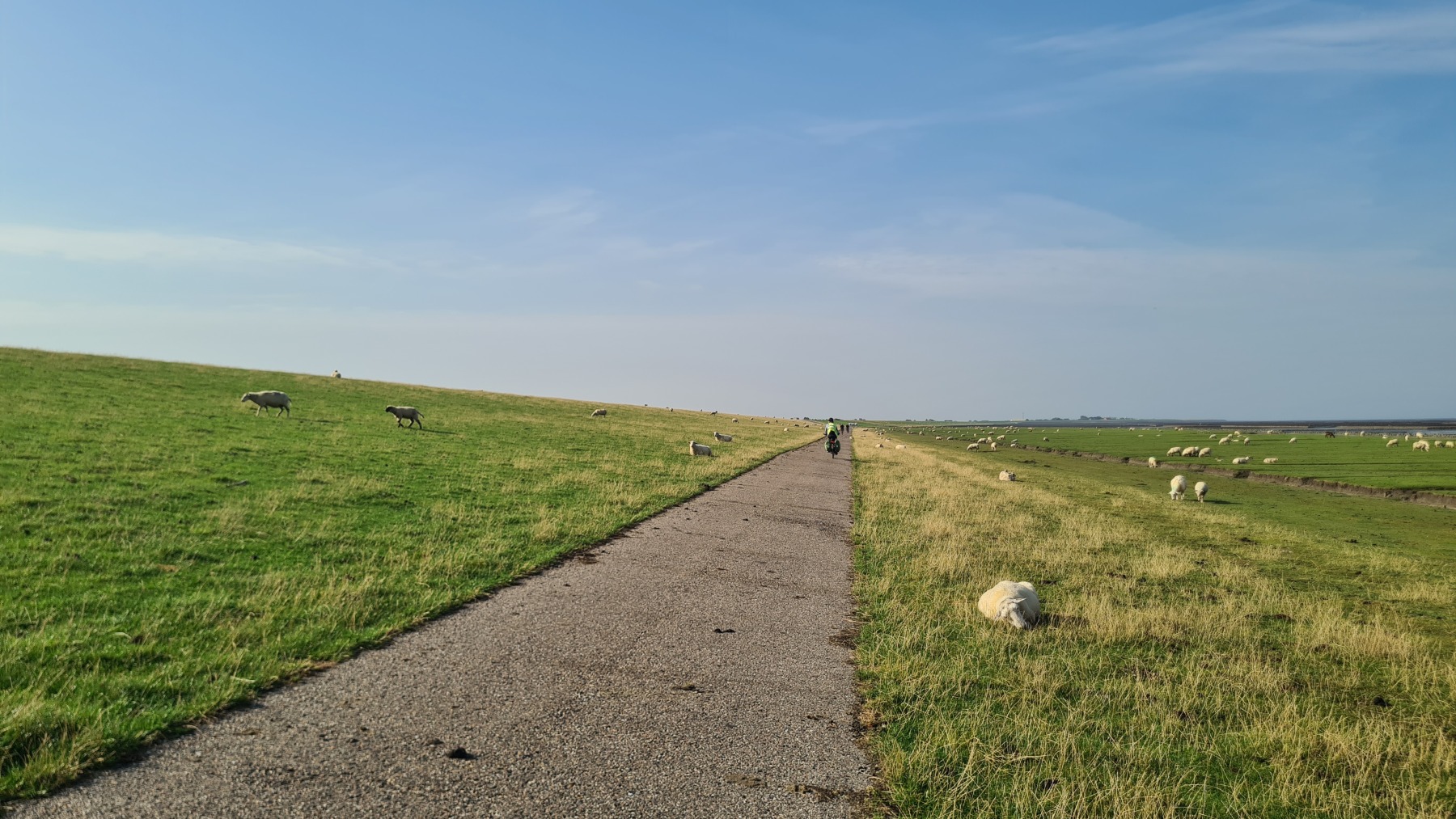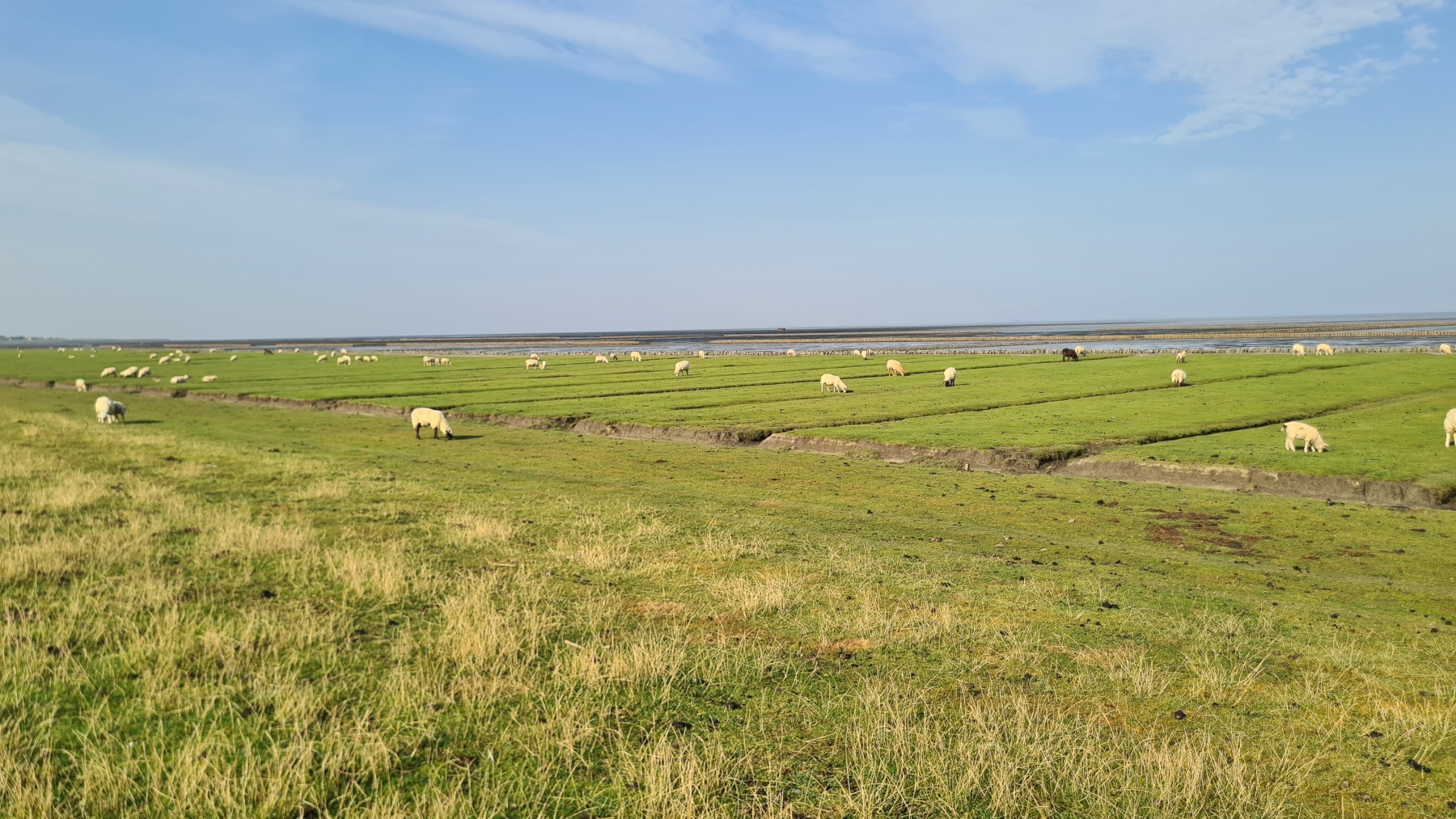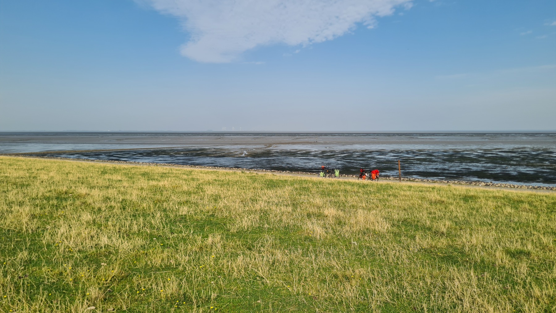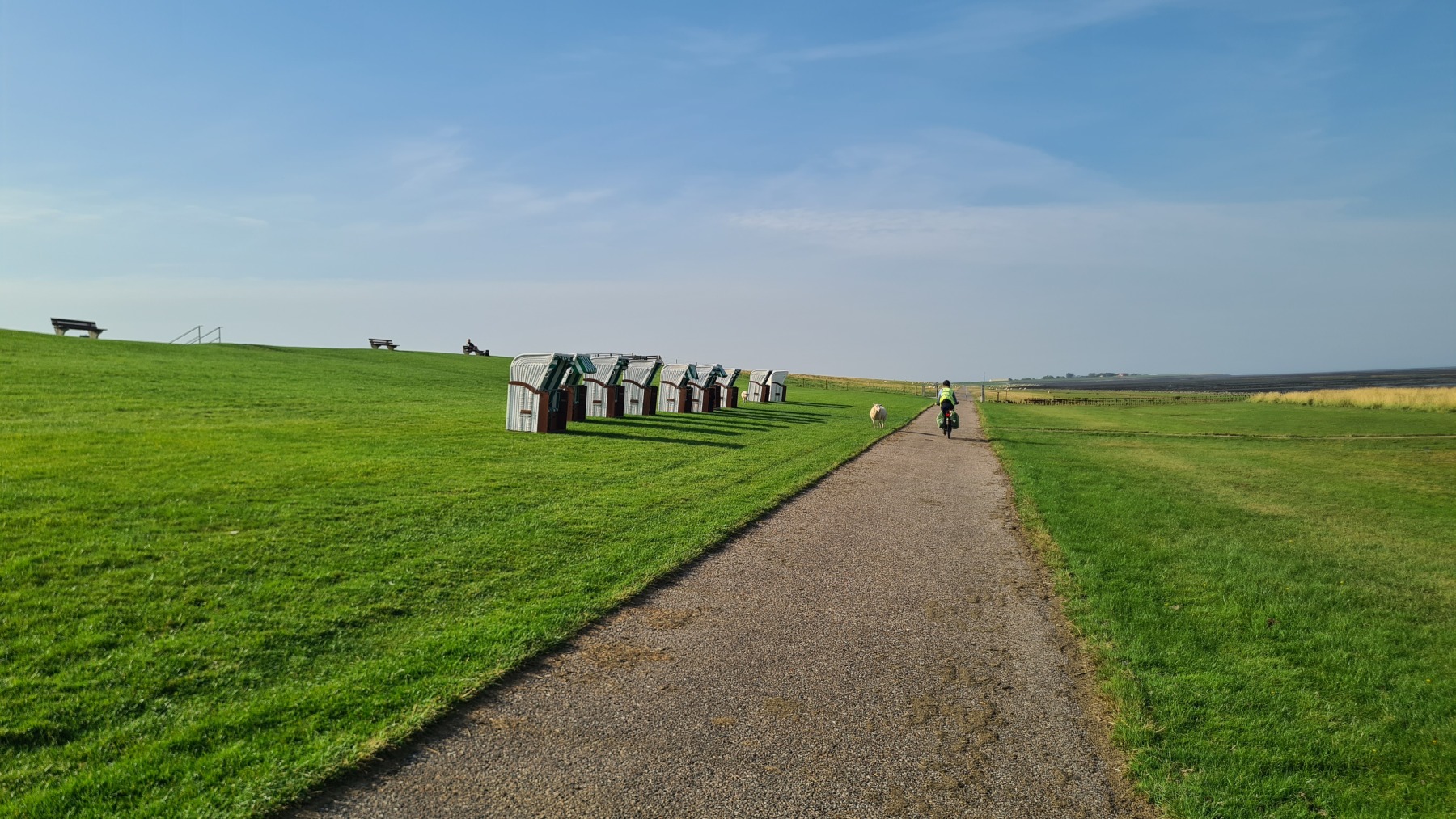 Ce matin nous avons rejoint Eurovelo 12 et la côte de la mer des Wadden que je connaissais déjà aux Pays-Bas mais pas en Allemagne et nous avons fait le tour de la presqu’île de Nordstrand.