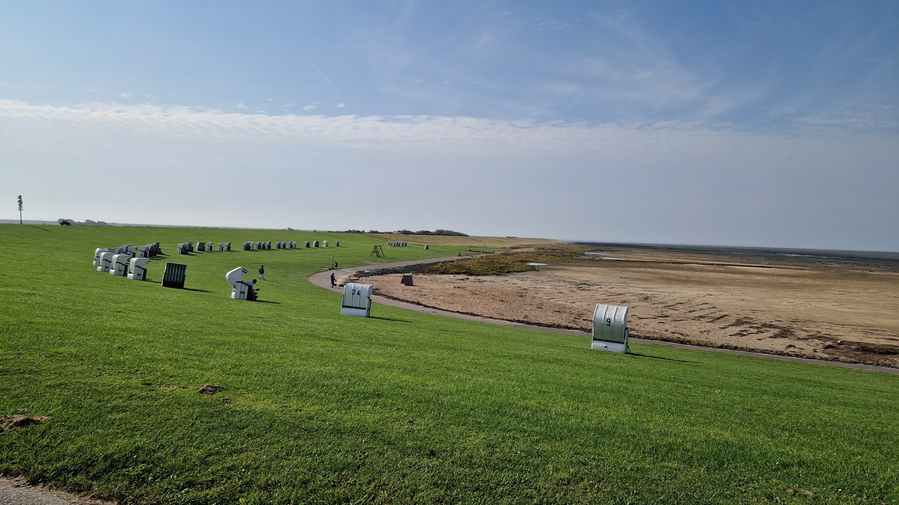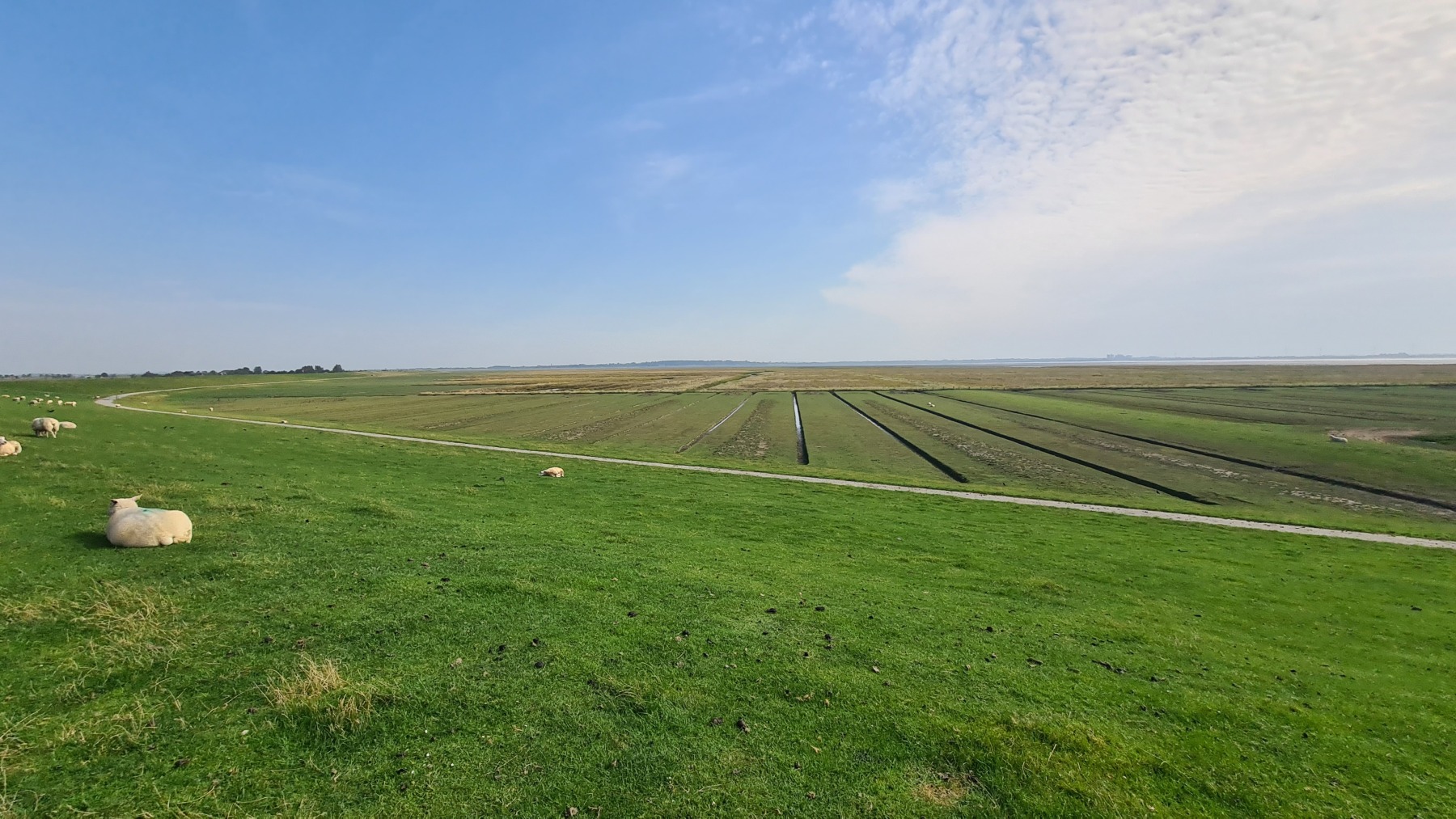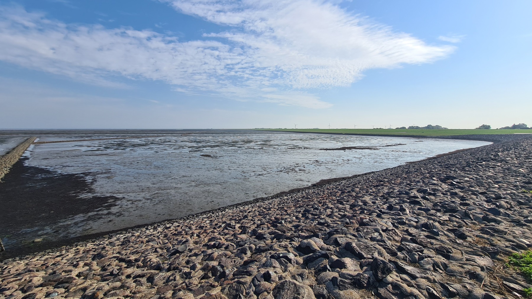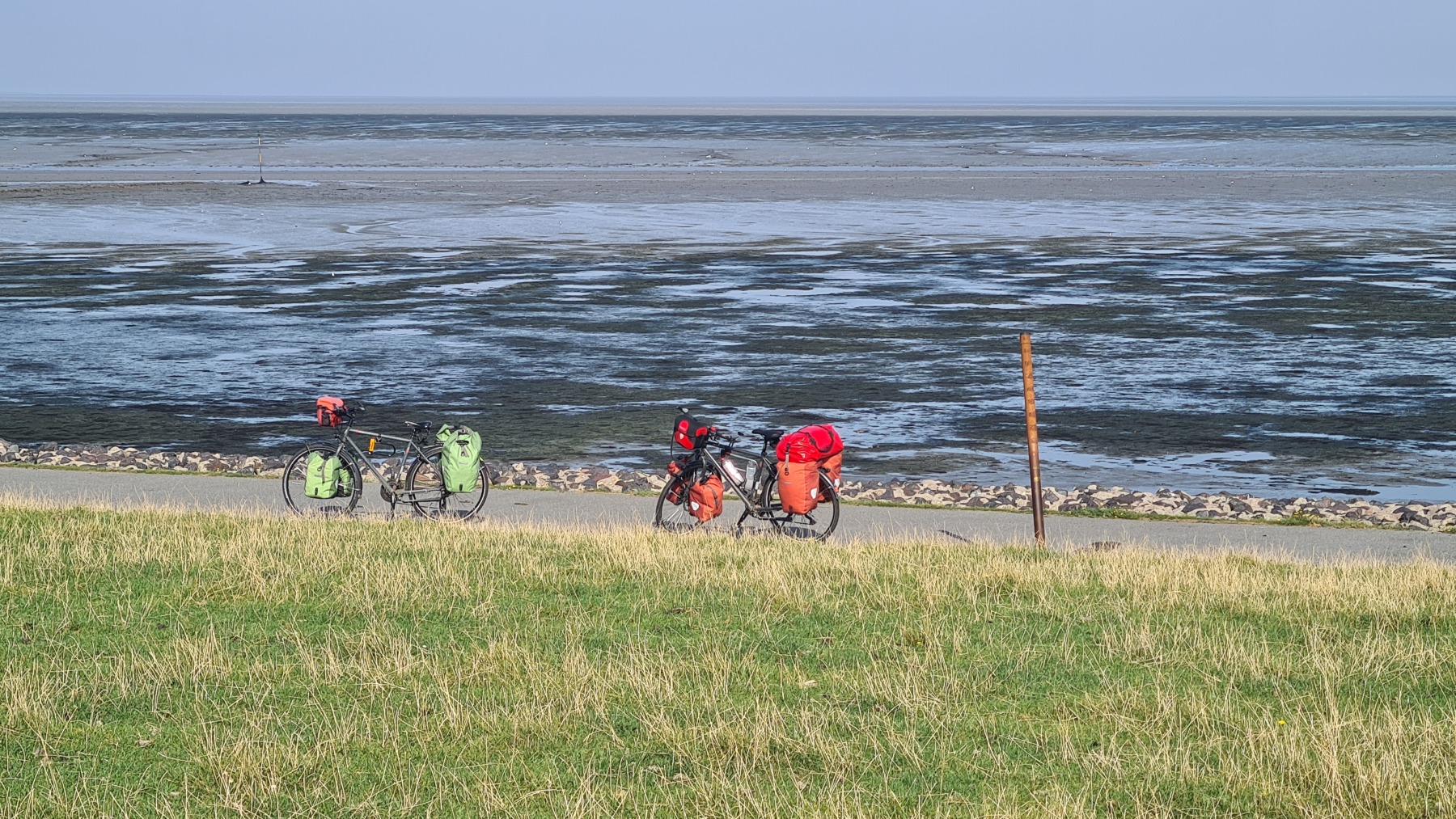 Ce matin nous avons rejoint Eurovelo 12 et la côte de la mer des Wadden que je connaissais déjà aux Pays-Bas mais pas en Allemagne et nous avons fait le tour de la presqu’île de Nordstrand.