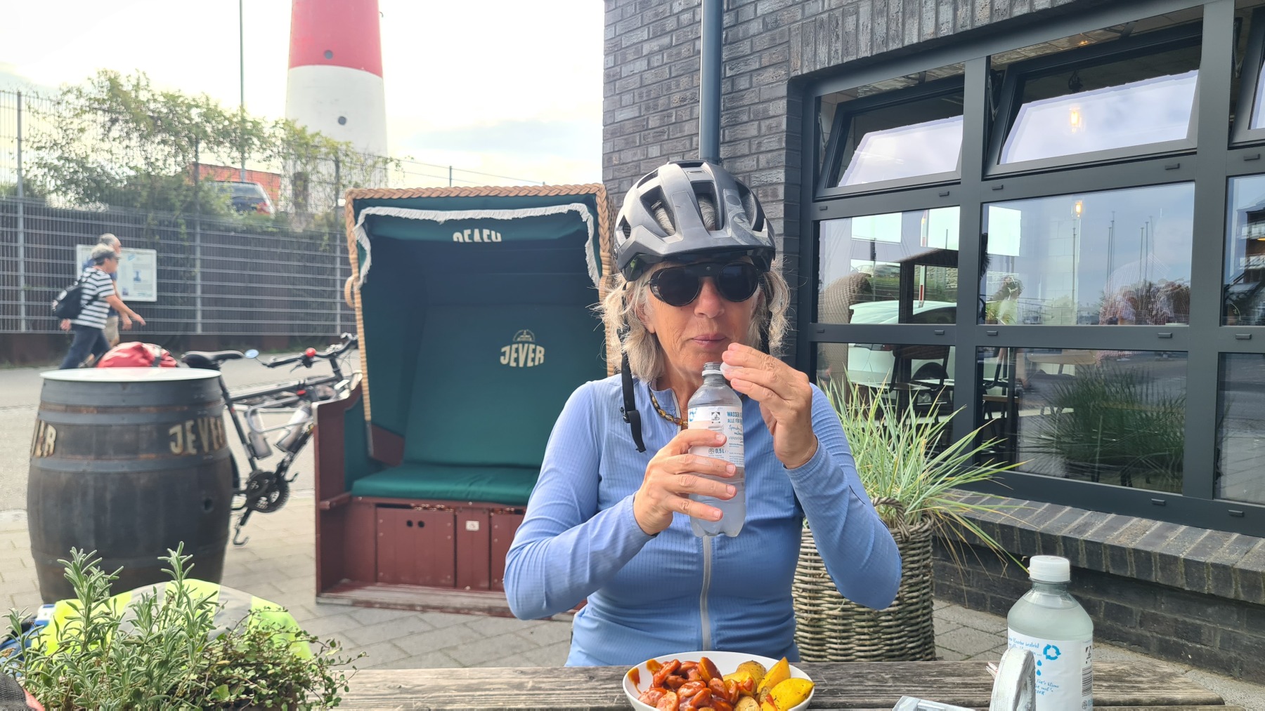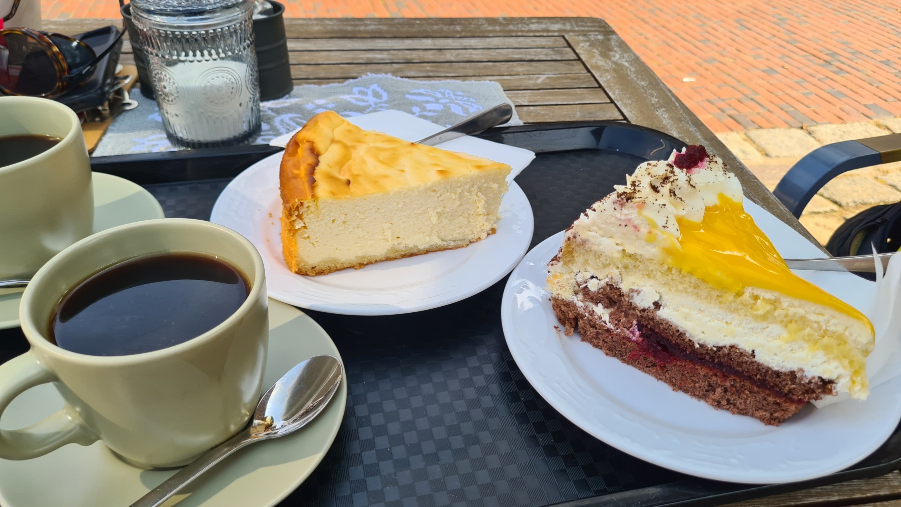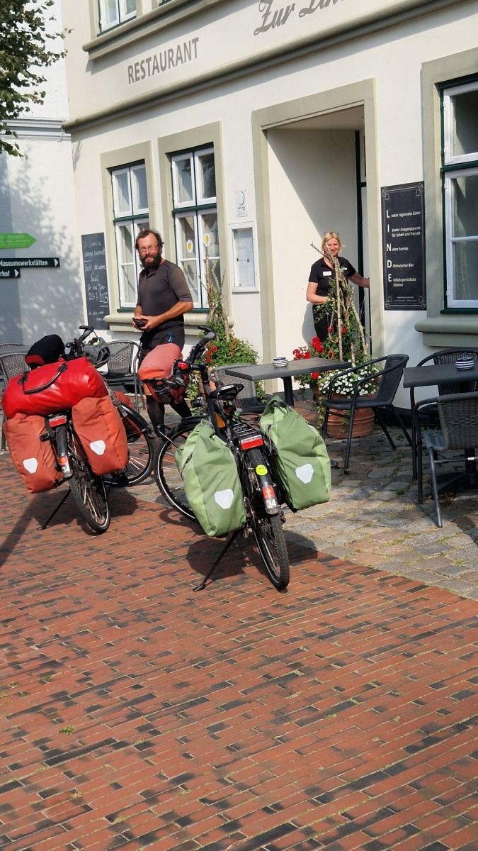 Nous avons déjeuné à Büsum d’un traditionnel currywurst que nous avons eu un peu de mal à digérer et avons suivi Eurovelo 12 jusqu’à Meldorf où nous passons la nuit. L’étape étant courte nous sommes arrivés en avance et avons pris un dessert avant de rejoindre l’hôtel.
