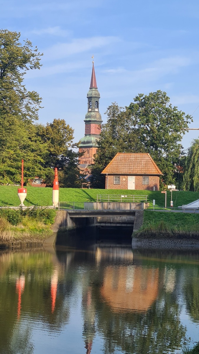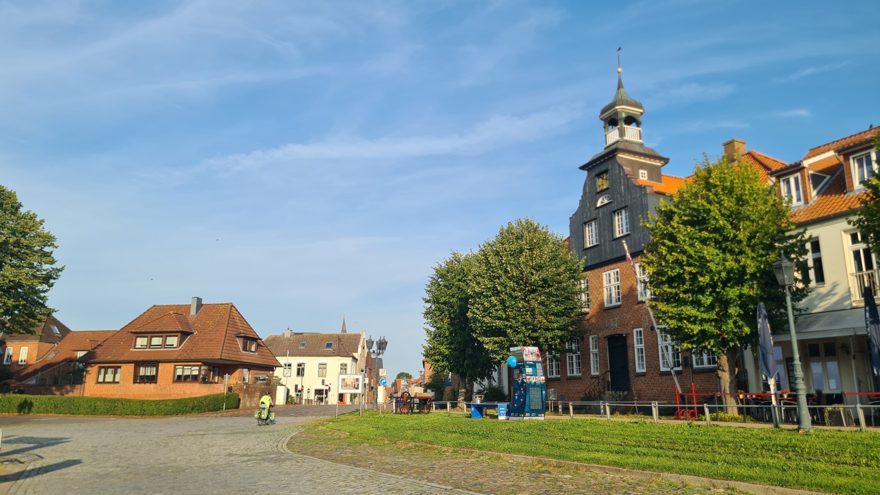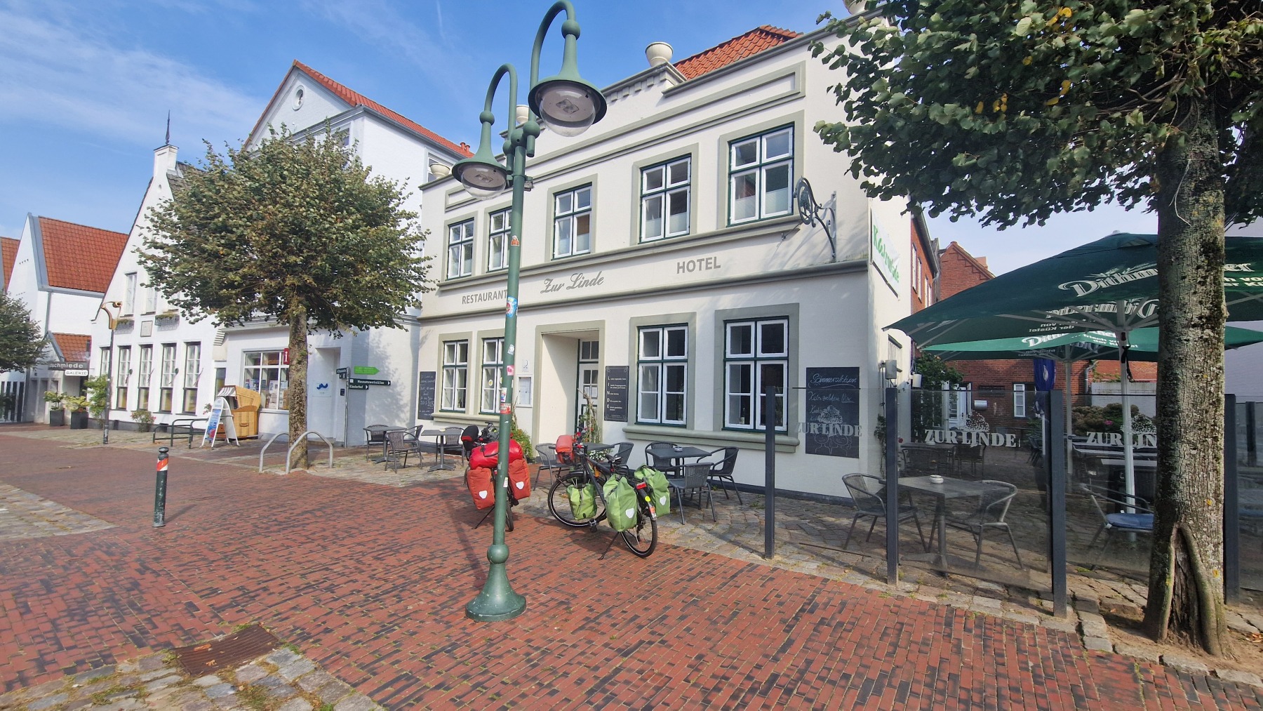 Nous avons déjeuné à Büsum d’un traditionnel currywurst que nous avons eu un peu de mal à digérer et avons suivi Eurovelo 12 jusqu’à Meldorf où nous passons la nuit. L’étape étant courte nous sommes arrivés en avance et avons pris un dessert avant de rejoindre l’hôtel.