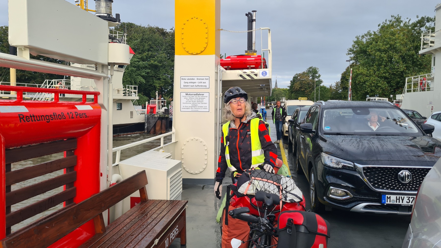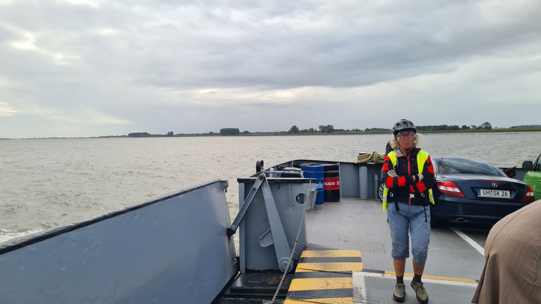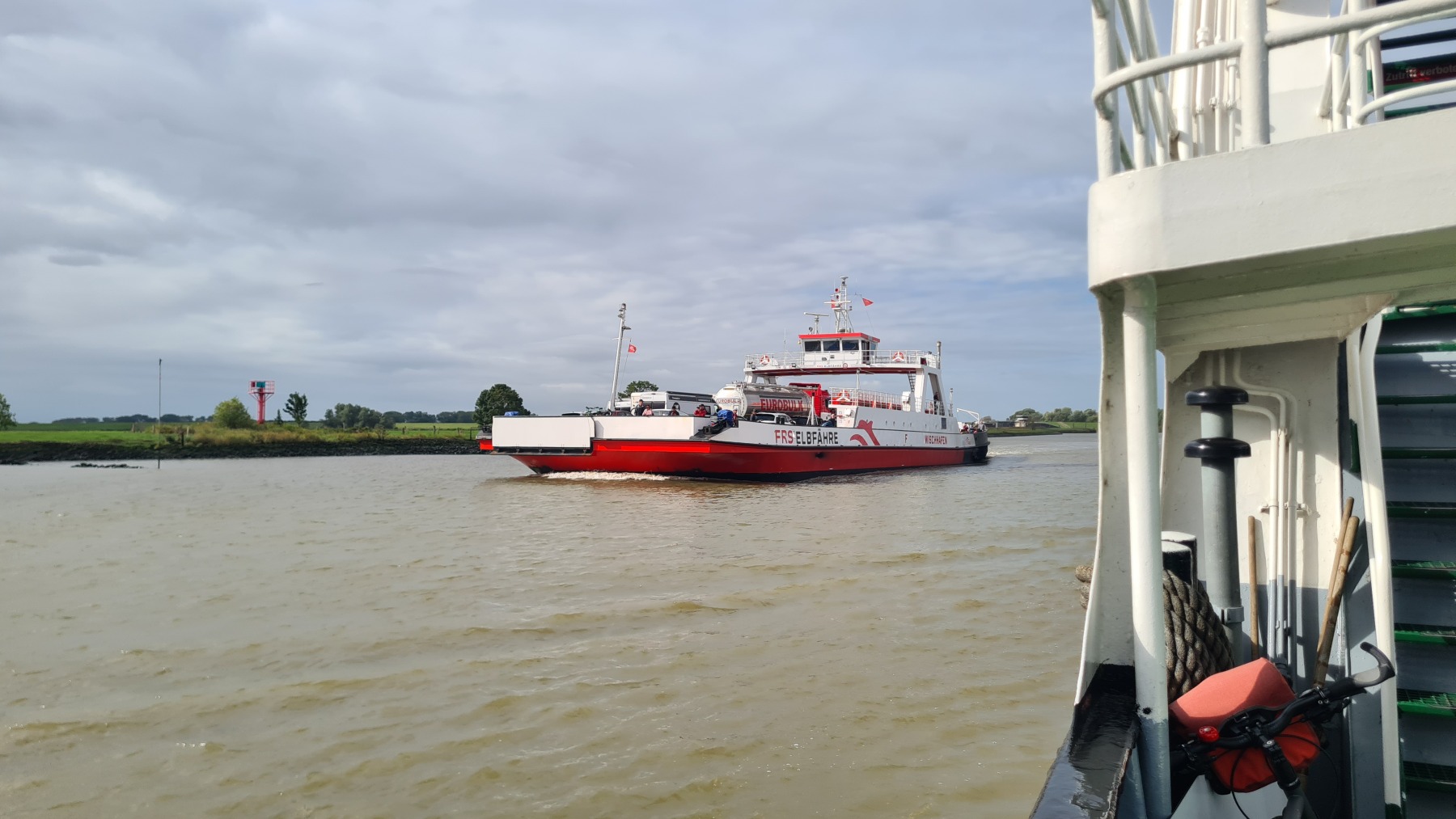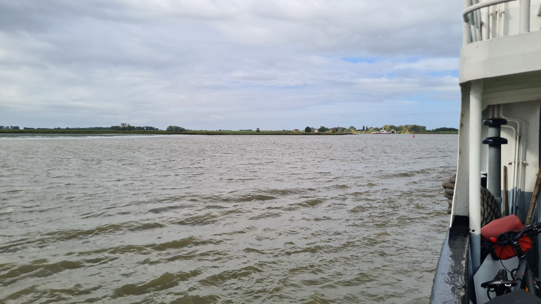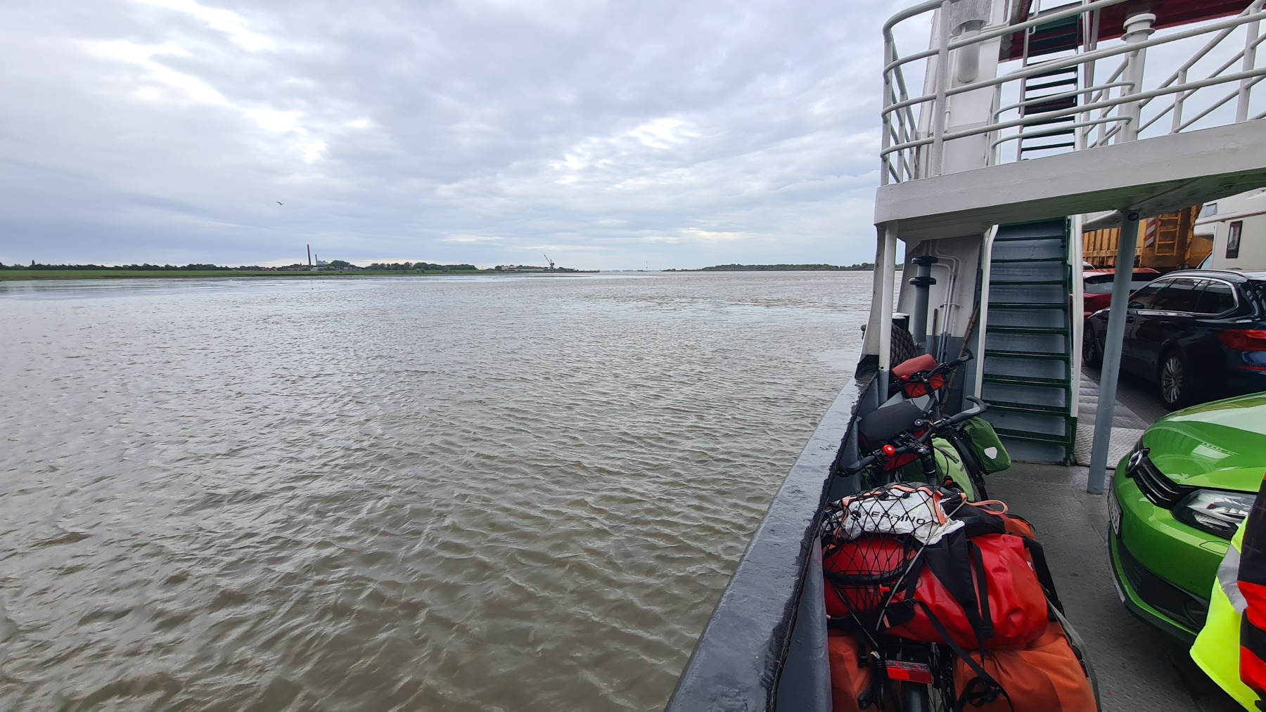 Ce matin nous avons remonté l’Elbe en suivant Eurovelo 12 jusqu’à Glückstadt pour prendre le ferry et traverser le fleuve. Nous avons ensuite rejoint Eurovelo 12 (qui fait un détour jusqu’à Hembourg) à Osten où nous avons déjeuné.