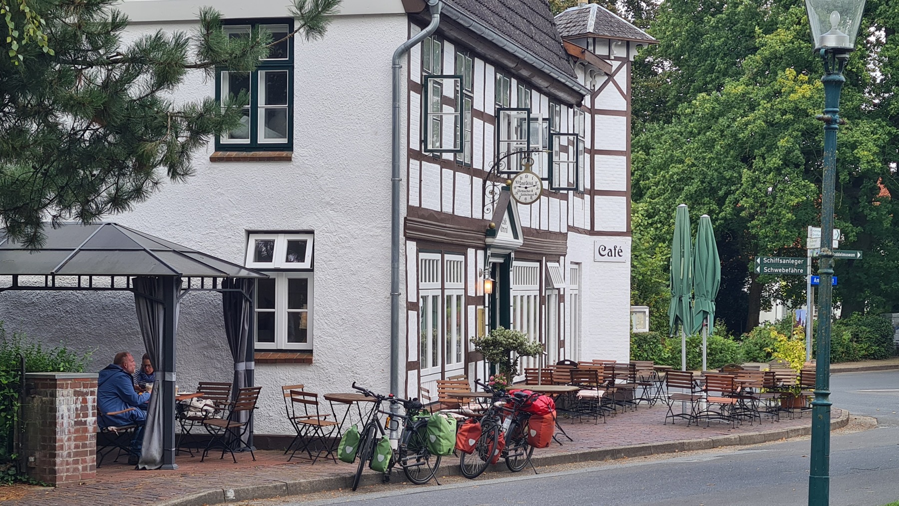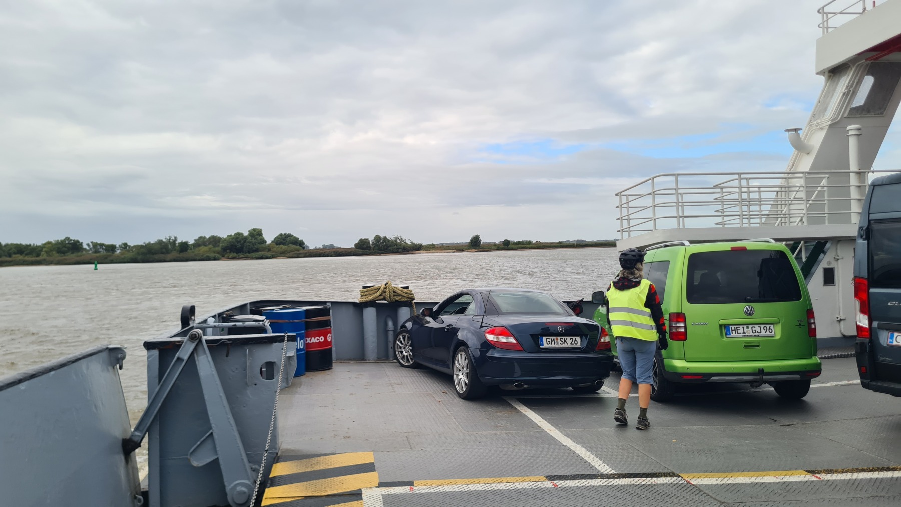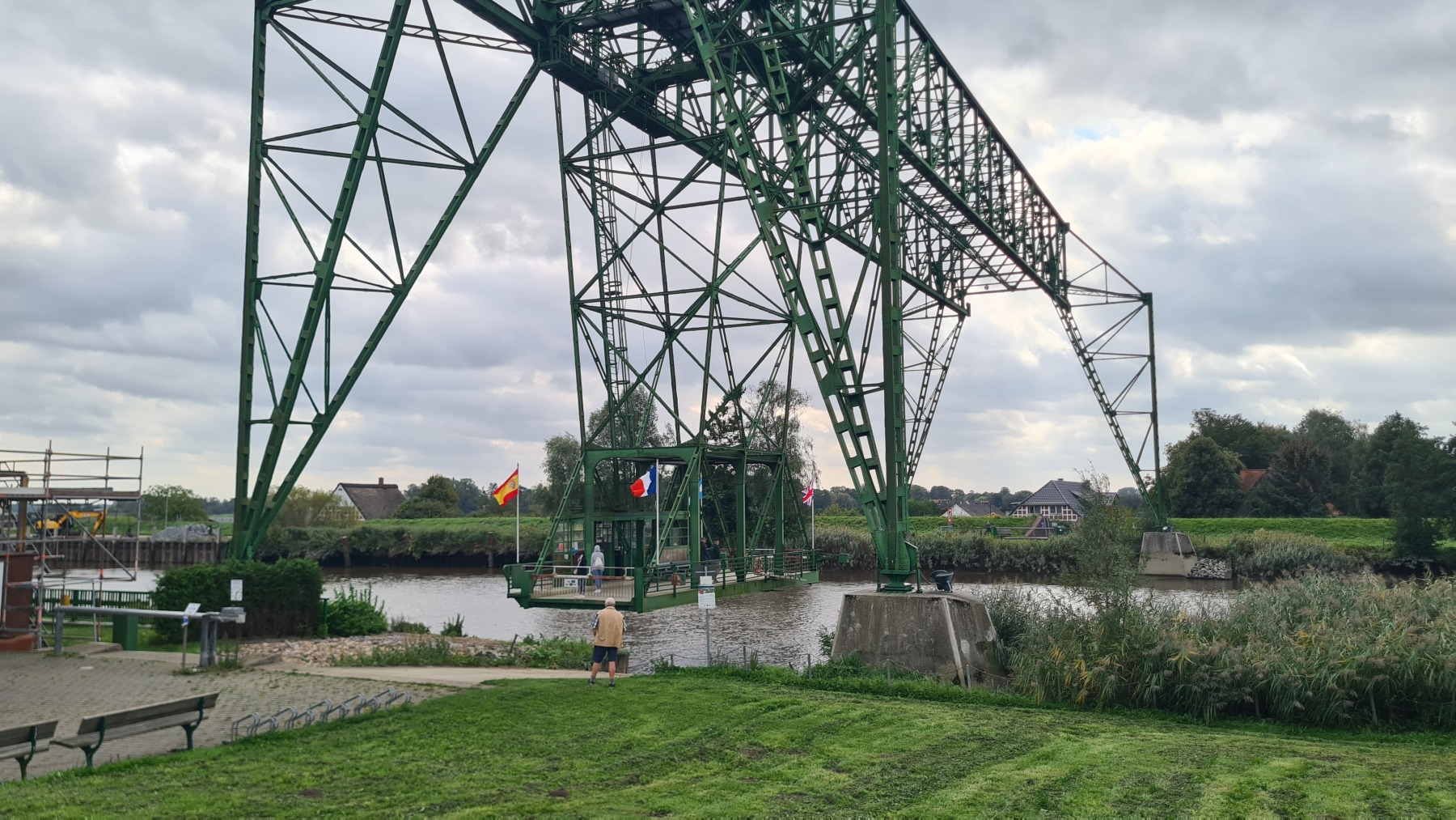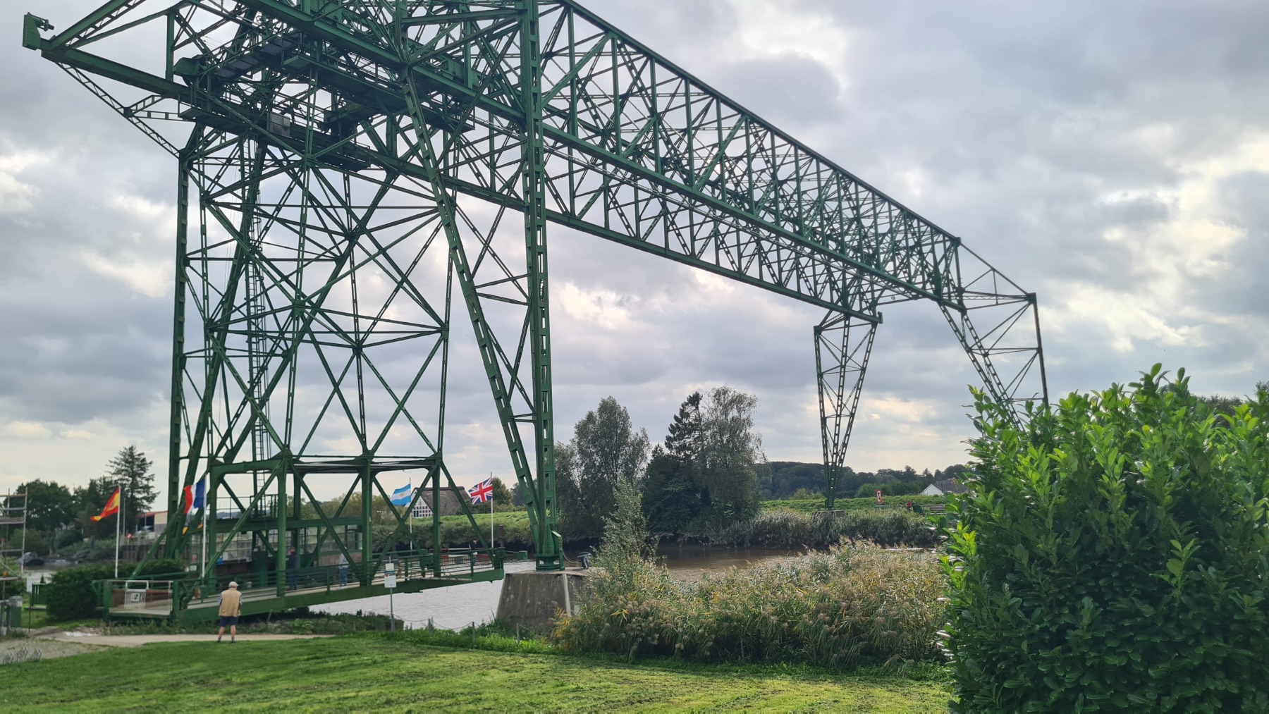 Ce matin nous avons remonté l’Elbe en suivant Eurovelo 12 jusqu’à Glückstadt pour prendre le ferry et traverser le fleuve. Nous avons ensuite rejoint Eurovelo 12 (qui fait un détour jusqu’à Hembourg) à Osten où nous avons déjeuné.