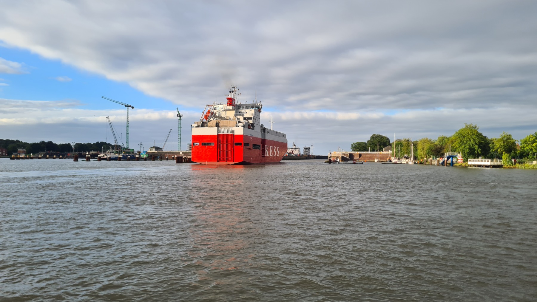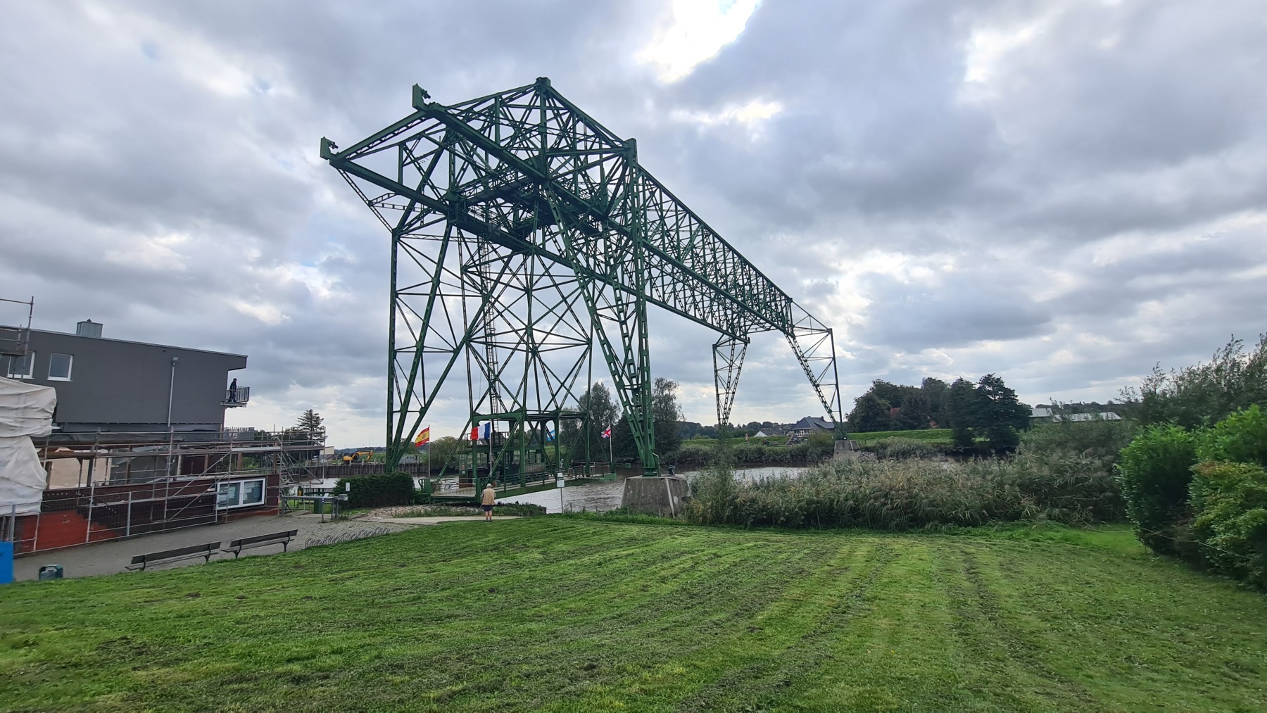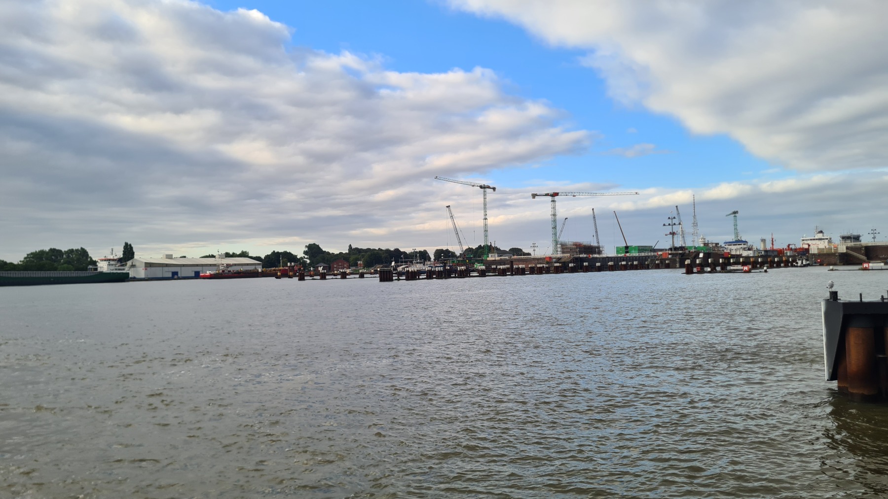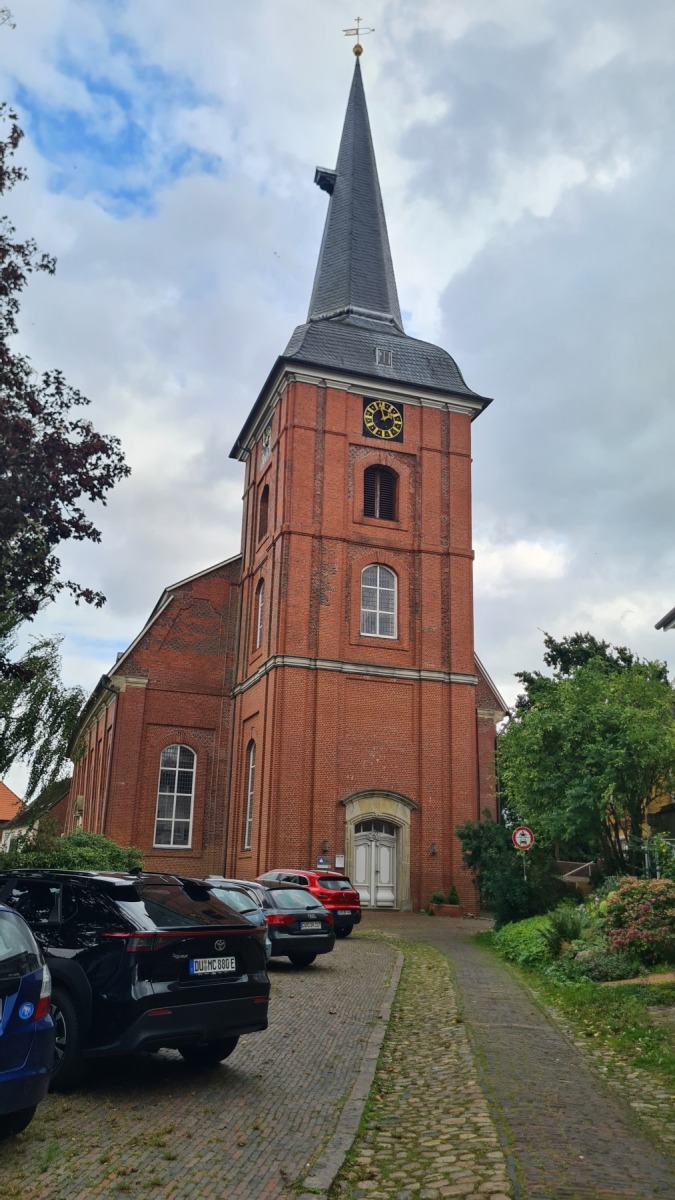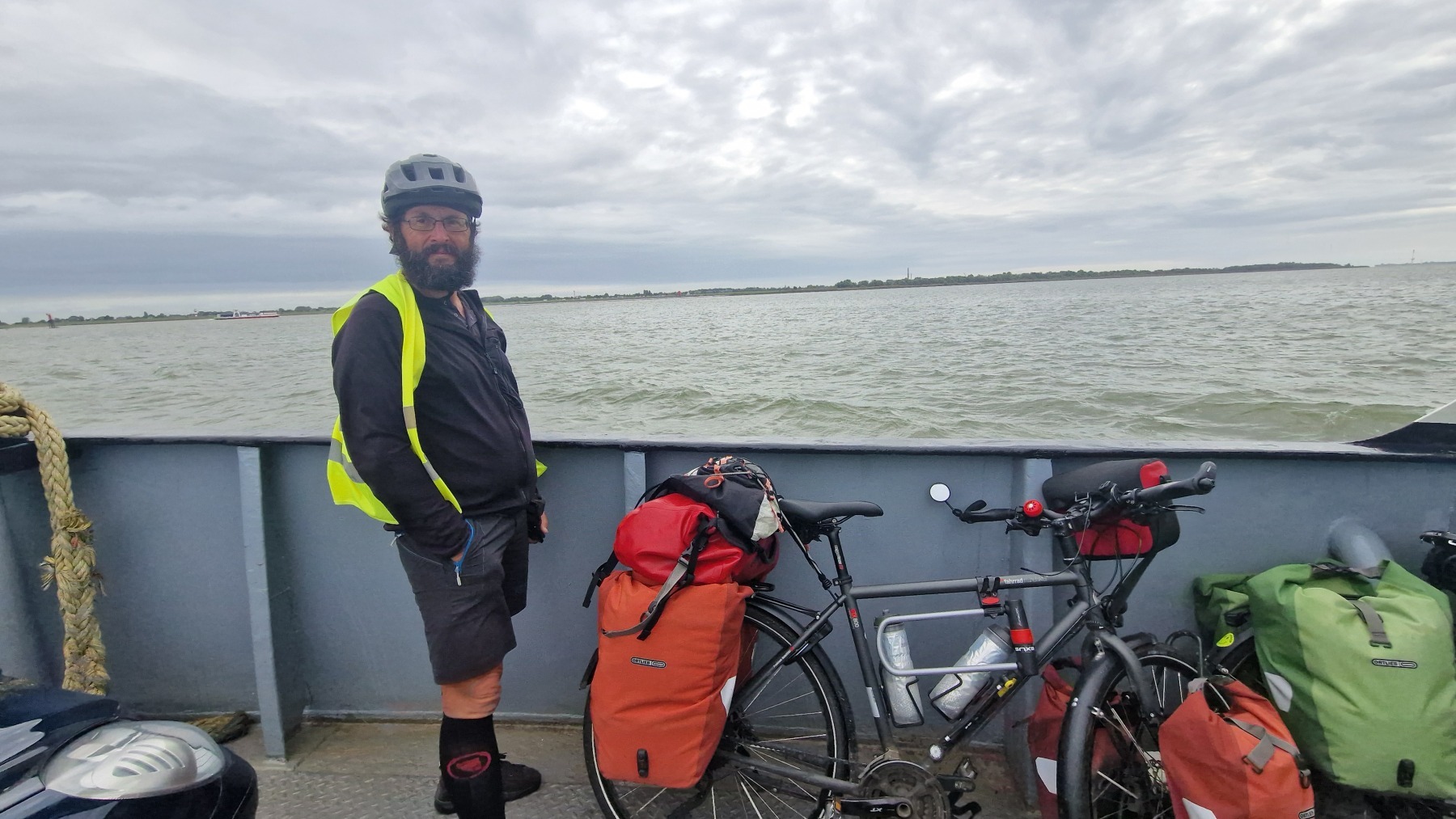 Ce matin nous avons remonté l’Elbe en suivant Eurovelo 12 jusqu’à Glückstadt pour prendre le ferry et traverser le fleuve. Nous avons ensuite rejoint Eurovelo 12 (qui fait un détour jusqu’à Hembourg) à Osten où nous avons déjeuné.