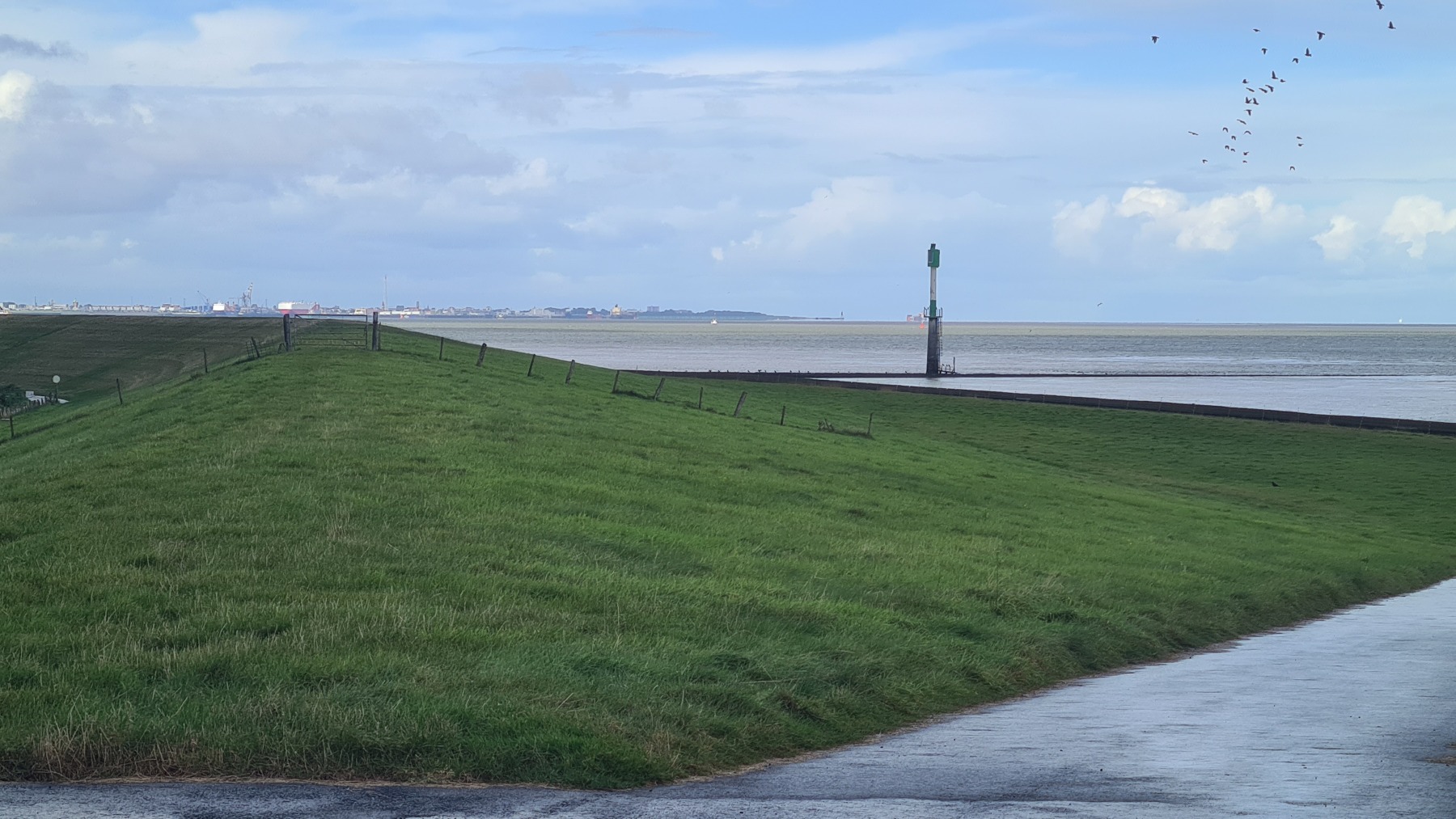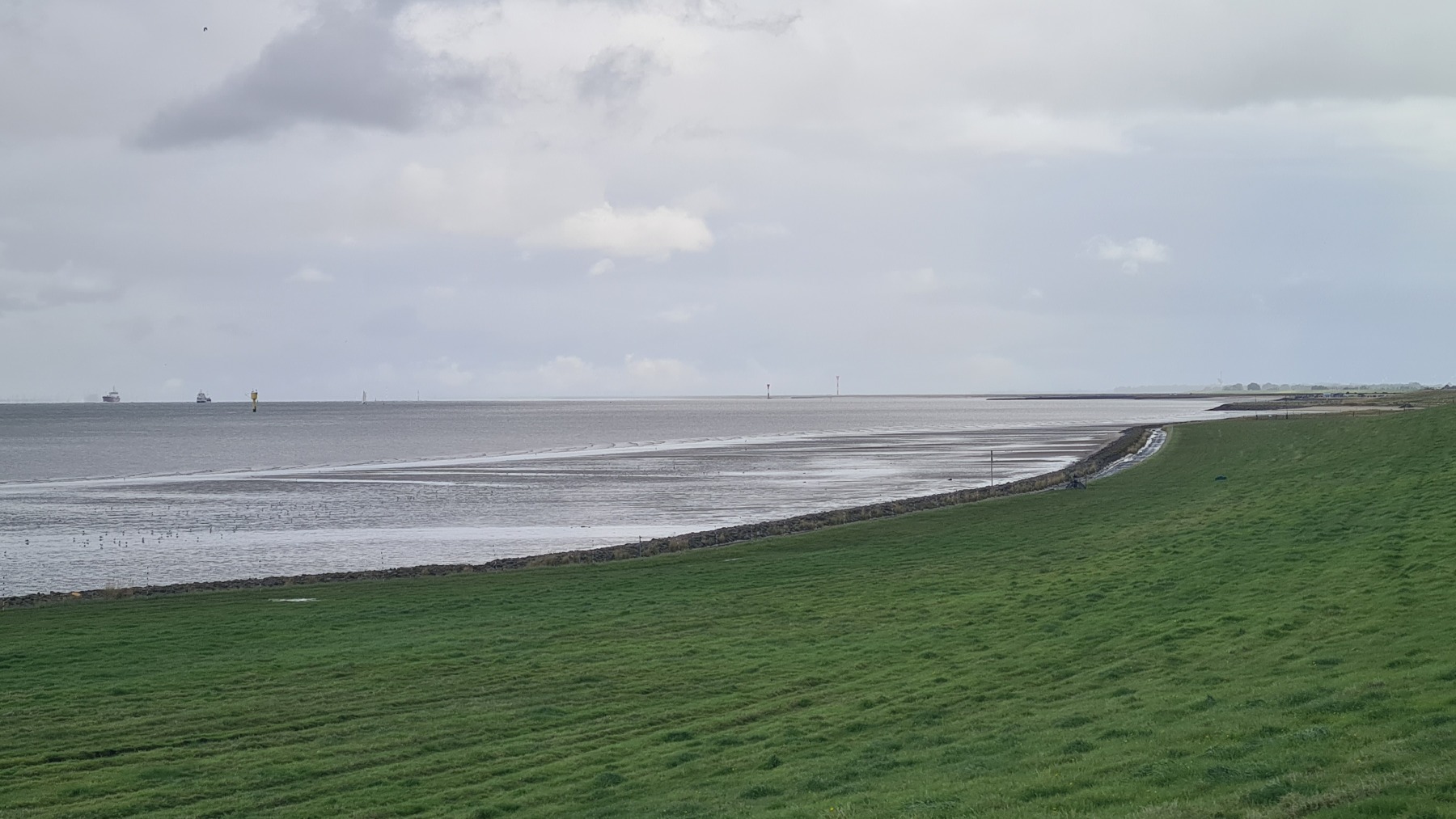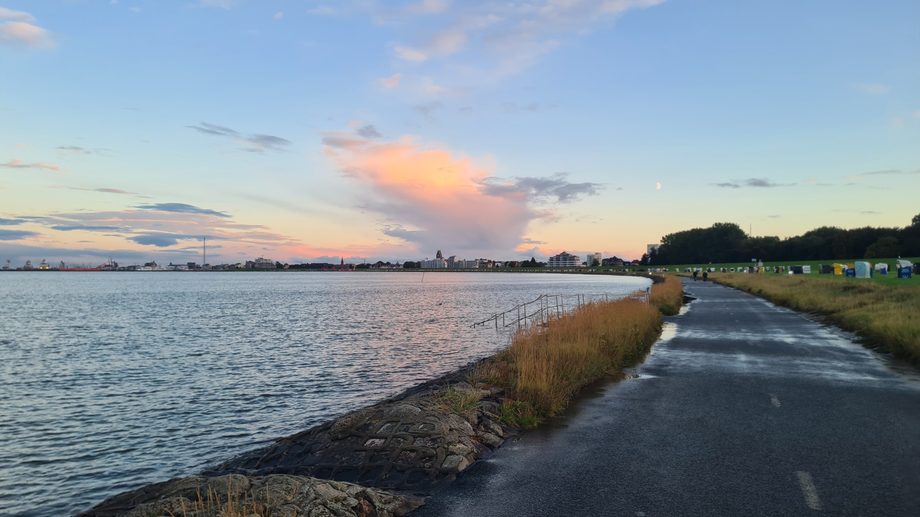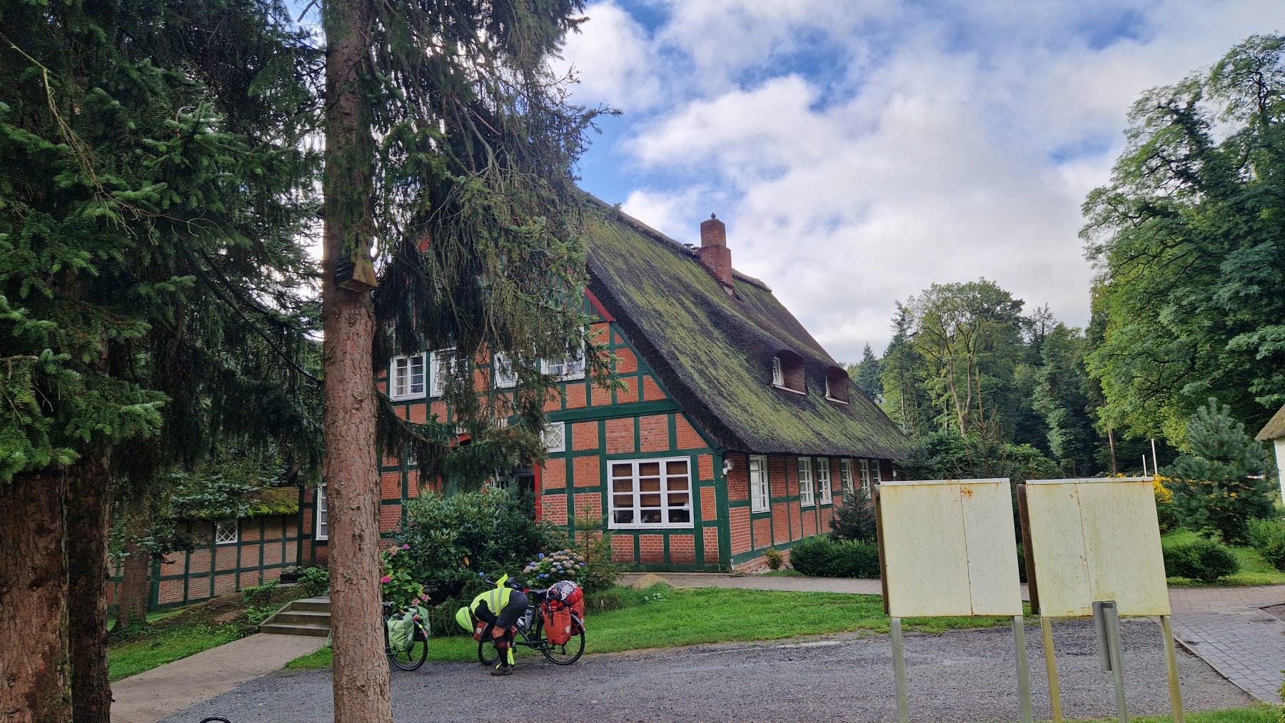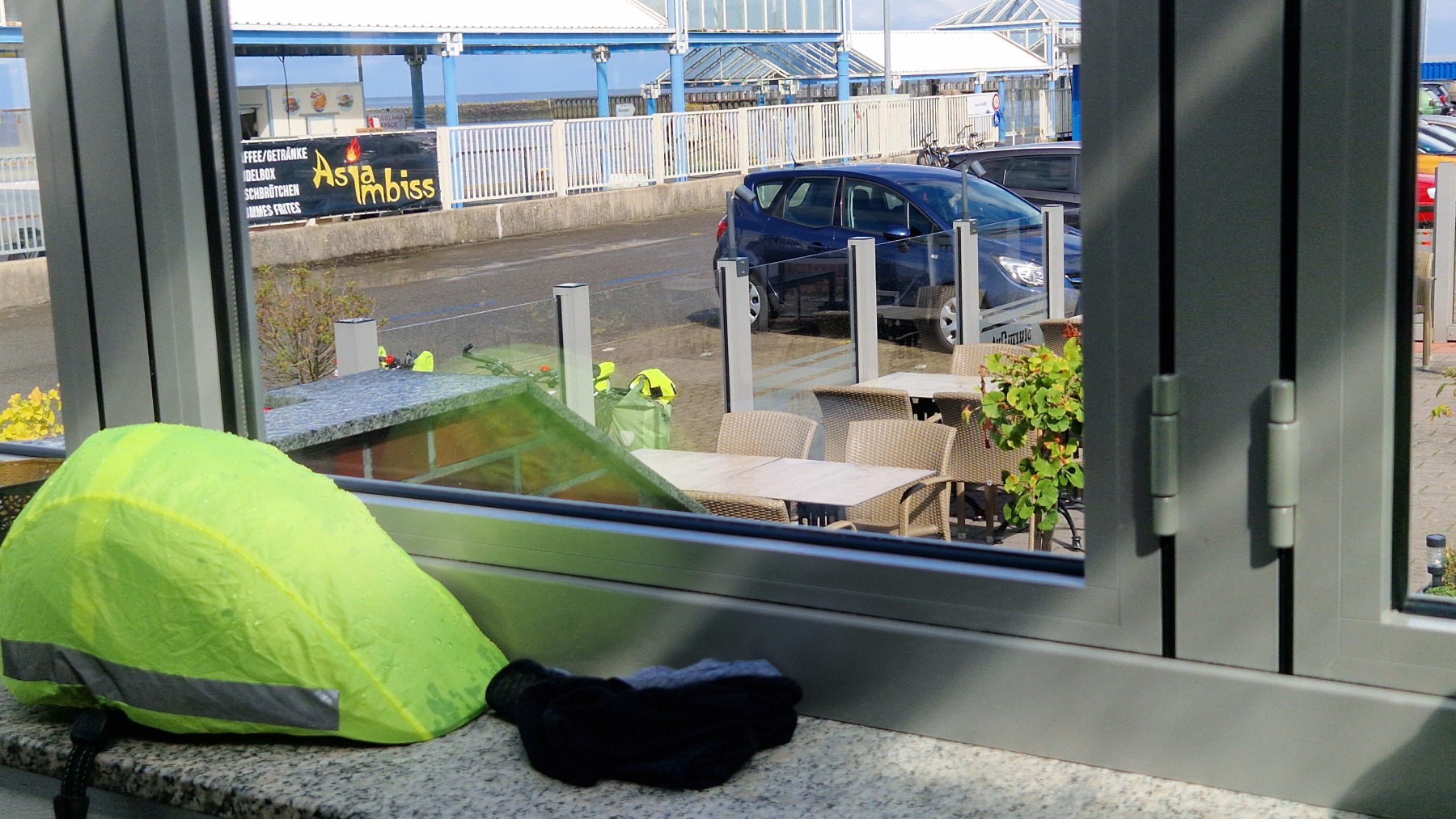 La météo ne s’était pas trop trompée et nous avons pédalé sous une alternance d’ondées et d’éclaircies. Nous avons déjeuné à Cuxhaven et nous sommes allé faire la sieste à la « gasthaus » où nous dormons avant d’aller voir la « Kugelbake« , balise qui marque la limite entre l’Elbe et la mer du Nord et de diner dans un restaurant grec.