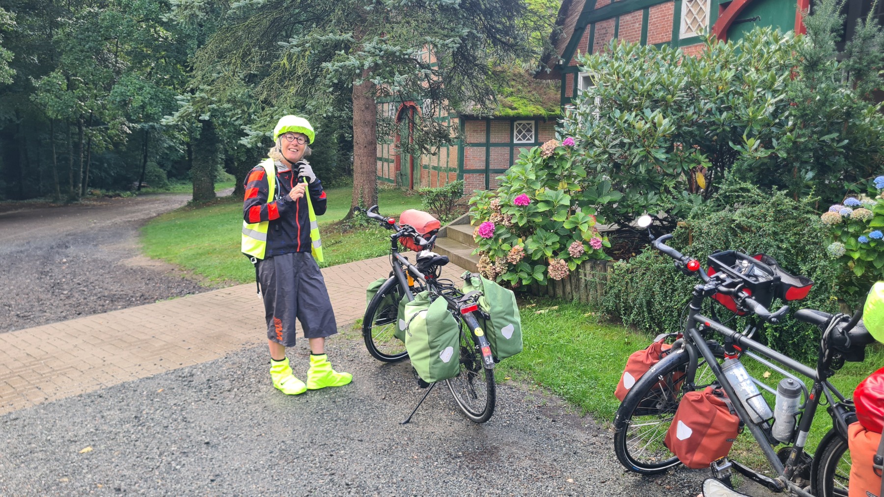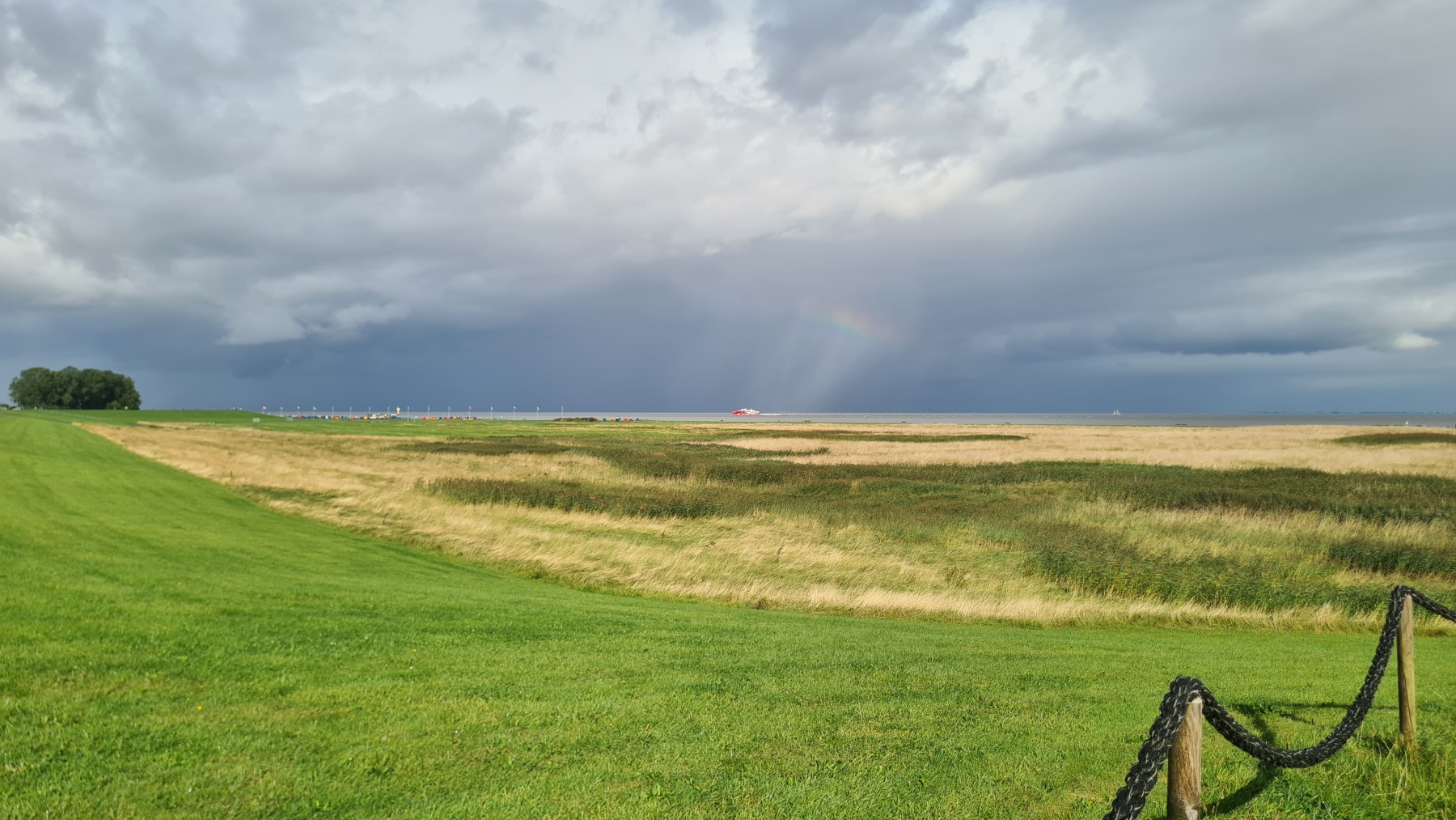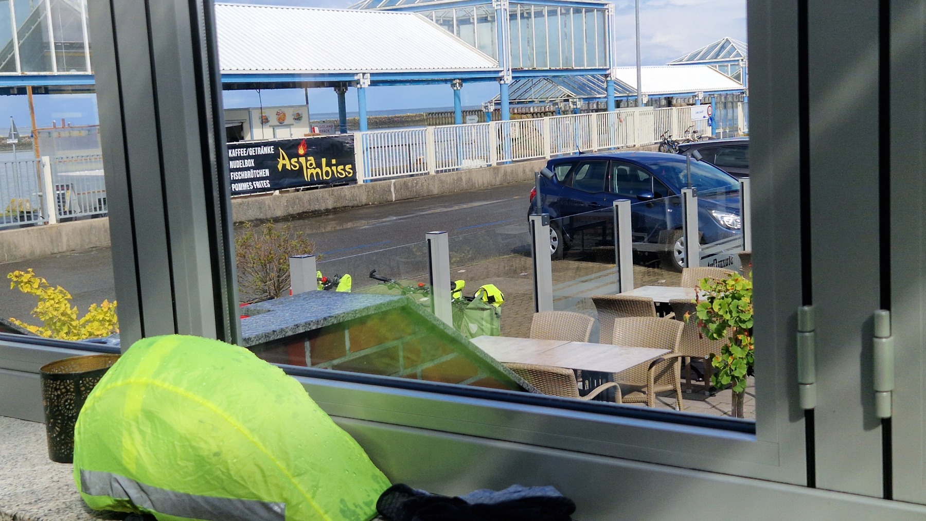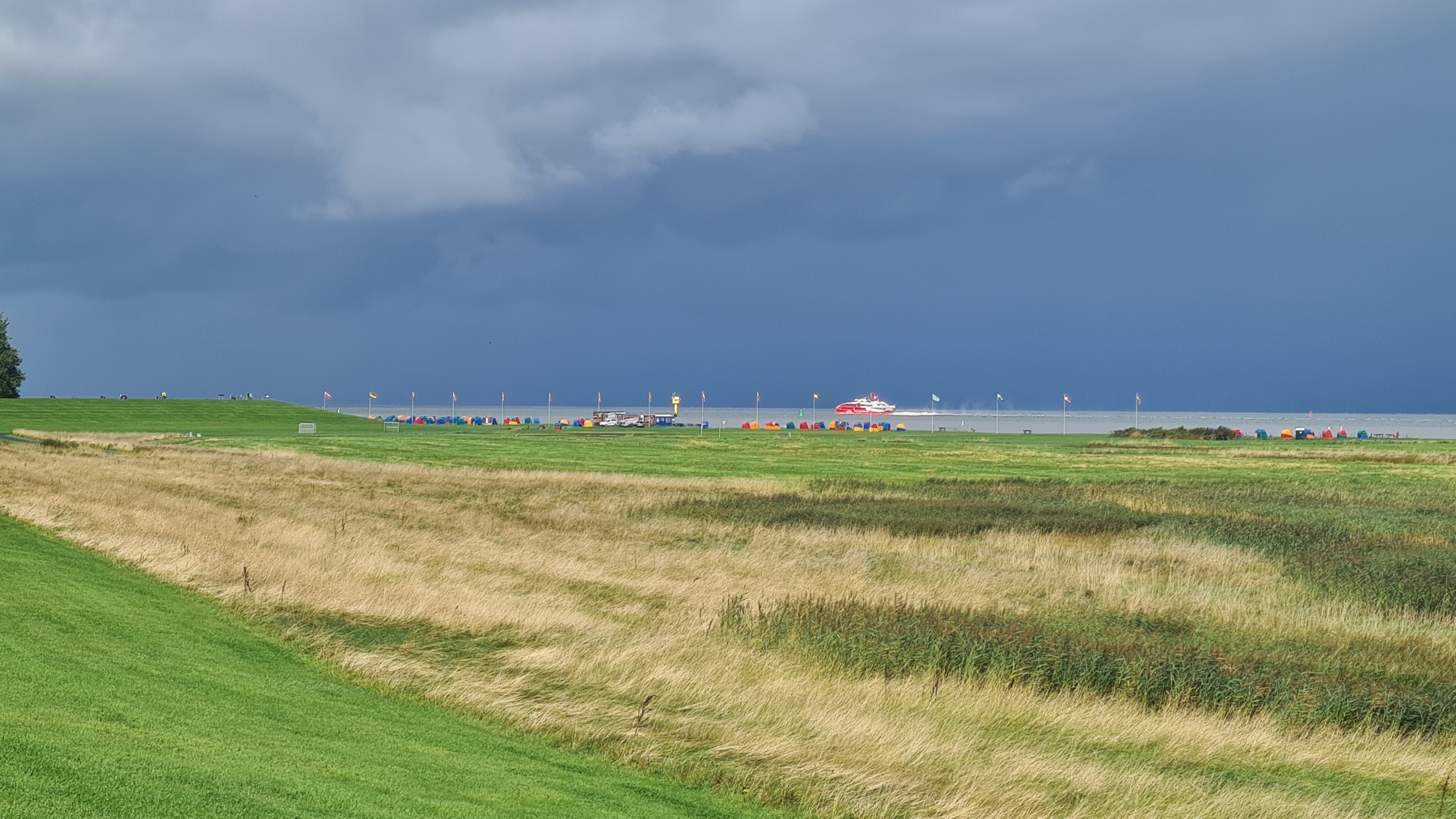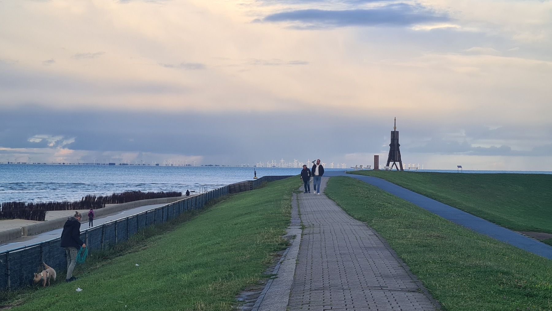 La météo ne s’était pas trop trompée et nous avons pédalé sous une alternance d’ondées et d’éclaircies. Nous avons déjeuné à Cuxhaven et nous sommes allé faire la sieste à la « gasthaus » où nous dormons avant d’aller voir la « Kugelbake« , balise qui marque la limite entre l’Elbe et la mer du Nord et de diner dans un restaurant grec.