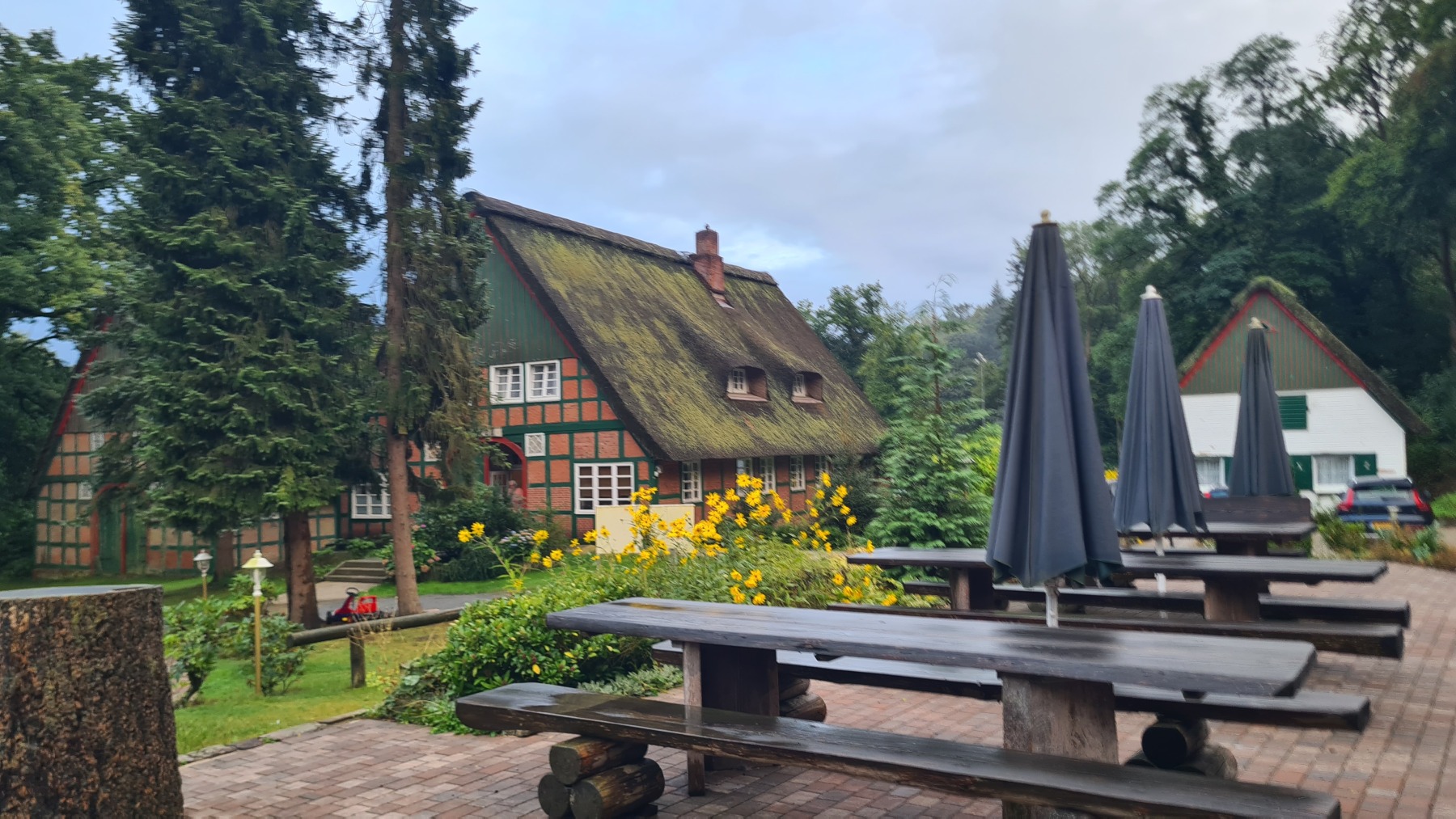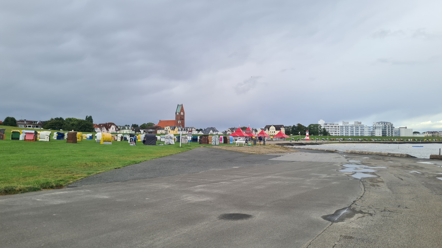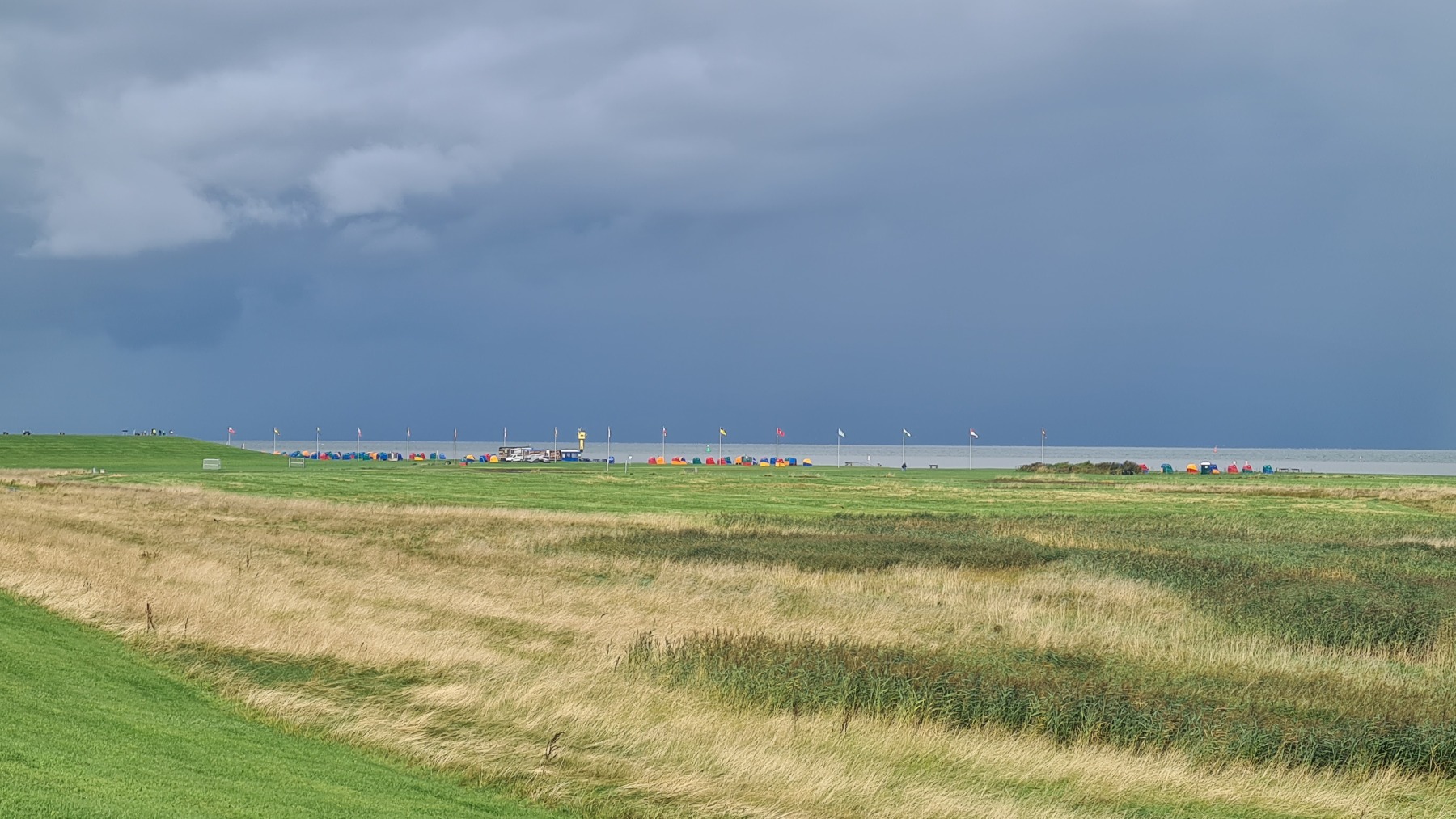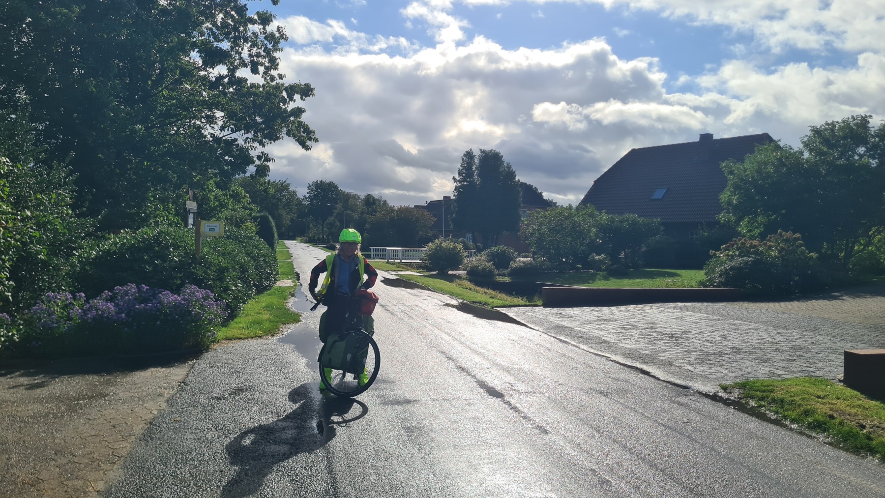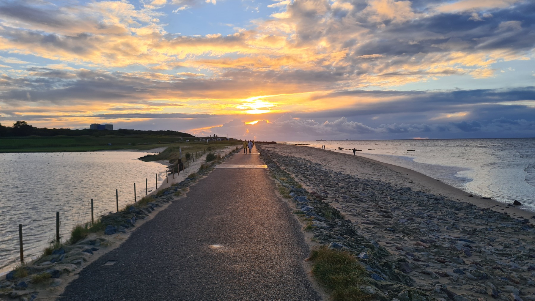 La météo ne s’était pas trop trompée et nous avons pédalé sous une alternance d’ondées et d’éclaircies. Nous avons déjeuné à Cuxhaven et nous sommes allé faire la sieste à la « gasthaus » où nous dormons avant d’aller voir la « Kugelbake« , balise qui marque la limite entre l’Elbe et la mer du Nord et de diner dans un restaurant grec.