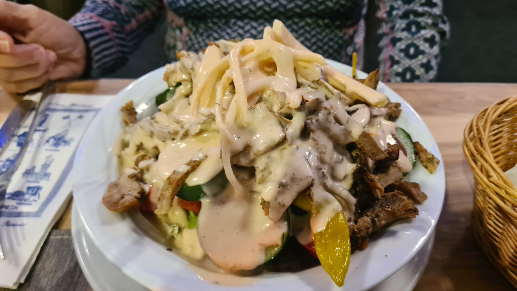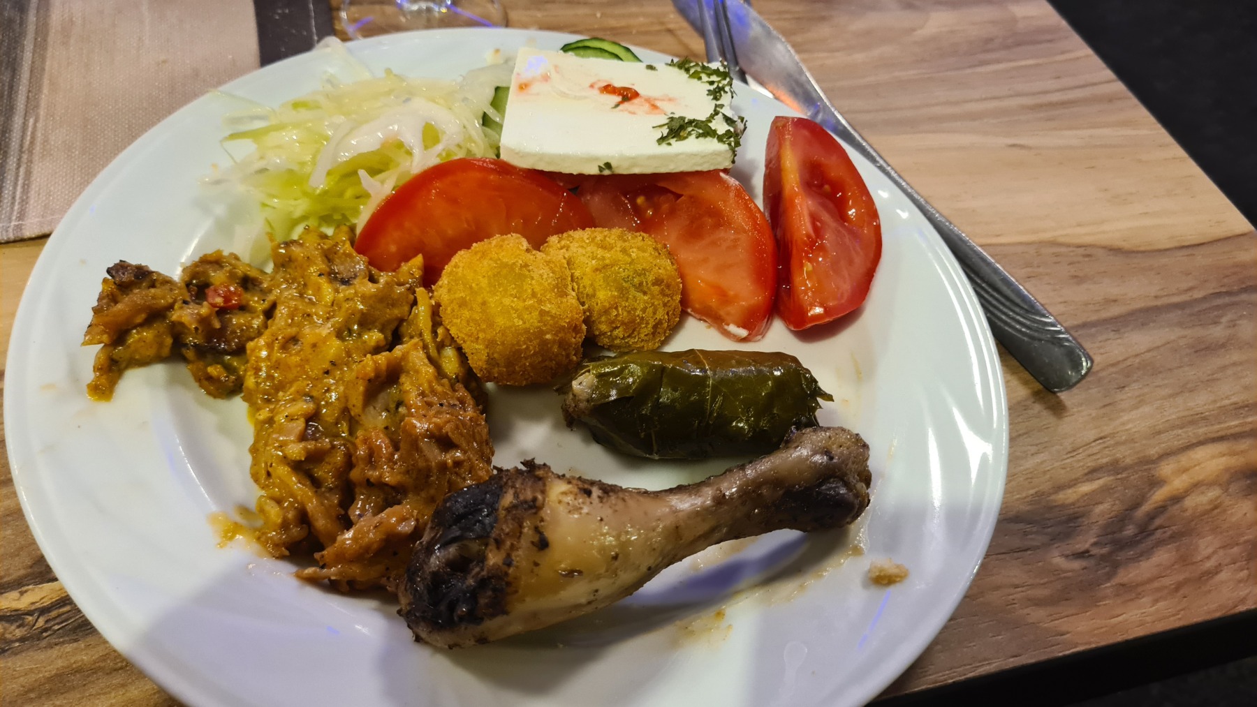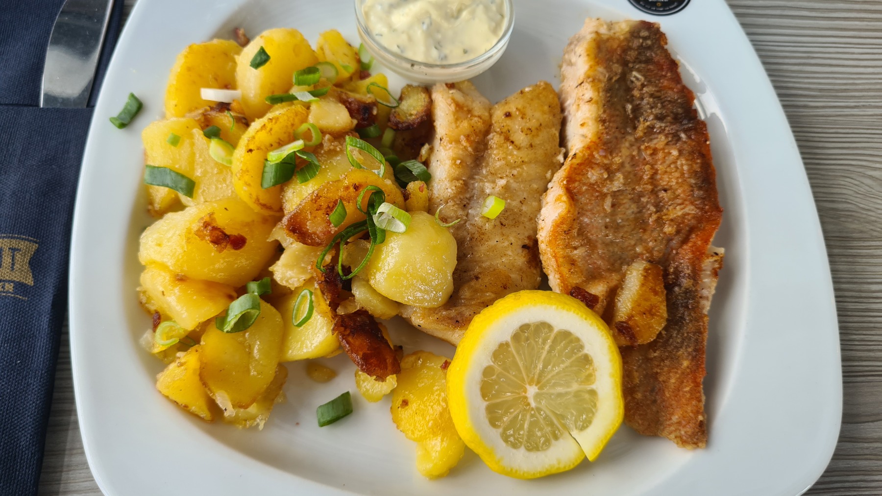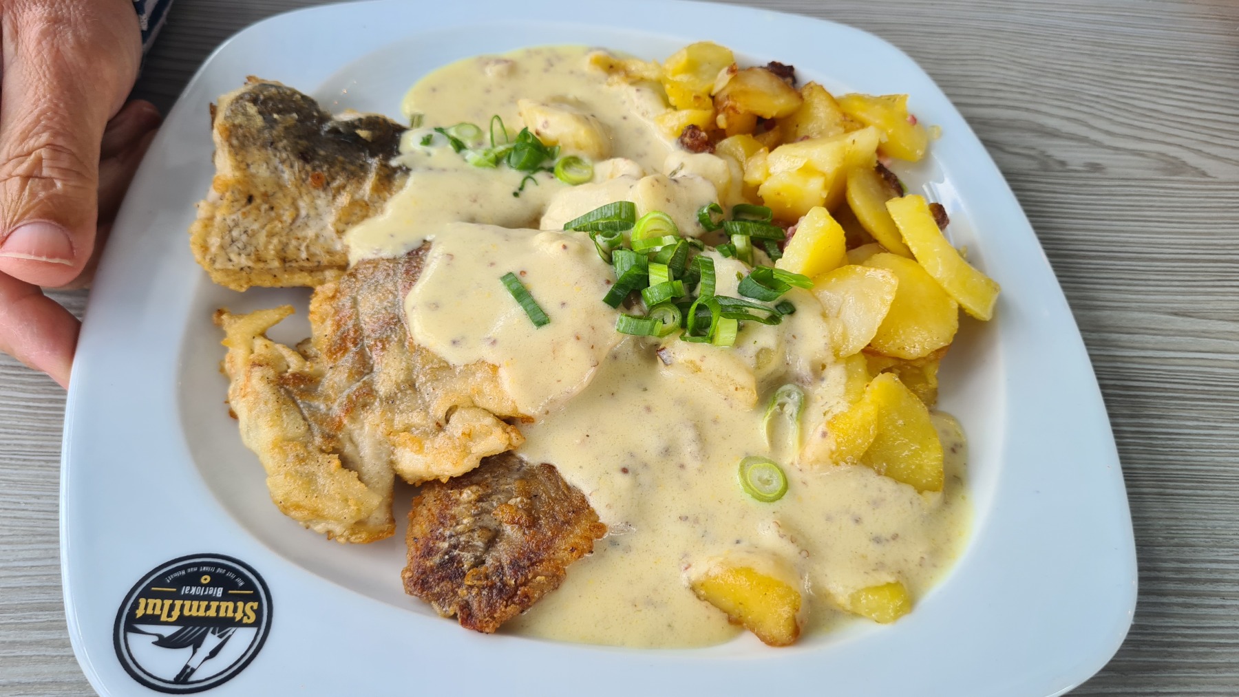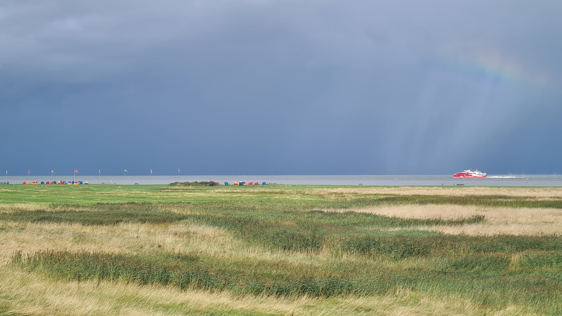 La météo ne s’était pas trop trompée et nous avons pédalé sous une alternance d’ondées et d’éclaircies. Nous avons déjeuné à Cuxhaven et nous sommes allé faire la sieste à la « gasthaus » où nous dormons avant d’aller voir la « Kugelbake« , balise qui marque la limite entre l’Elbe et la mer du Nord et de diner dans un restaurant grec.