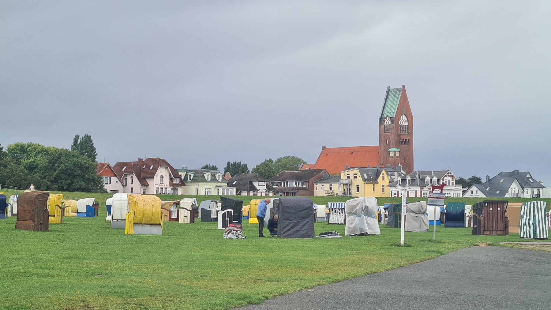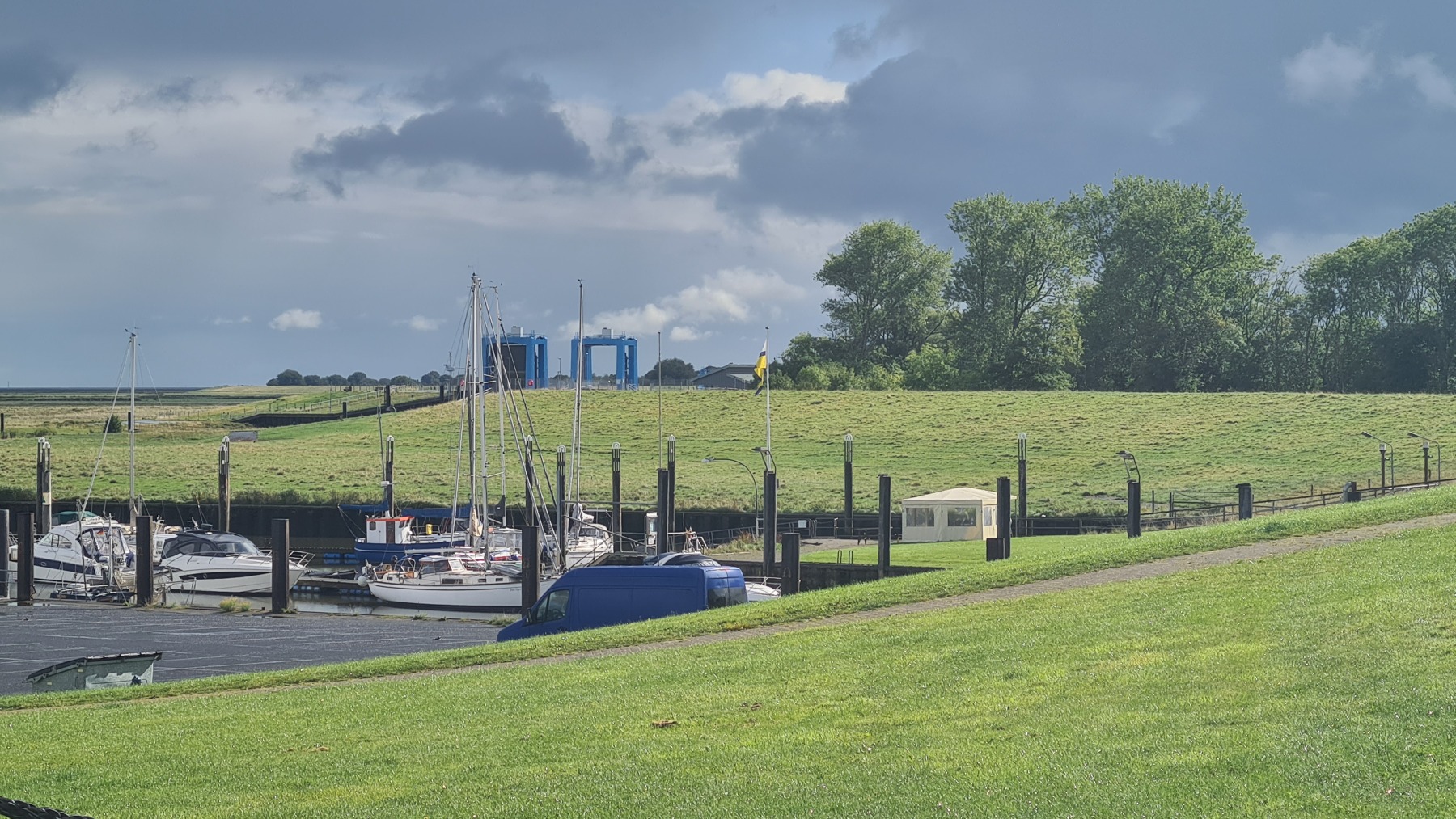 La météo prévoyant des risques de pluie toute la journée nous avons prévu une étape courte et ce soir nous dormons à Cuxhaven, à l’embouchure de l’Elbe.