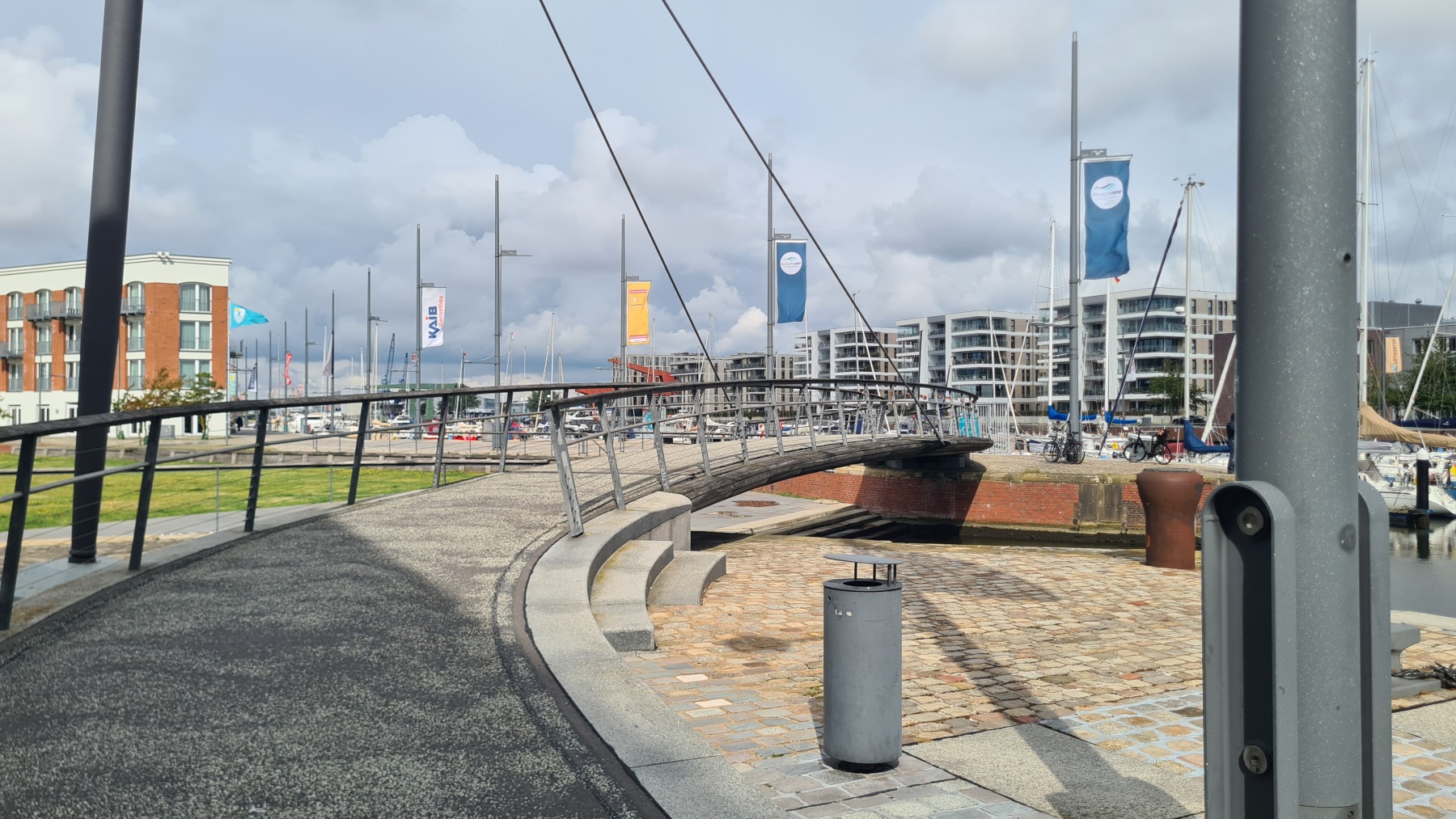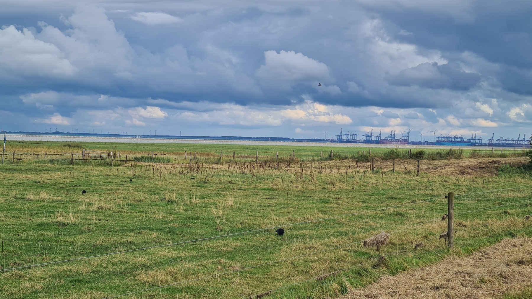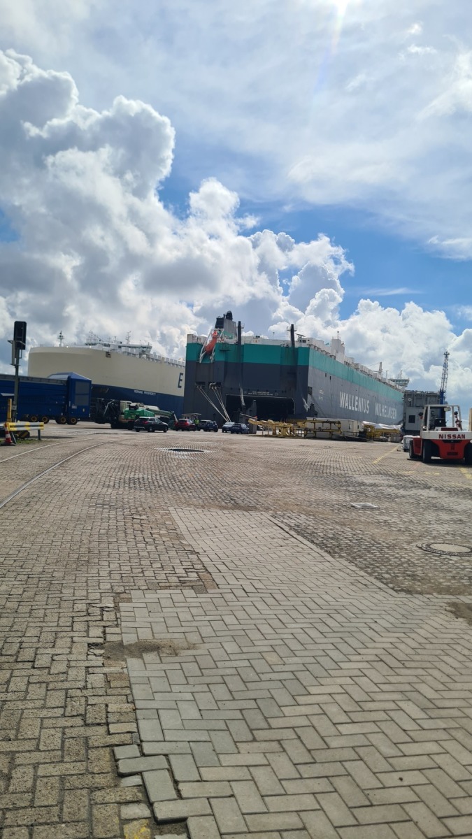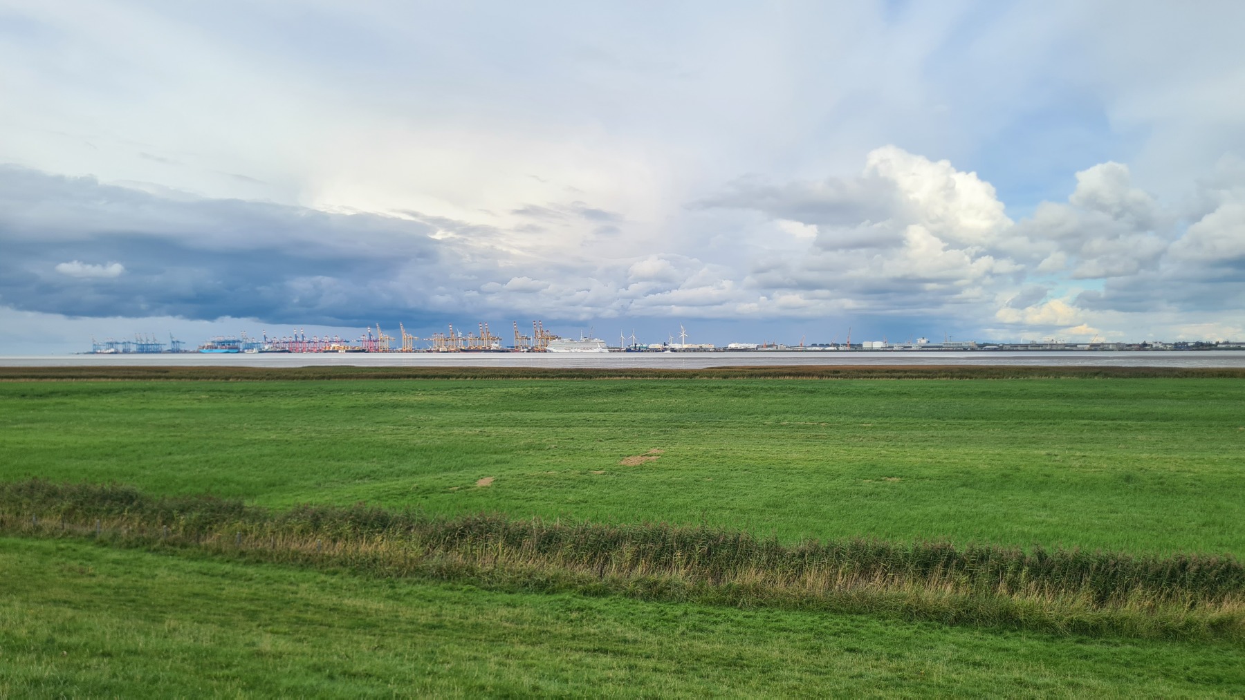 Cette étape bien aérée (rafales de face à 35 km/h) nous a fait traverser le port de Bremerhaven. Eurovelo 12 chemine au milieu d’un terminal conteneur démesuré avant de passer devant les quais de chargement et déchargement de voitures où les mercedes croisent les voitures coréennes et chinoises.