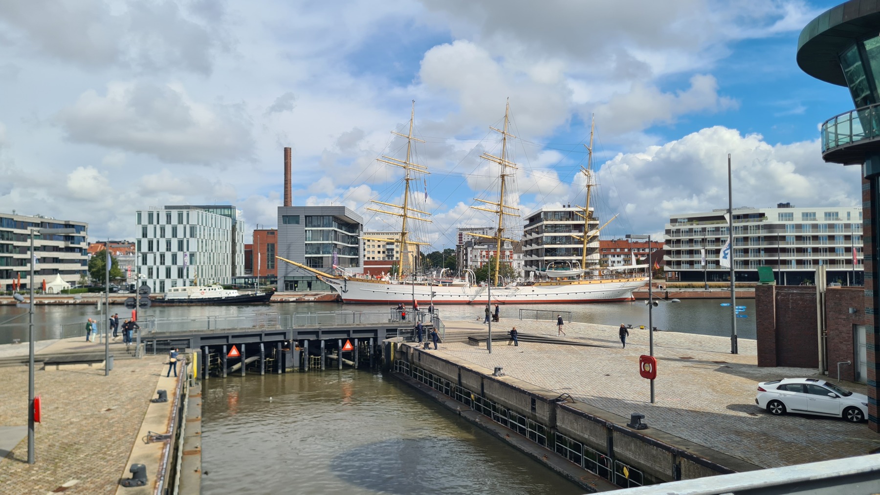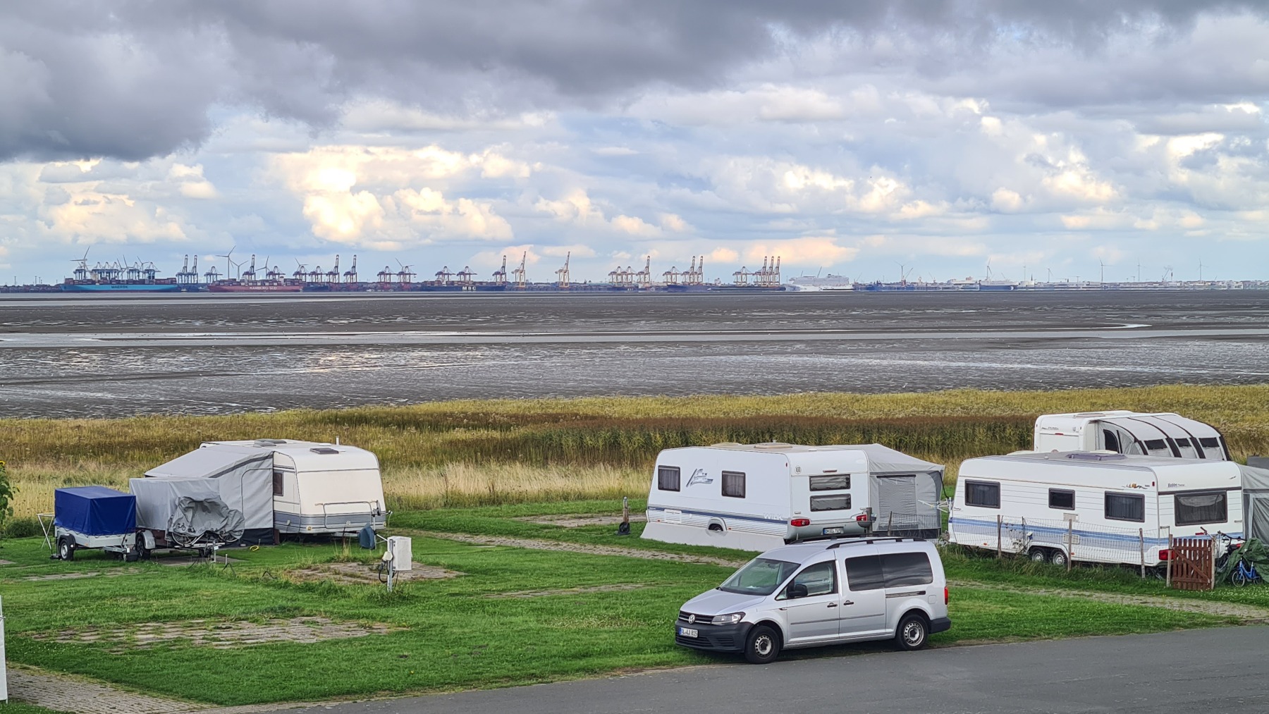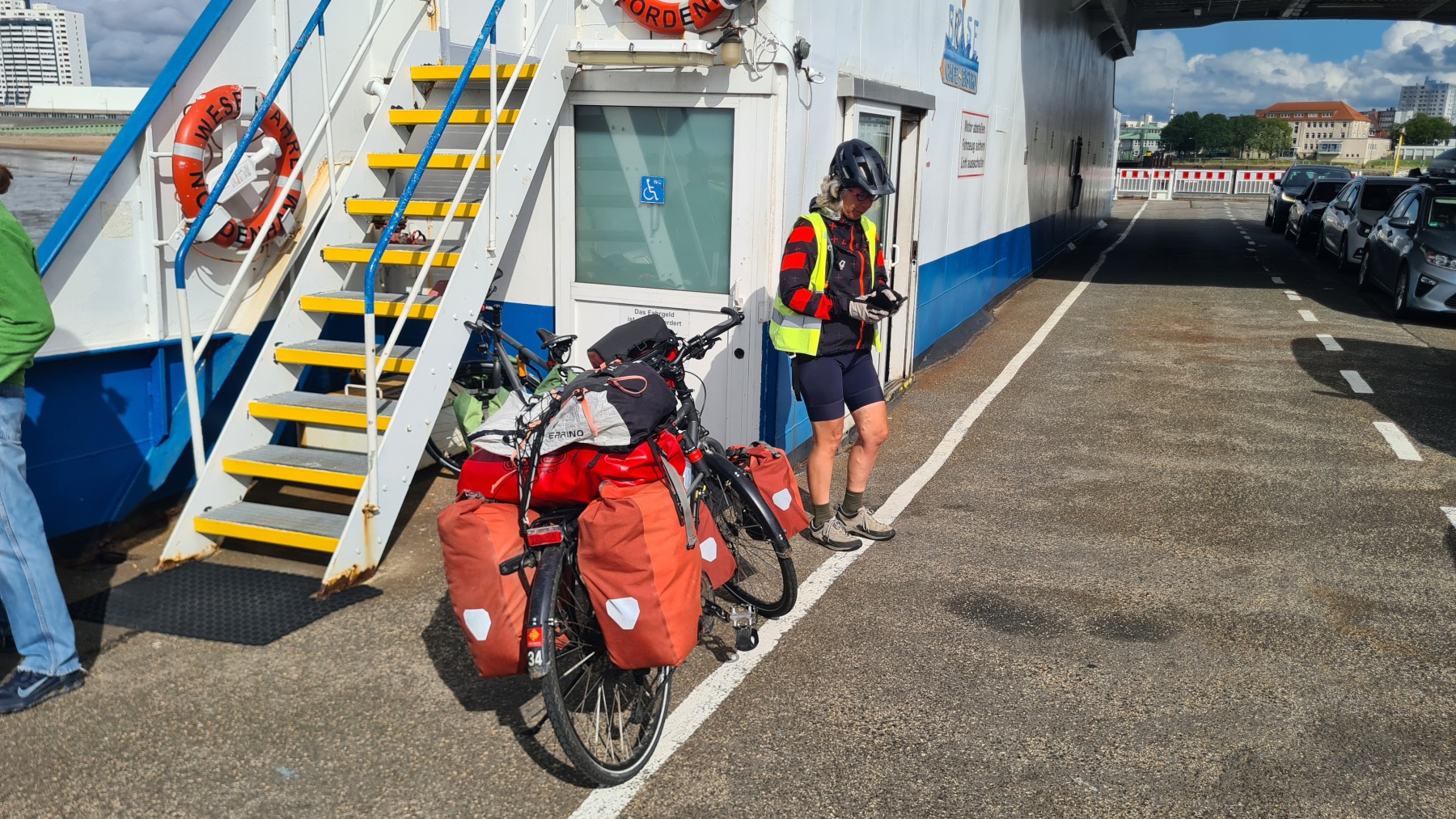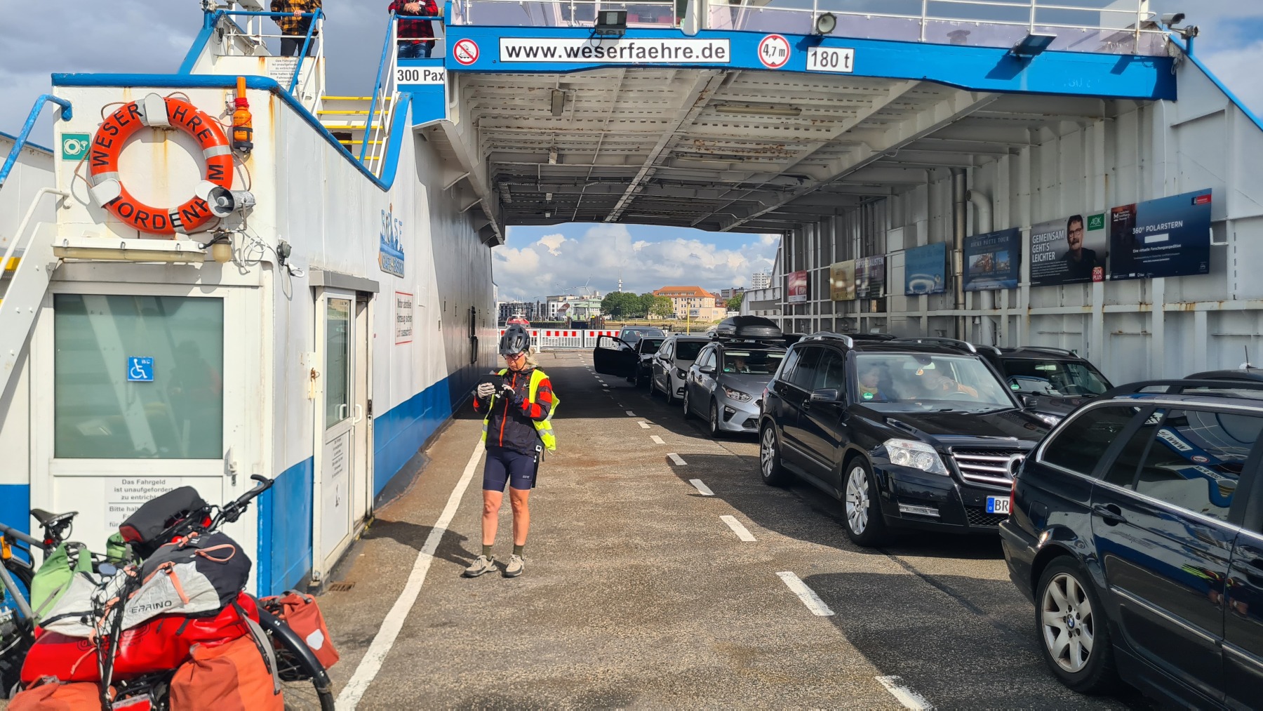 Nous avons déjeuné à Bremerhaven avant de prendre le ferry pour traverser la Weser et de continuer à longer la côte jusqu’à Tossens où nous passons la nuit.