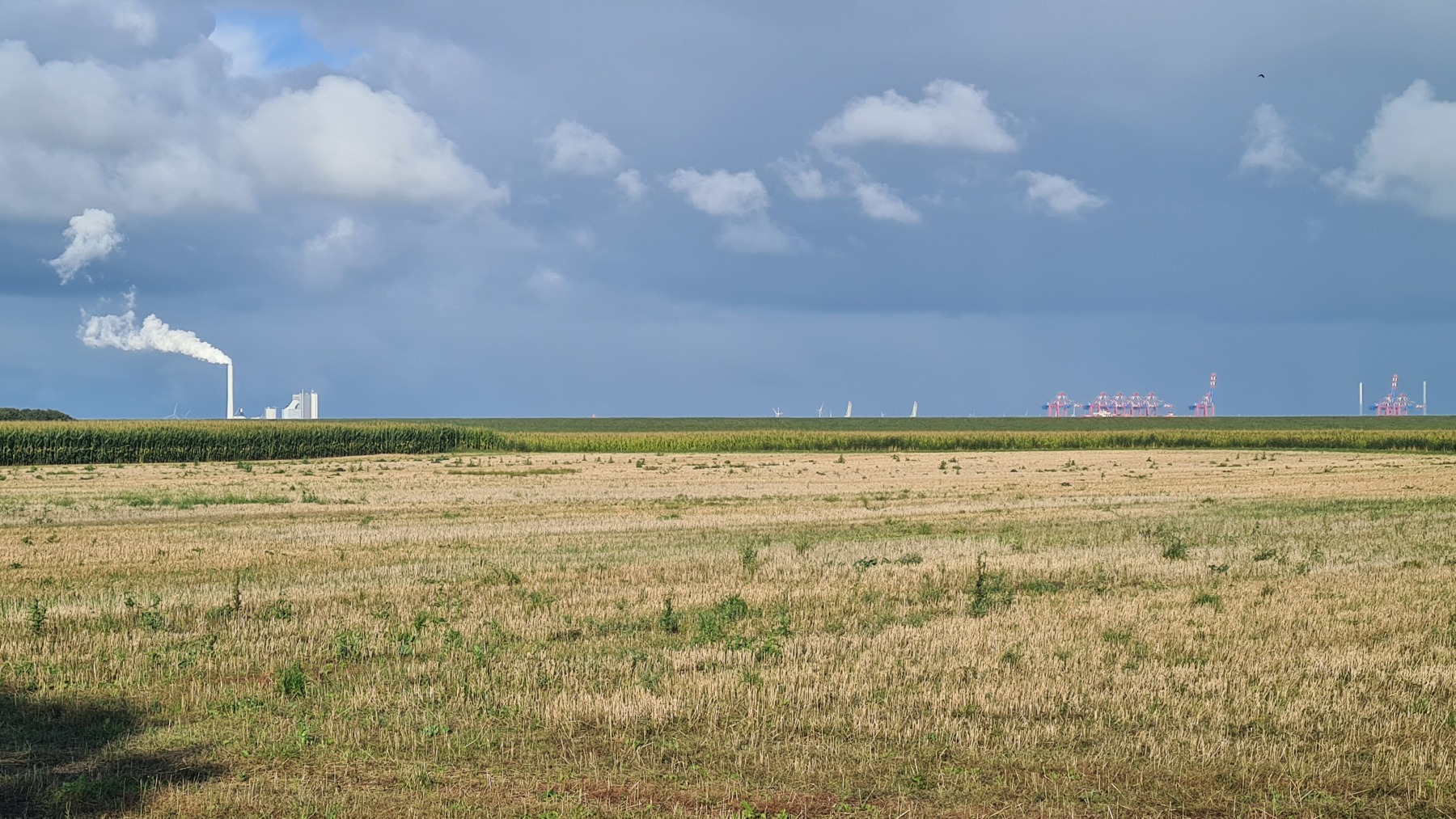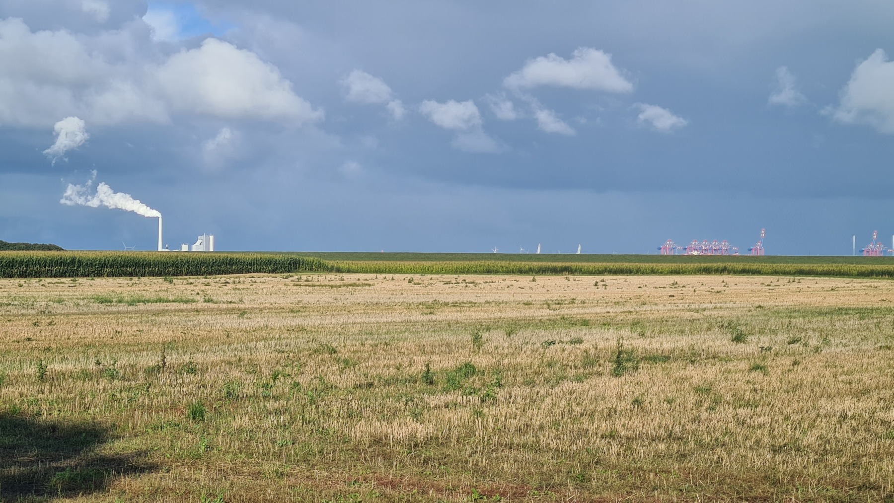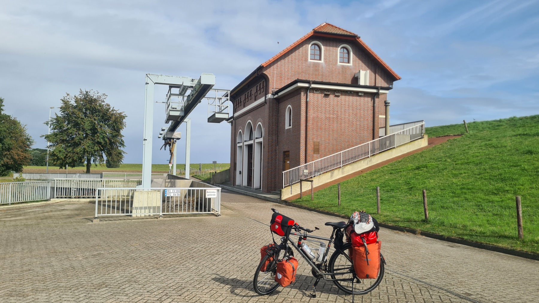 Eurovelo 12 passe par le port de Wilhelmshaven qui était en face de nous hier soir et ce matin. La vue de son terminal conteneurs et de ses usines ne nous a pas vraiment donné envie et en fin d’étape nous avons quitté Eurovelo 12 pour couper et dormir à Wittmund.