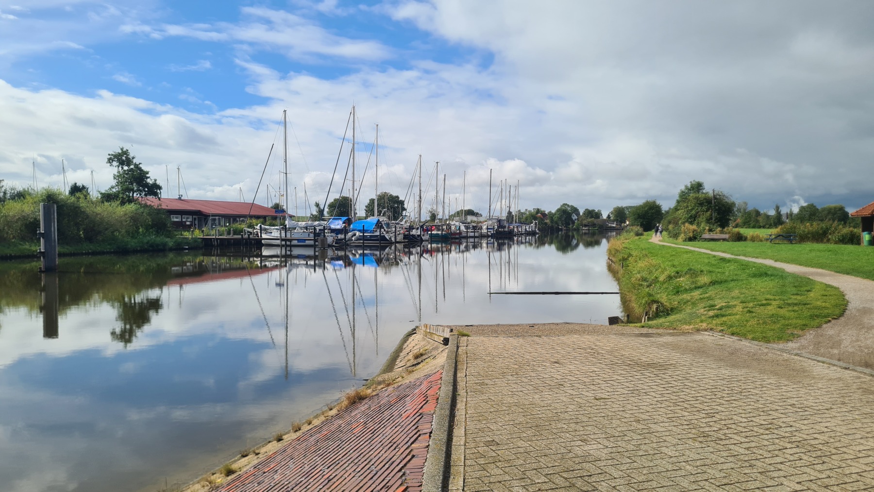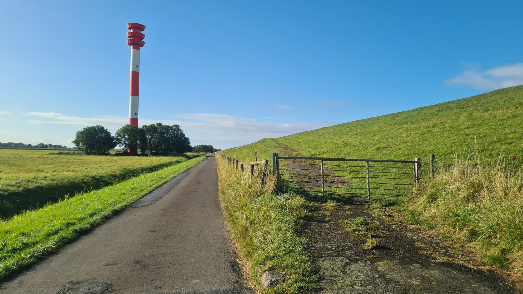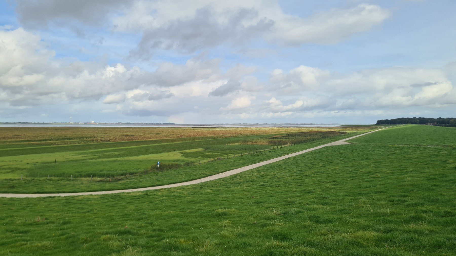 Eurovelo 12 passe par le port de Wilhelmshaven qui était en face de nous hier soir et ce matin. La vue de son terminal conteneurs et de ses usines ne nous a pas vraiment donné envie et en fin d’étape nous avons quitté Eurovelo 12 pour couper et dormir à Wittmund.