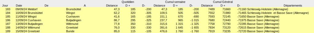 Sept jours de vélo pour cette semaine qui nous amène à quelques kilomètres de la frontière avec les Pays-Bas.