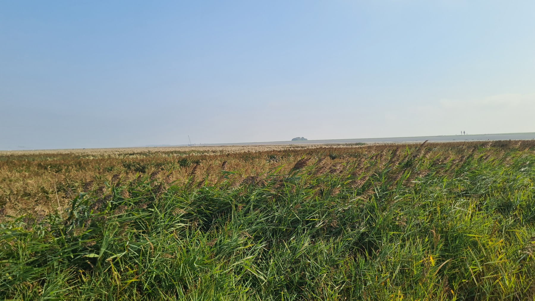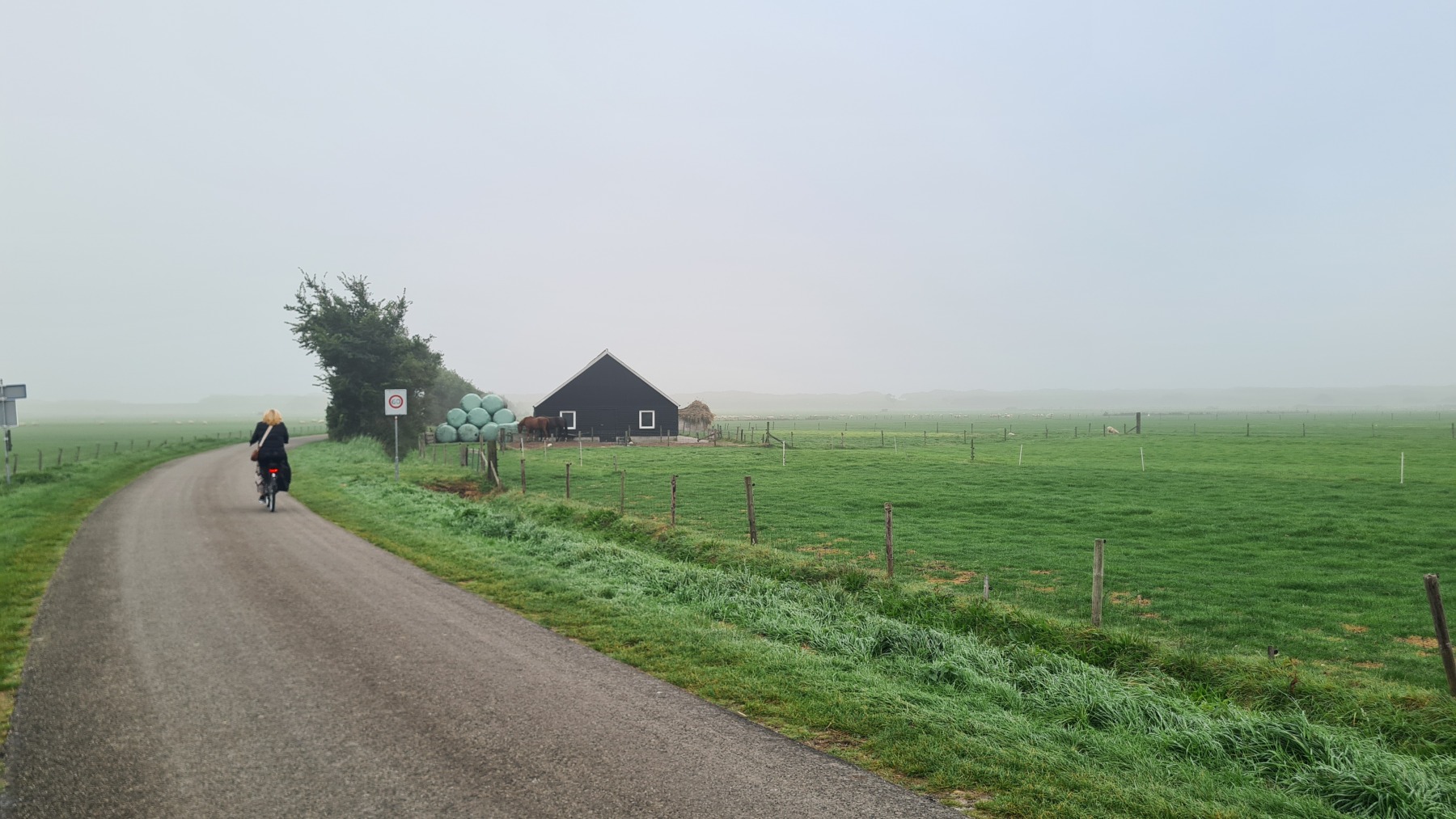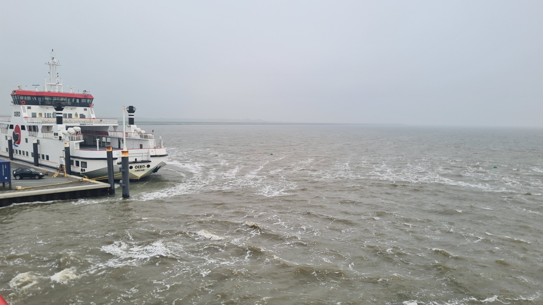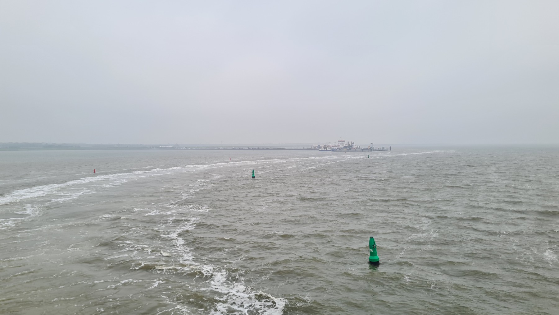 Ce matin nous avons fait le trajet inverse pour retourner prendre le ferry au port de Nes. Le temps était brumeux et la marrée haute et l’ambiance était très différente de celle de ces deux derniers jours. Le seul point commun étaient les oiseaux toujours présents en nombre. Nous avions le vent d’Est en face et les 13 km ont été bien longs !