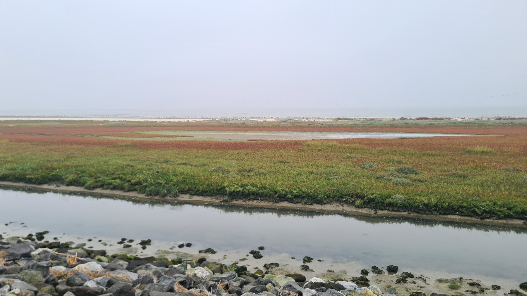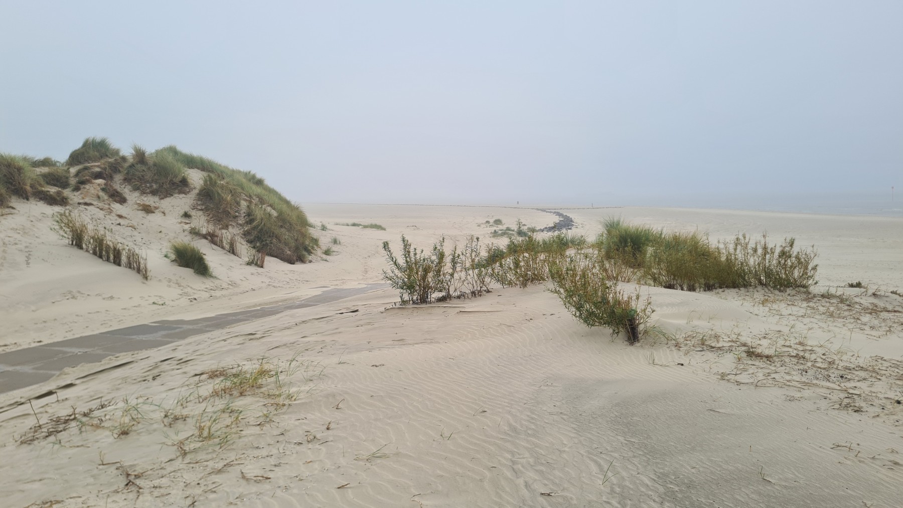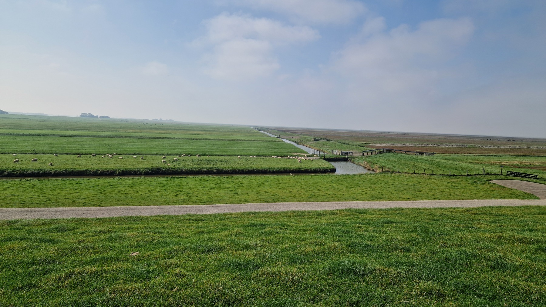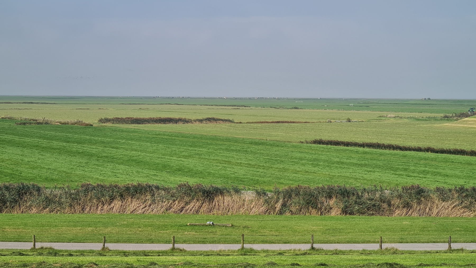 Ce matin nous avons fait le trajet inverse pour retourner prendre le ferry au port de Nes. Le temps était brumeux et la marrée haute et l’ambiance était très différente de celle de ces deux derniers jours. Le seul point commun étaient les oiseaux toujours présents en nombre. Nous avions le vent d’Est en face et les 13 km ont été bien longs !