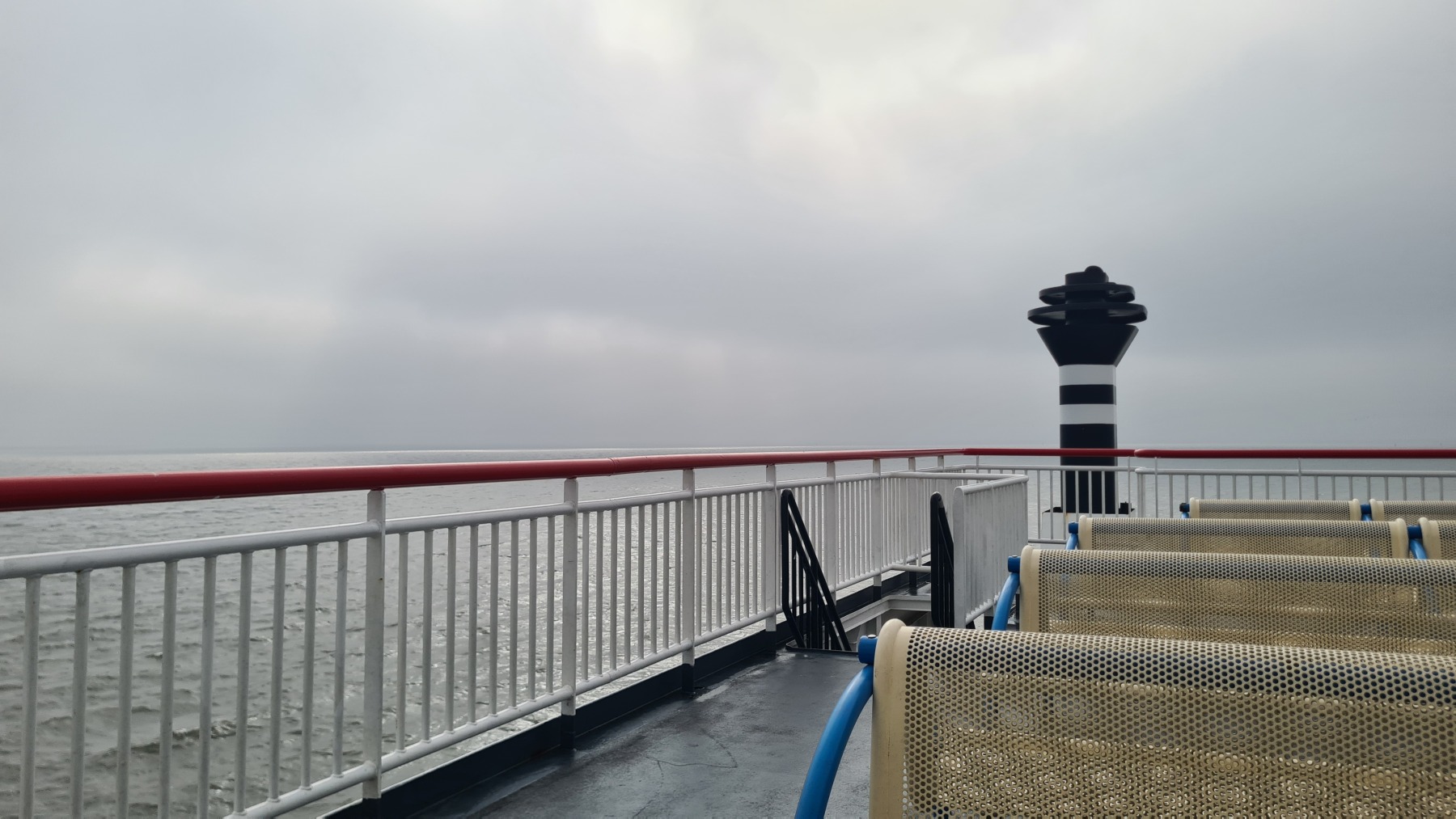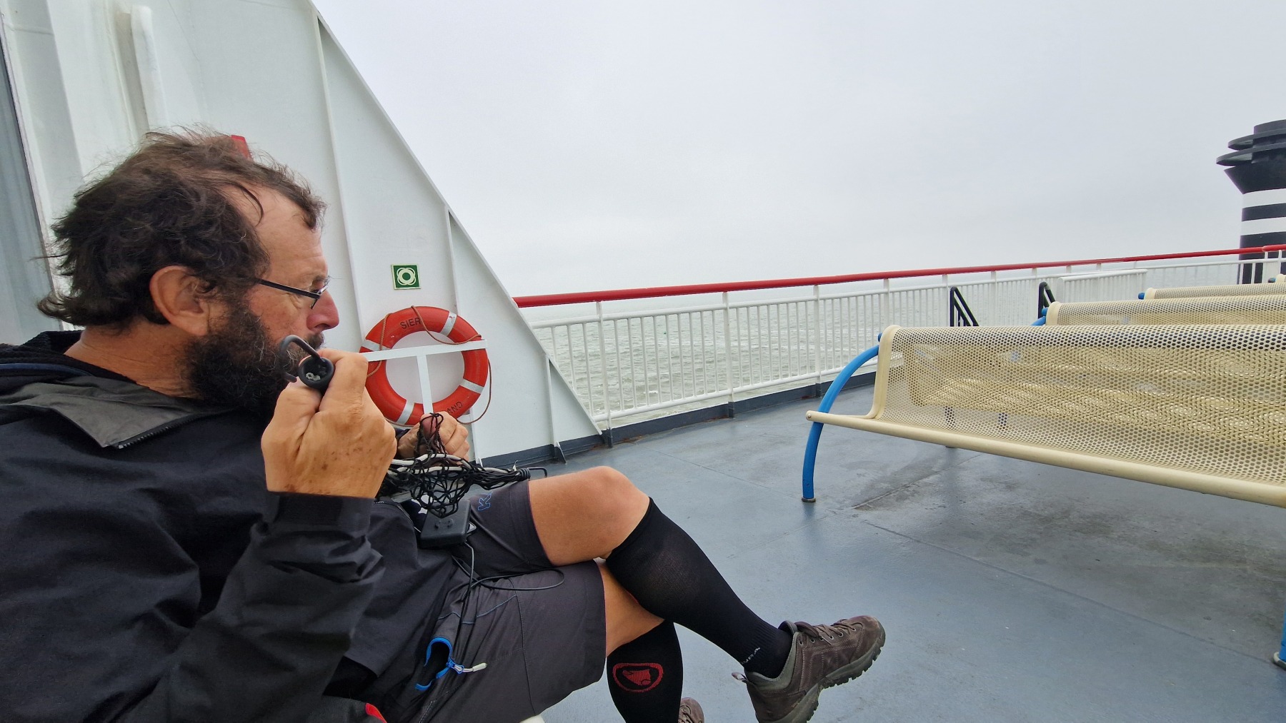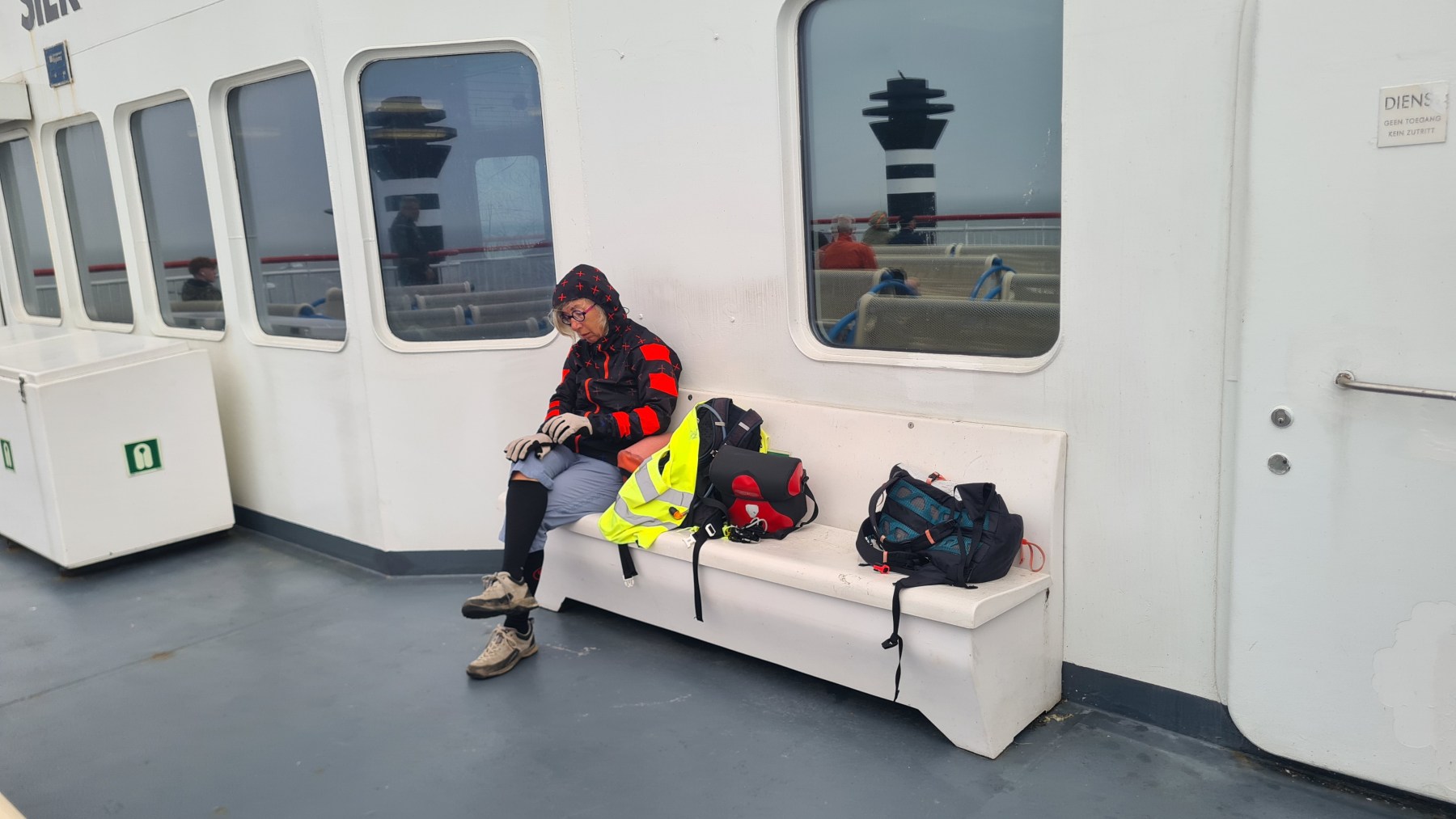 Le ferry nous a ensuite fait quitter l’ile d’Ameland pour nous amener à Holwerd. Y ayant pris un chocolat chaud à l’aller nous y avions nos habitudes et nous y avons déjeuné. Mon sandow filet était tout enmelé et j’ai profité du temps sur le ferry pour le démêler.
