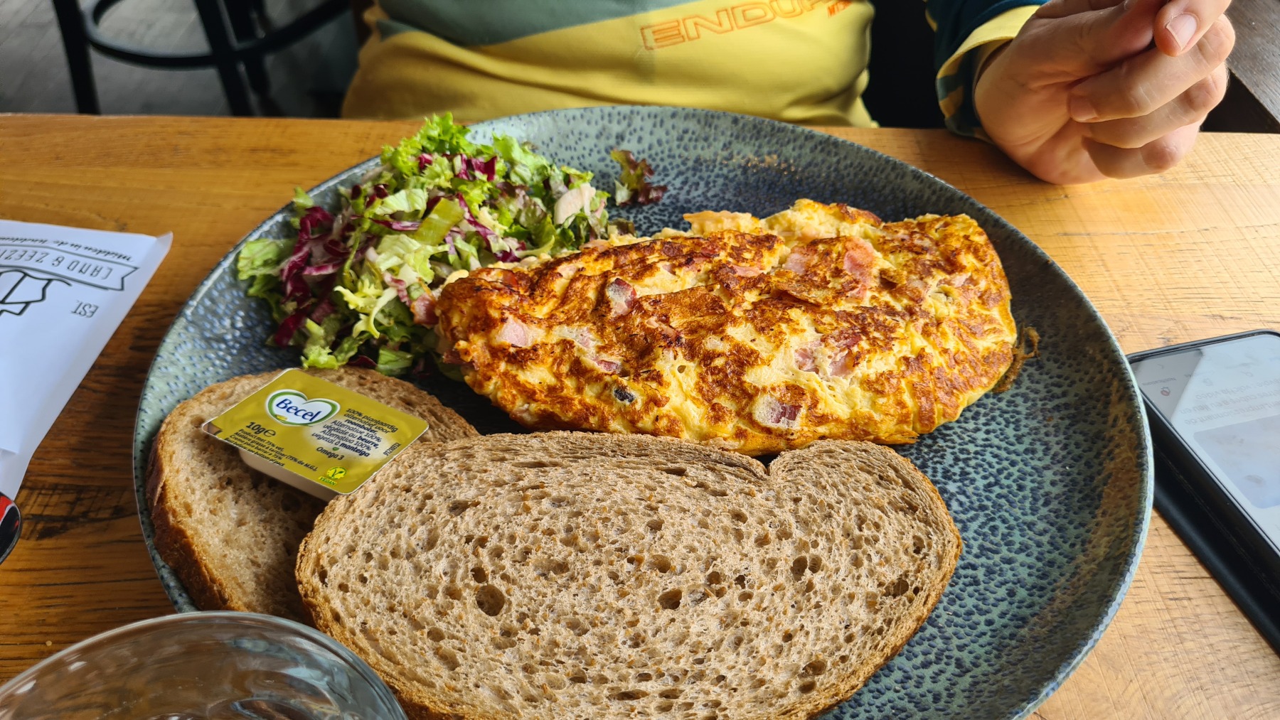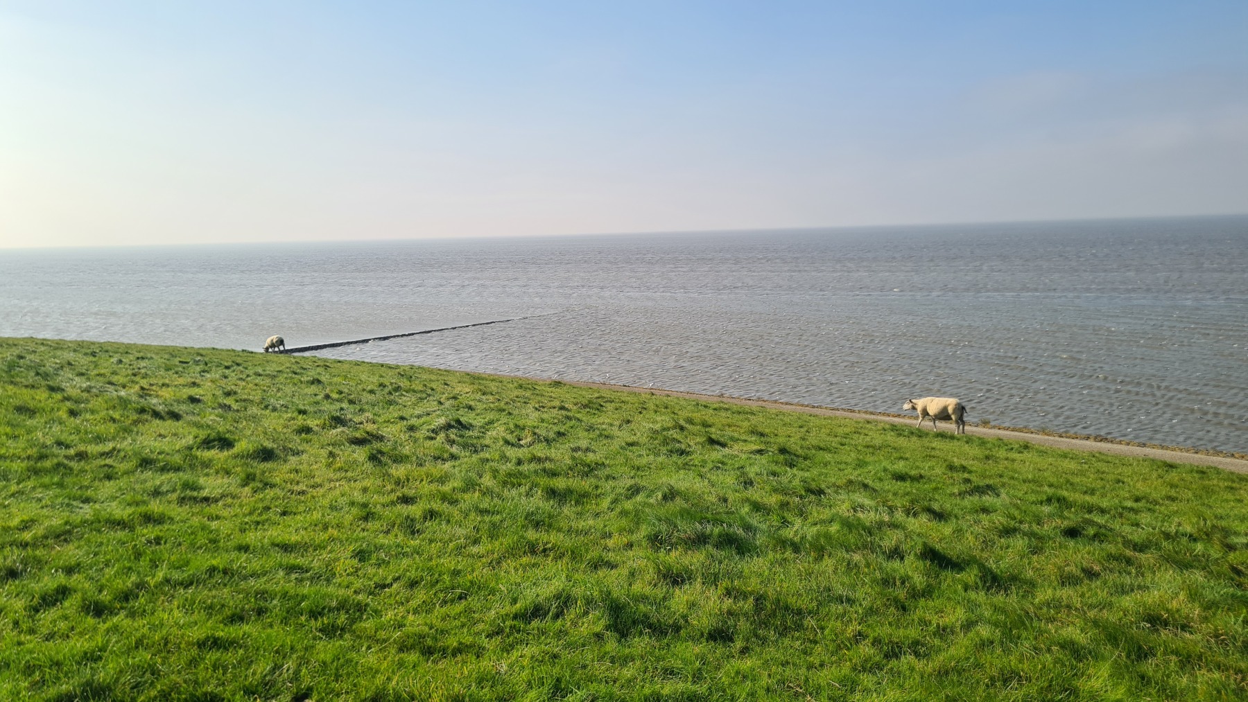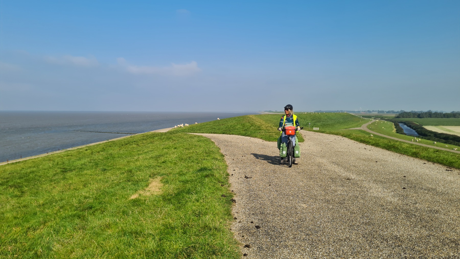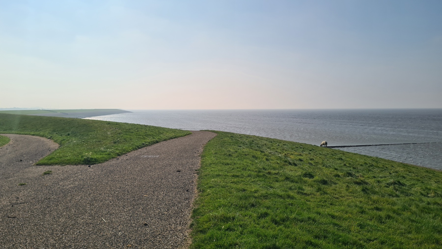 Le ferry nous a ensuite fait quitter l’ile d’Ameland pour nous amener à Holwerd. Y ayant pris un chocolat chaud à l’aller nous y avions nos habitudes et nous y avons déjeuné. Mon sandow filet était tout enmelé et j’ai profité du temps sur le ferry pour le démêler.